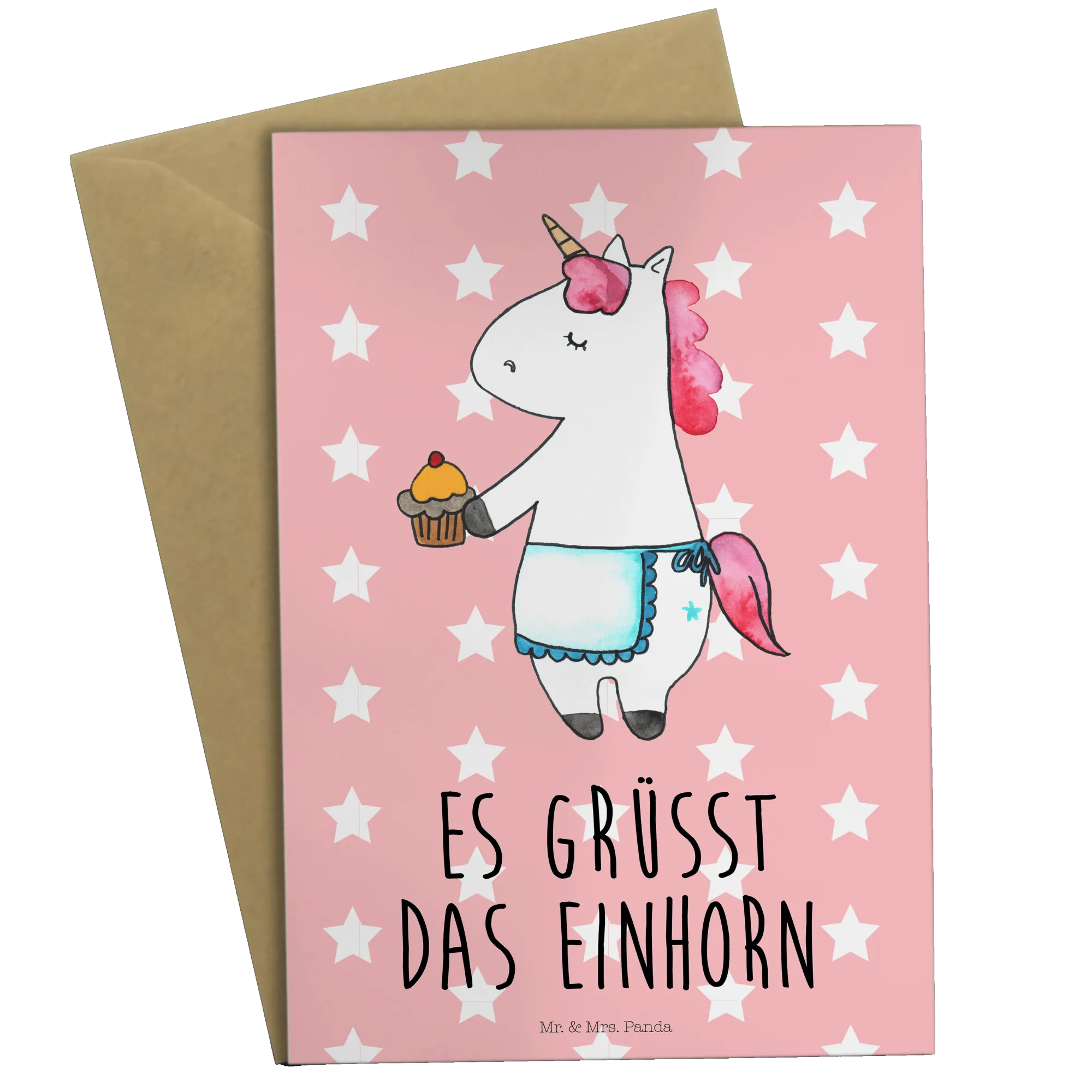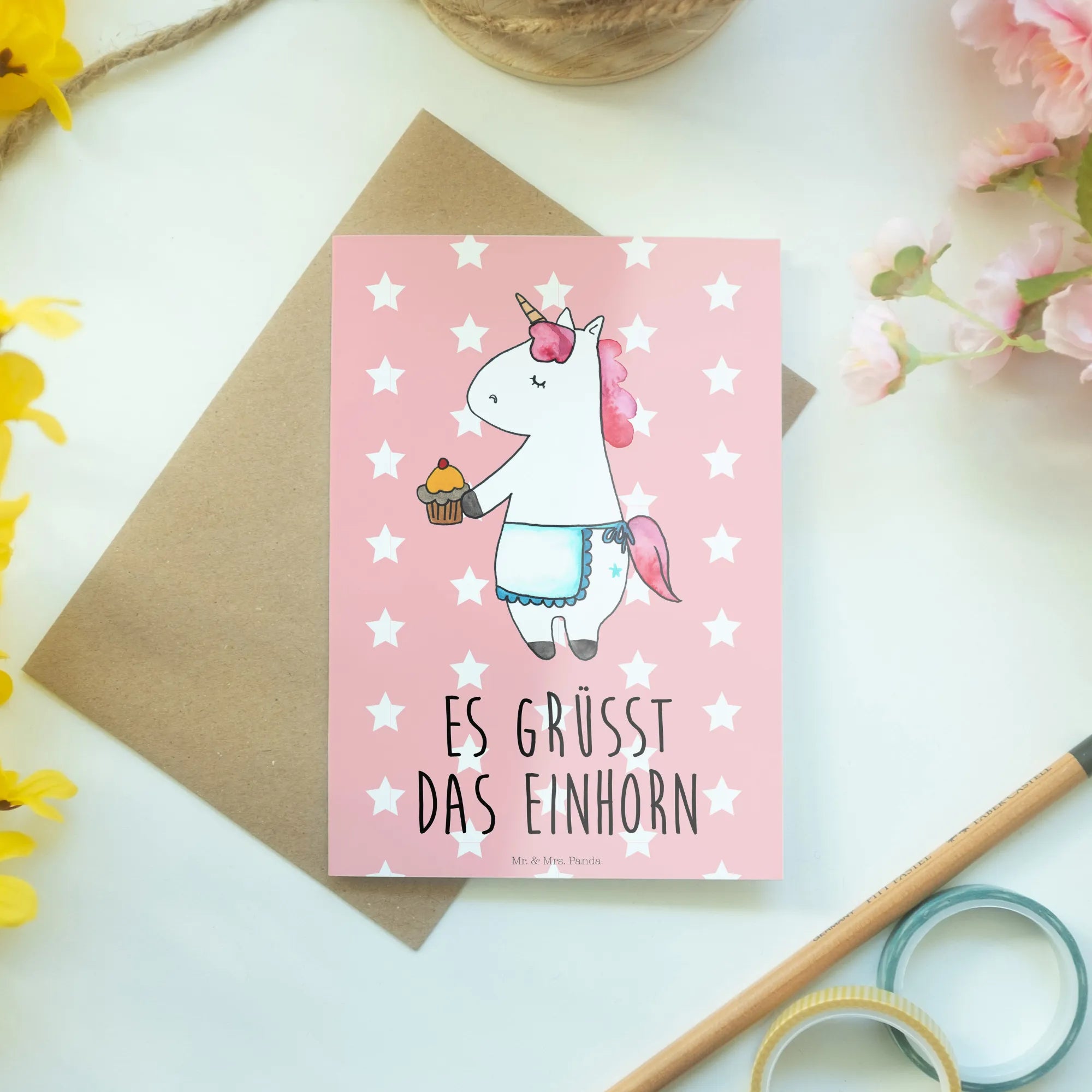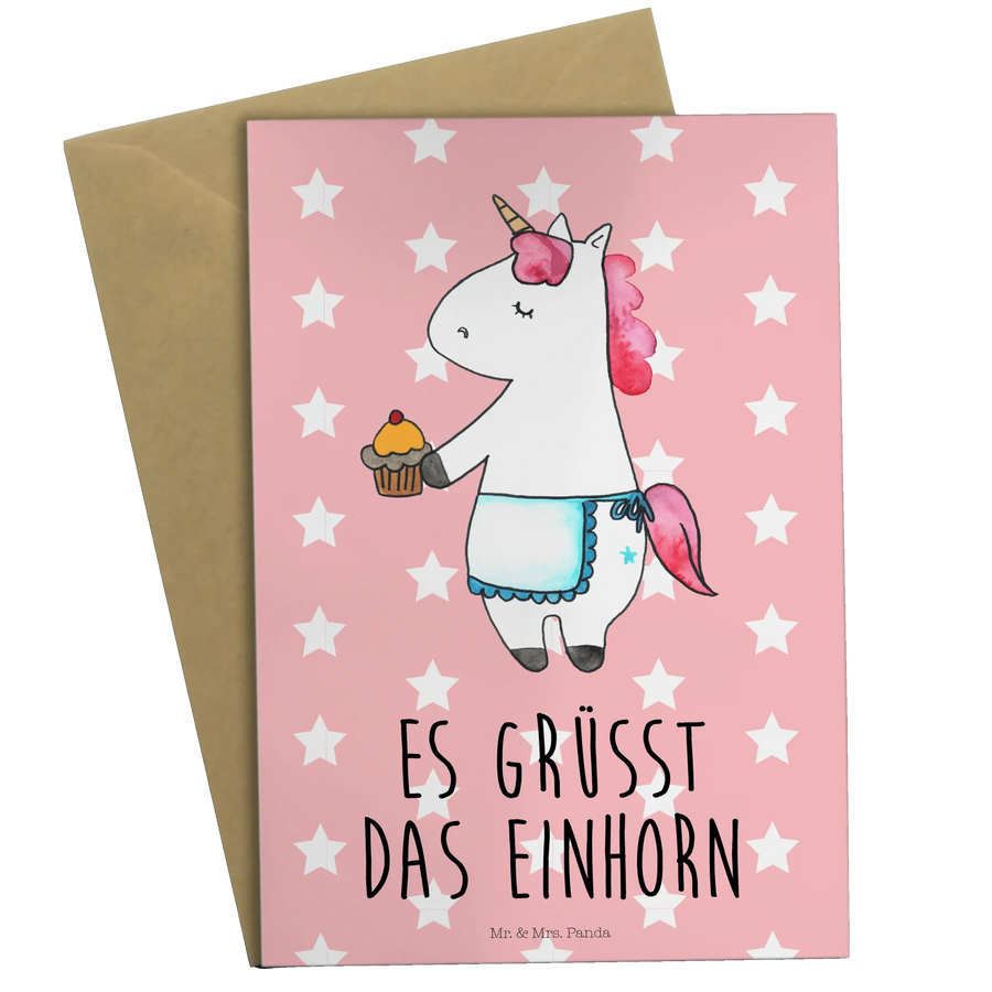 Die zauberhafte Grußkarte "Einhorn Muffin" aus der Einhorn-Kollektion von Mr. & Mrs. Panda ist das perfekte Geschenk für Einhorn-Liebhaber, kleine Kuchenbäcker und all diejenigen, die besondere Grüße versenden möchten. Diese wunderschöne und einzigartige Grußkarte ist nicht nur mit einem niedlichen Einhorn bedruckt, das stolz mit einem selbstgebackenen Muffin posiert, sondern trägt auch den liebevollen Slogan "Es grüsst das Einhorn".