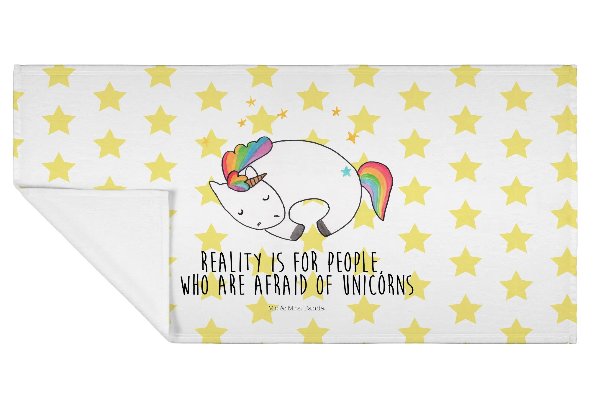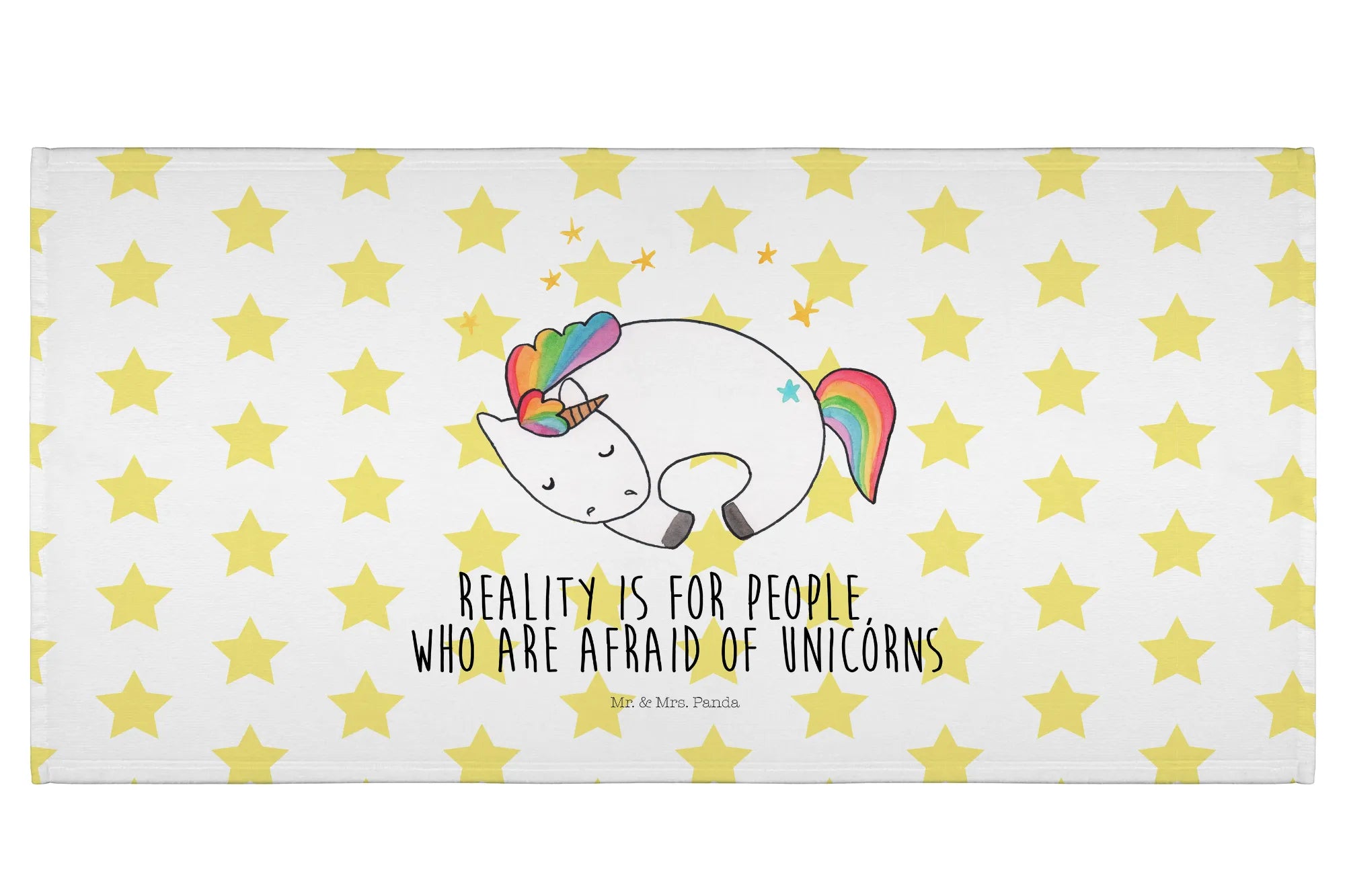 Entdecke das perfekte Gästehandtuch Einhorn Nacht von Mr. & Mrs. Panda! Dieses niedliche Handtuch ist mehr als nur ein einfaches Badetuch – es ist ein zauberhaftes Statement für alle Einhorn-Liebhaber. Mit einem süßen, träumenden Einhorn motiviert es dazu, die Realität hinter sich zu lassen und in die Welt der Fantasie einzutauchen. Die kreative Botschaft "Die Realität ist was für Menschen, die Angst vor Einhörnern haben." bringt jeden dazu, mit einem Lächeln das Gästehandtuch zu benutzen.