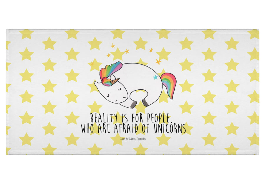 Jedes Handtuch ist hochwertig bedruckt mit dem niedlichen Motiv eines schlafenden Einhorns und dem Slogan "Die Realität ist was für Menschen, die Angst vor Einhörnern haben." Dieser Spruch bringt nicht nur ein Lächeln auf die Lippen, sondern lässt auch die Herzen der Einhorn-Fans höher schlagen.