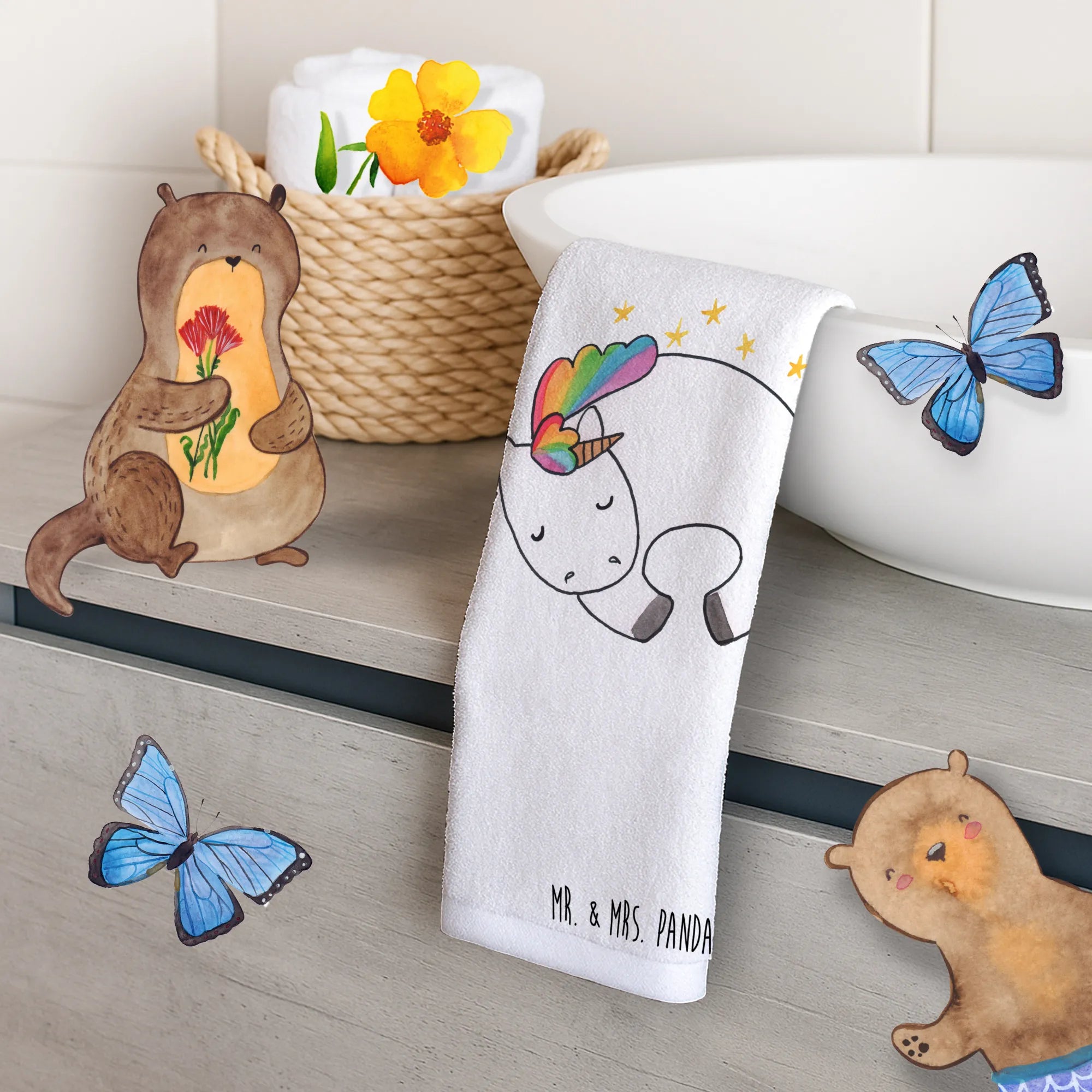 Das Gästetuch Einhorn Nacht von Mr. & Mrs. Panda ist das perfekte Geschenk für alle, die die zauberhafte Welt der Einhörner lieben. Mit seinem niedlichen Motive eines schlafenden Einhorns, das von traumhaften Farben umgeben ist, bringt es Magie in jedes Badezimmer. Ob für Freunde, Familie oder als besonderes Geschenk für die nächste Feier – dieses Handtuch ist vielseitig einsetzbar!