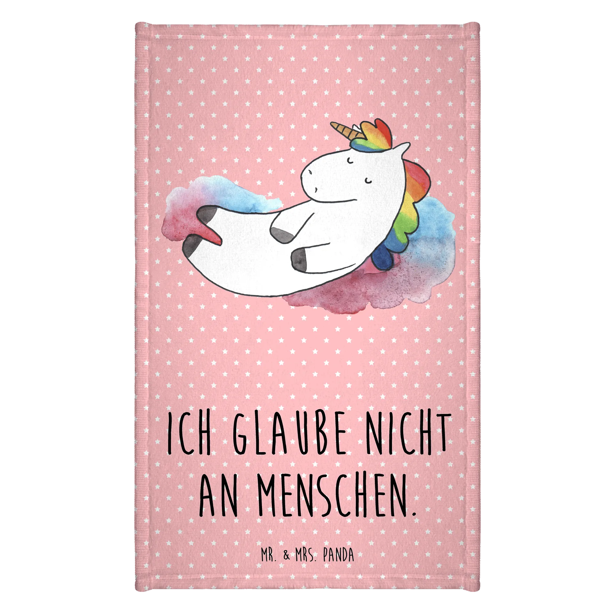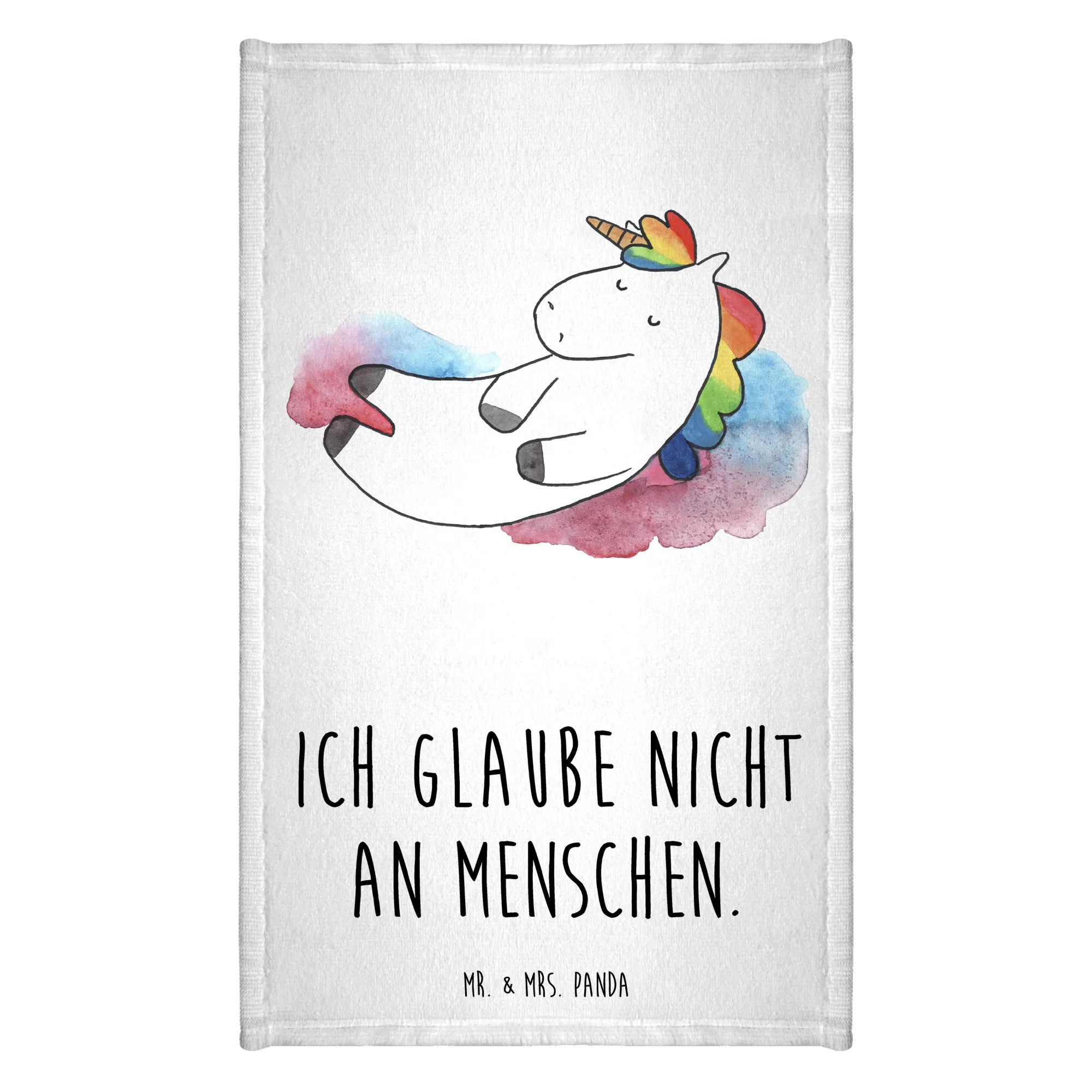 Das wunderschöne Gästehandtuch 'Einhorn Wolke 7' von Mr. & Mrs. Panda ist das perfekte Accessoire für jedes Badezimmer! Mit seinem niedlichen Motiv eines entspannten Einhorns, das auf einer Wolke hängt und der witzigen Aussage 'Ich glaube nicht an Menschen', zaubert es jedem einen Schmunzler ins Gesicht.