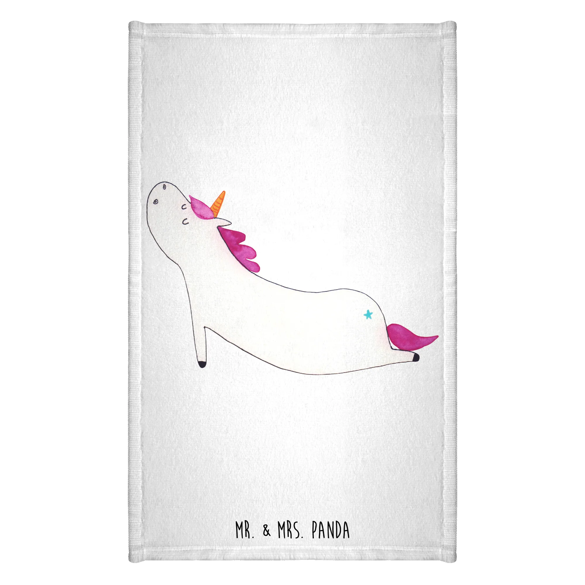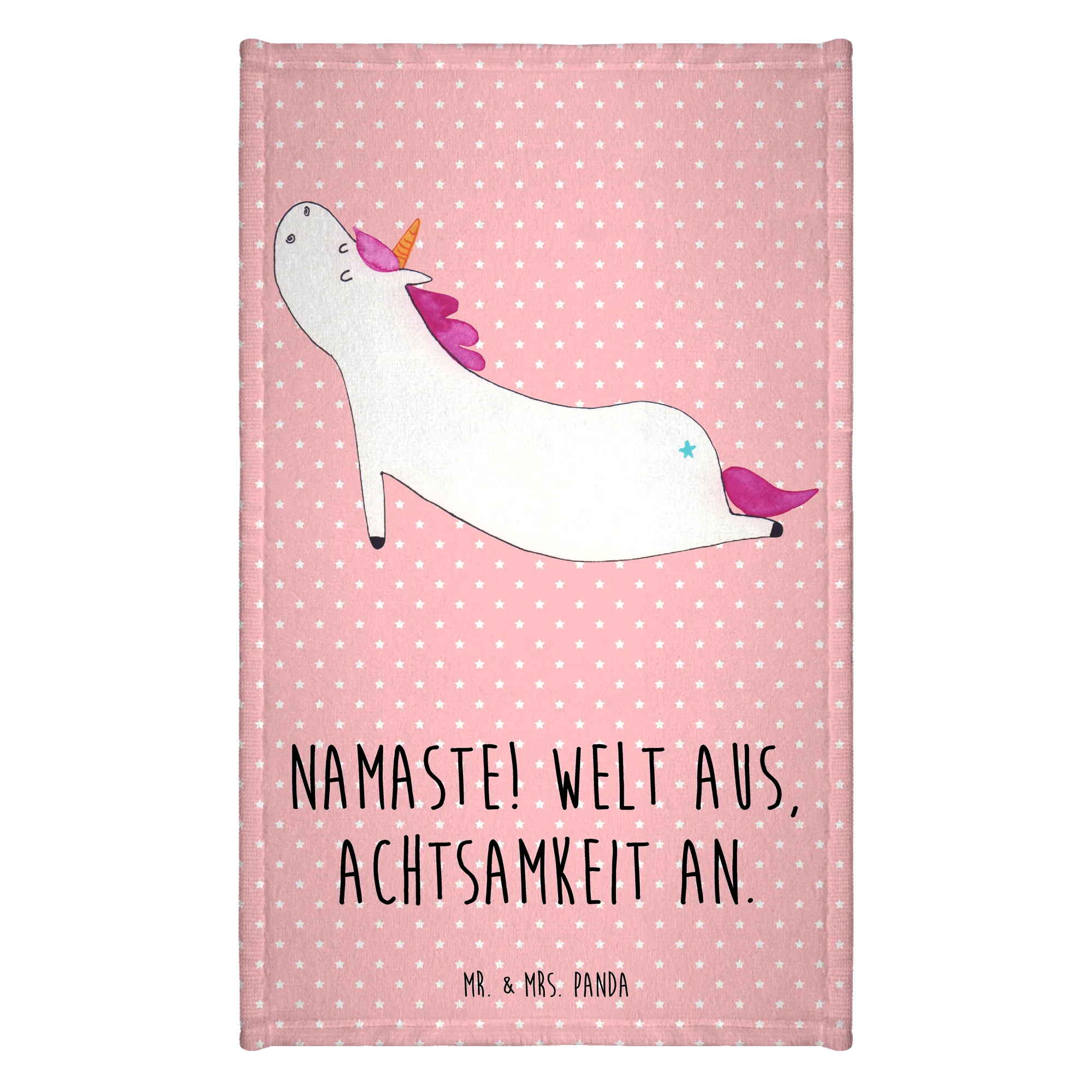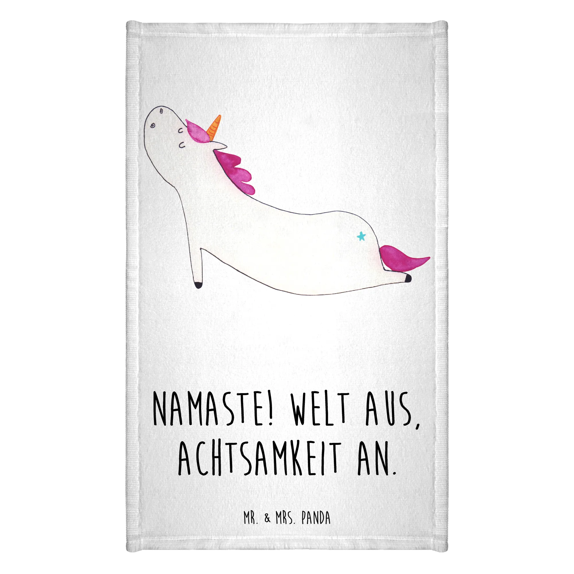 Das süße Gästehandtuch Einhorn Yoga von Mr. & Mrs. Panda ist der perfekte Begleiter für dein Badezimmer oder dein Gästebad! Hochwertig bedruckt mit einem lustigen und zugleich entspannenden Einhorn-Motiv, bringt es nicht nur Farbe, sondern auch Freude in jeden Raum.