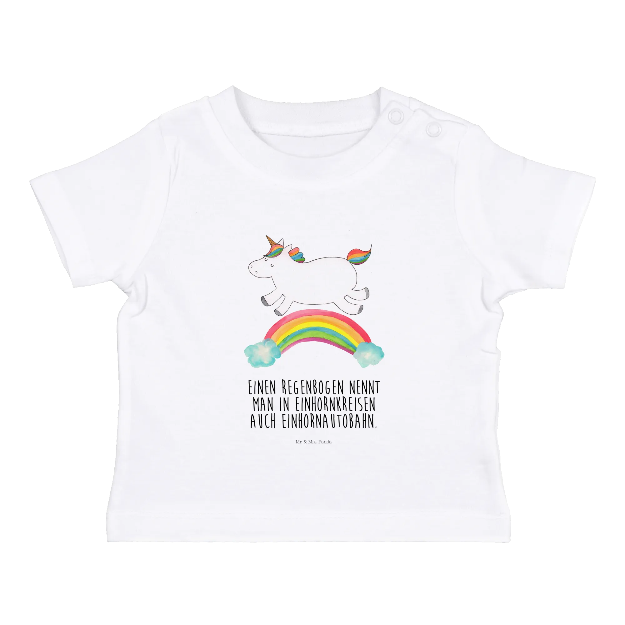 Wie oft hast du schon von der Einhornautobahn gehört? Die witzige Botschaft, dass ein Regenbogen in Einhornkreisen auch als Einhornautobahn bekannt ist, macht das Shirt zum absoluten Hingucker. Durch die liebevollen Aquarellzeichnungen von Mrs. Panda erhältst du ein Stück Schmuck, das nicht nur gut aussieht, sondern auch viel Freude ins Kinderzimmer bringt.