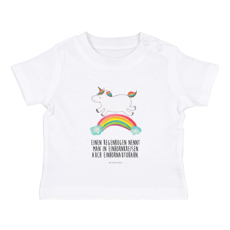 Entdecke das zauberhafte Organic Baby Shirt mit dem fröhlichen Einhorn Regenbogen aus der einzigartigen Einhorn-Kollektion von Mr. & Mrs. Panda! Dieses liebevoll gestaltete Shirt ist das perfekte Geschenk für kleine Entdecker, die die wundersame Welt der Einhörner lieben. Das süße Design zeigt ein niedliches Einhorn, das fröhlich über einen Regenbogen flitzt. Diese farbenfrohe Darstellung bringt nicht nur Freude, sondern vermittelt auch faszinierendes Wissen: Wusstest du, dass Einhörner einen Regenbogen in ihrer eigenen Sprache als Einhornautobahn bezeichnen? Mit diesem Shirt wird dein kleiner Liebling zum Star jeder Spielgruppe!