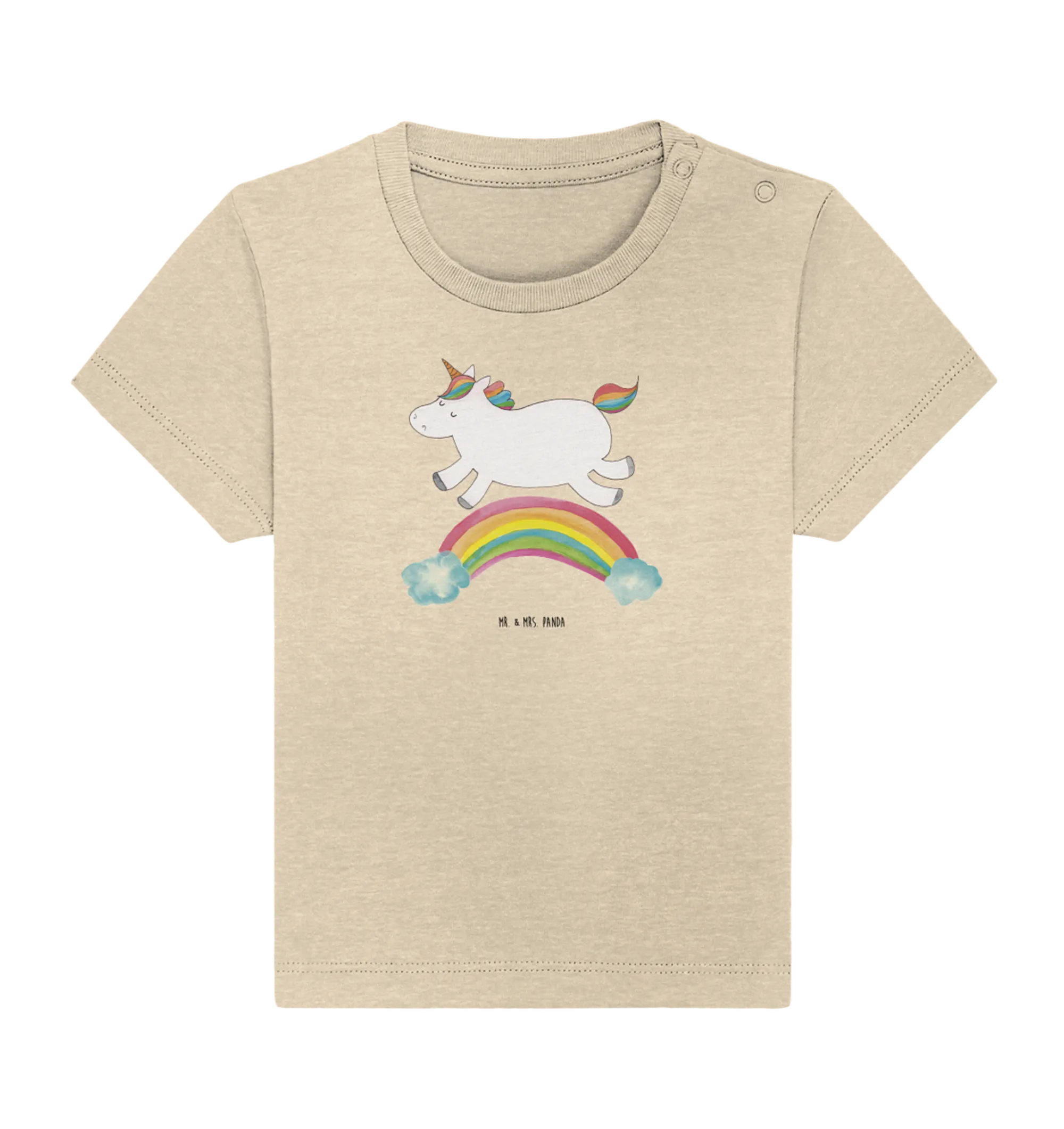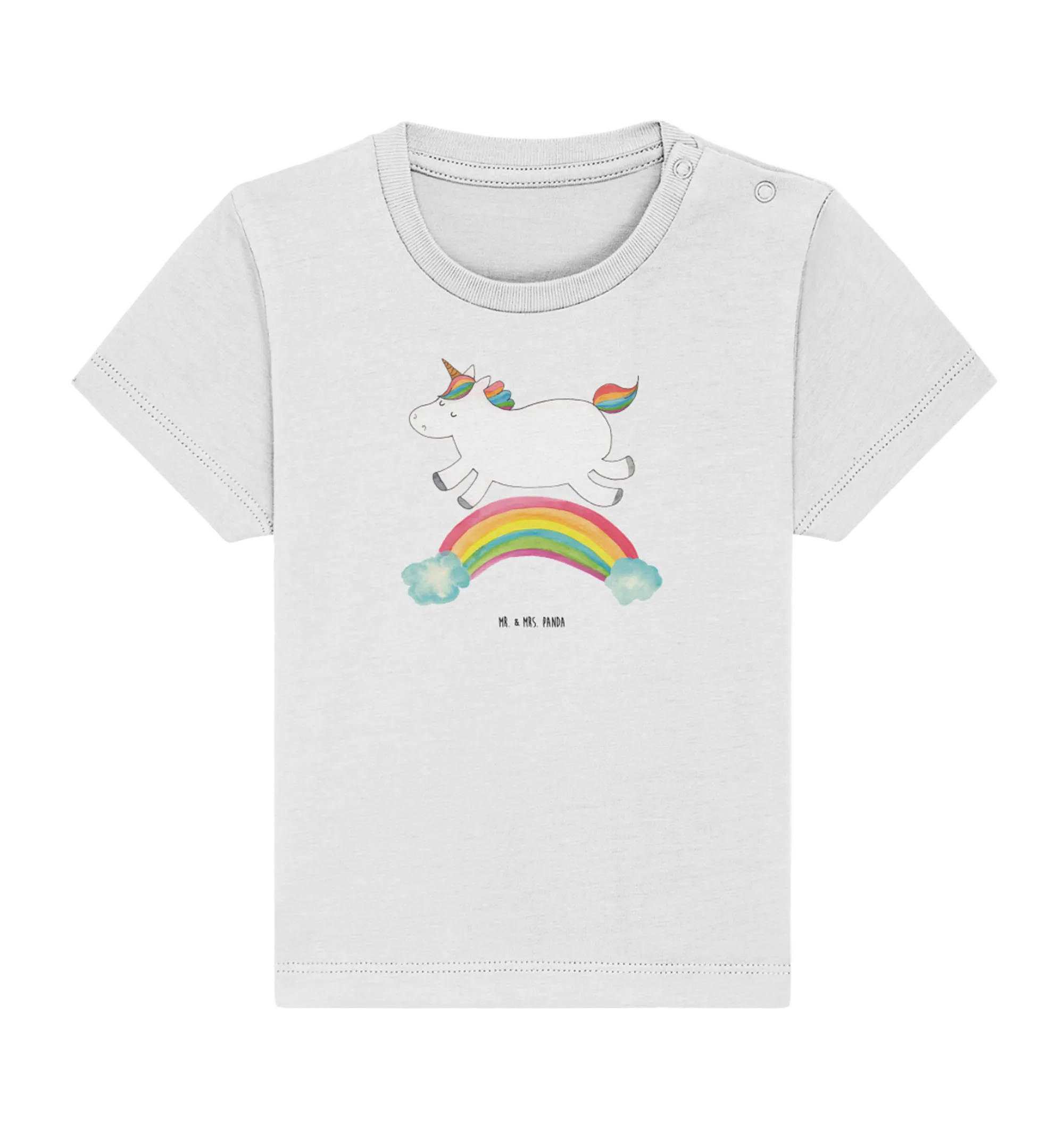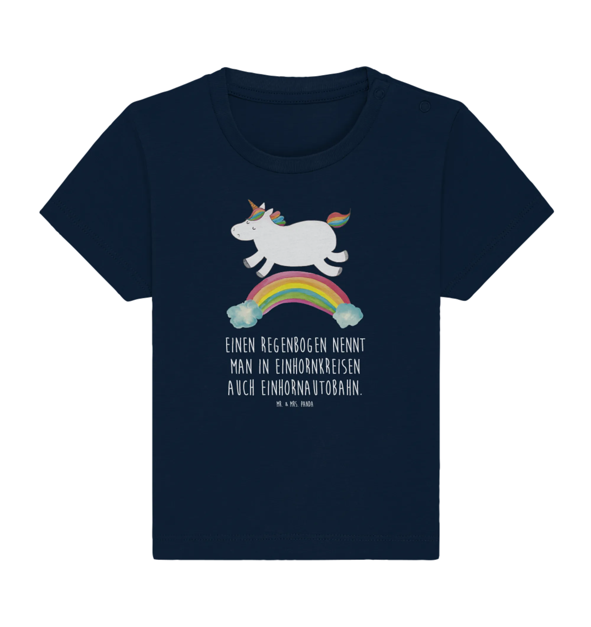 Das Organic Baby Shirt mit dem niedlichen Motiv "Einhorn Regenbogen" aus der bezaubernden Einhorn-Kollektion von Mr. & Mrs. Panda ist das perfekte Geschenk für junge Eltern und ihre kleinen Abenteuerlustigen!