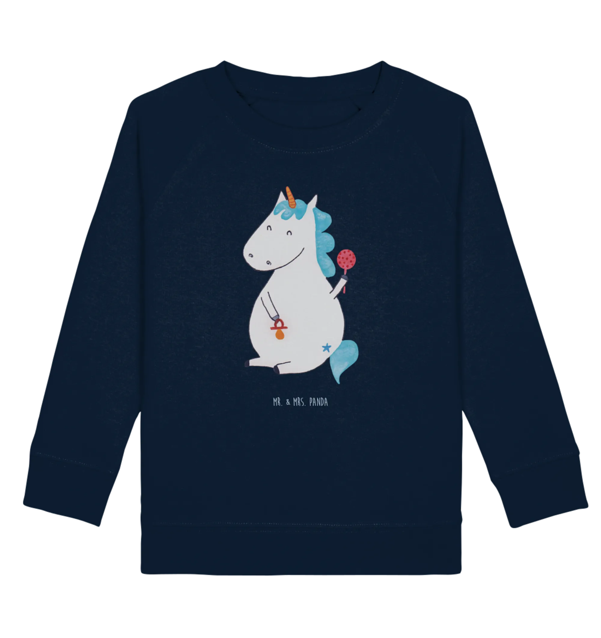 Der Organic Kinder Pullover "Einhorn Baby" aus der zauberhaften Einhorn-Kollektion von Mr. & Mrs. Panda ist das perfekte Geschenk für die kleinen Lieblinge in deinem Leben! 🌈 Dieser niedliche Pullover begeistert mit einem handgezeichneten Motiv eines fröhlichen Baby-Einhorns, das einen Schnuller in der Hand hält. Die Kombination von süßem Design und hochwertiger, ökologischer Baumwolle macht ihn nicht nur stylisch, sondern auch besonders weich und angenehm zu tragen.