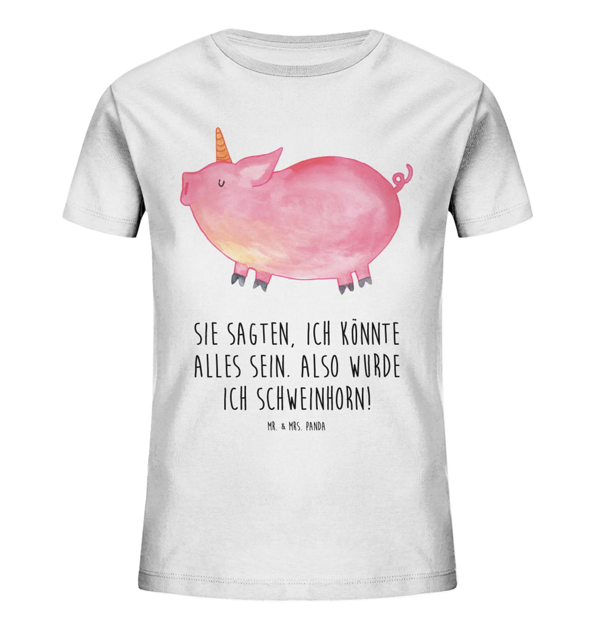 Das wunderschöne Kinder T-Shirt Einhorn Schweinhorn von Mr. & Mrs. Panda ist das perfekte Geschenk für kleine Einhorn-Fans! 🌈 Mit einem bezaubernden Design, das ein lustiges Schweinhorn zeigt, verbindet es die magische Welt der Einhörner mit fröhlichem Humor.