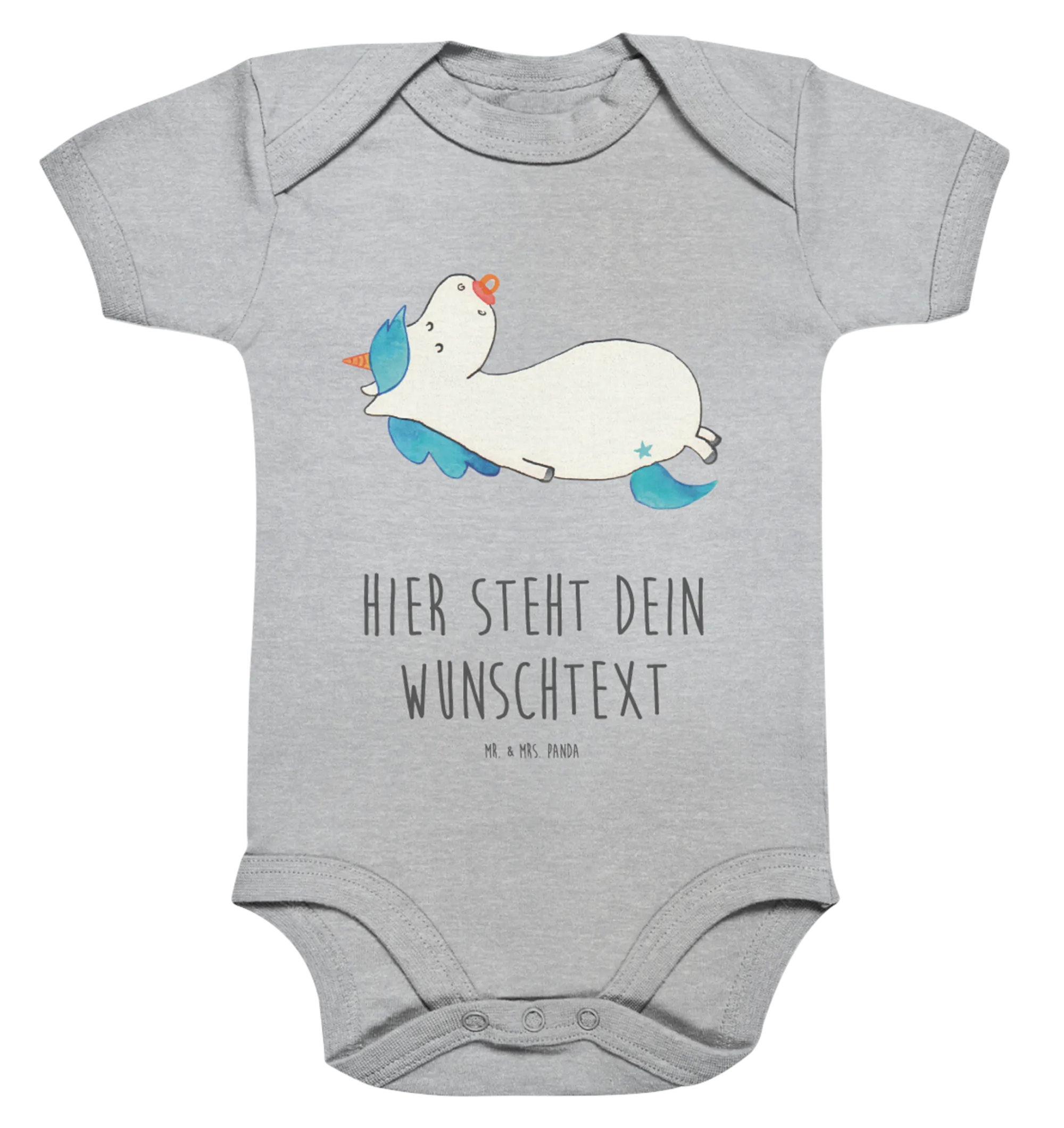 Der personalisierte Baby Body "Einhorn Schnullie" aus der zauberhaften Einhorn-Kollektion von Mr. & Mrs. Panda ist das perfekte Geschenk für frischgebackene Eltern. Ob zur Geburt oder zum ersten Geburtstag – dieser Babystrampler zaubert garantiert ein Lächeln auf die Gesichter, wenn man ihn das erste Mal sieht.