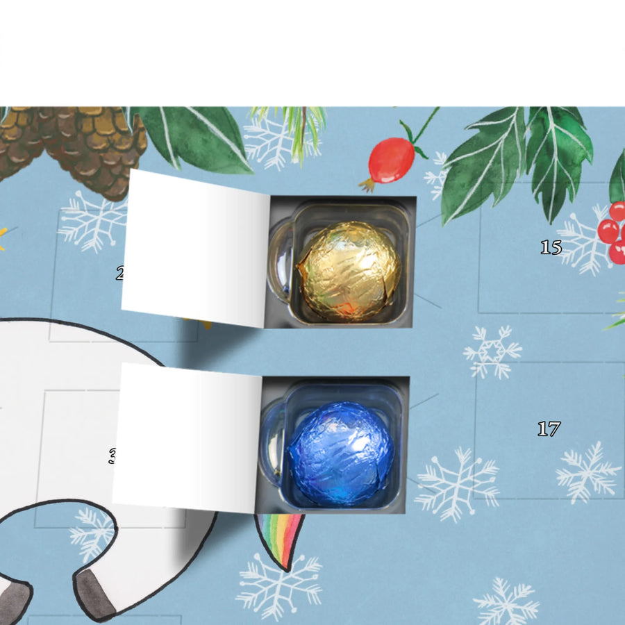 Die Einhorn - Kollektion von Mr. & Mrs. Panda vereint handgezeichnete Aquarellmotive von Mrs. Panda mit liebevollen Sprüchen und fröhlichem Design. Verschenke mit diesem Kalender nicht nur Schokolade, sondern auch ein Lächeln, Magie und eine Erinnerung, die bleibt. 💫