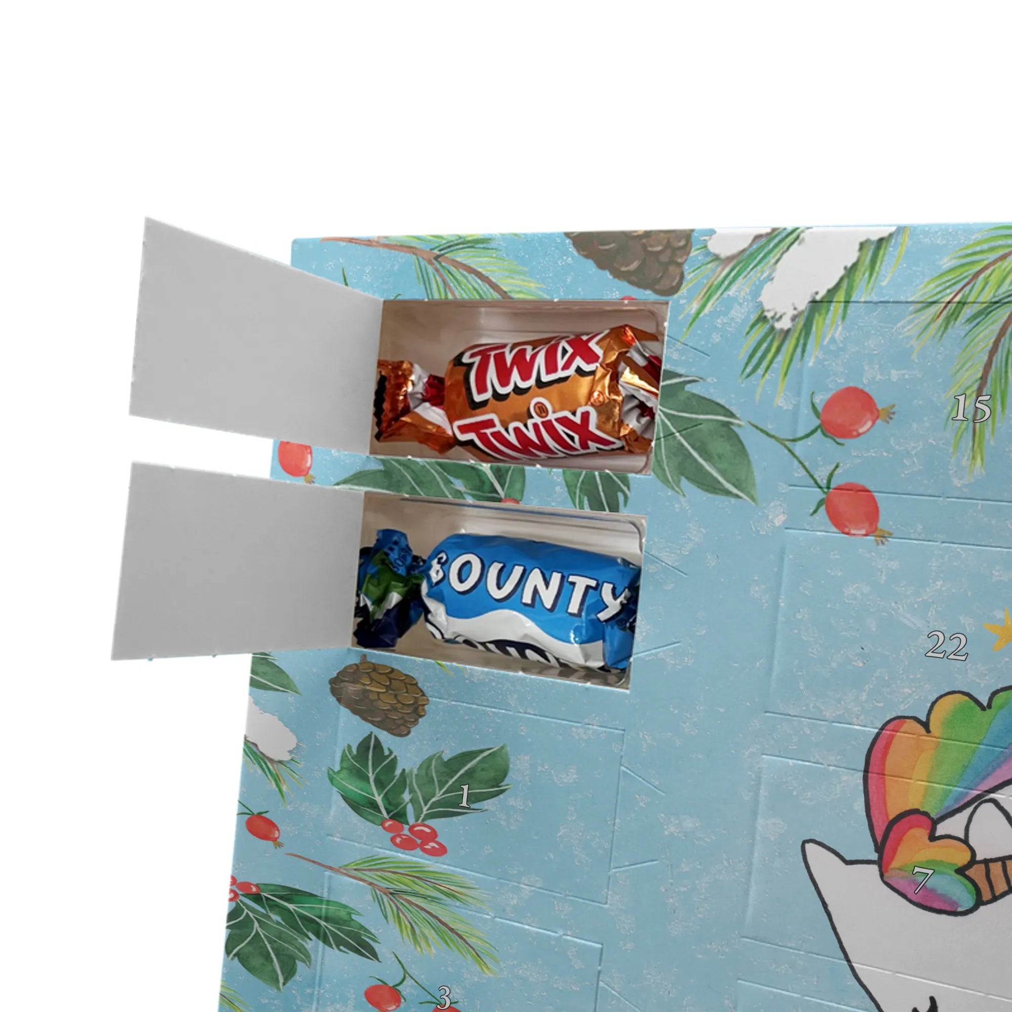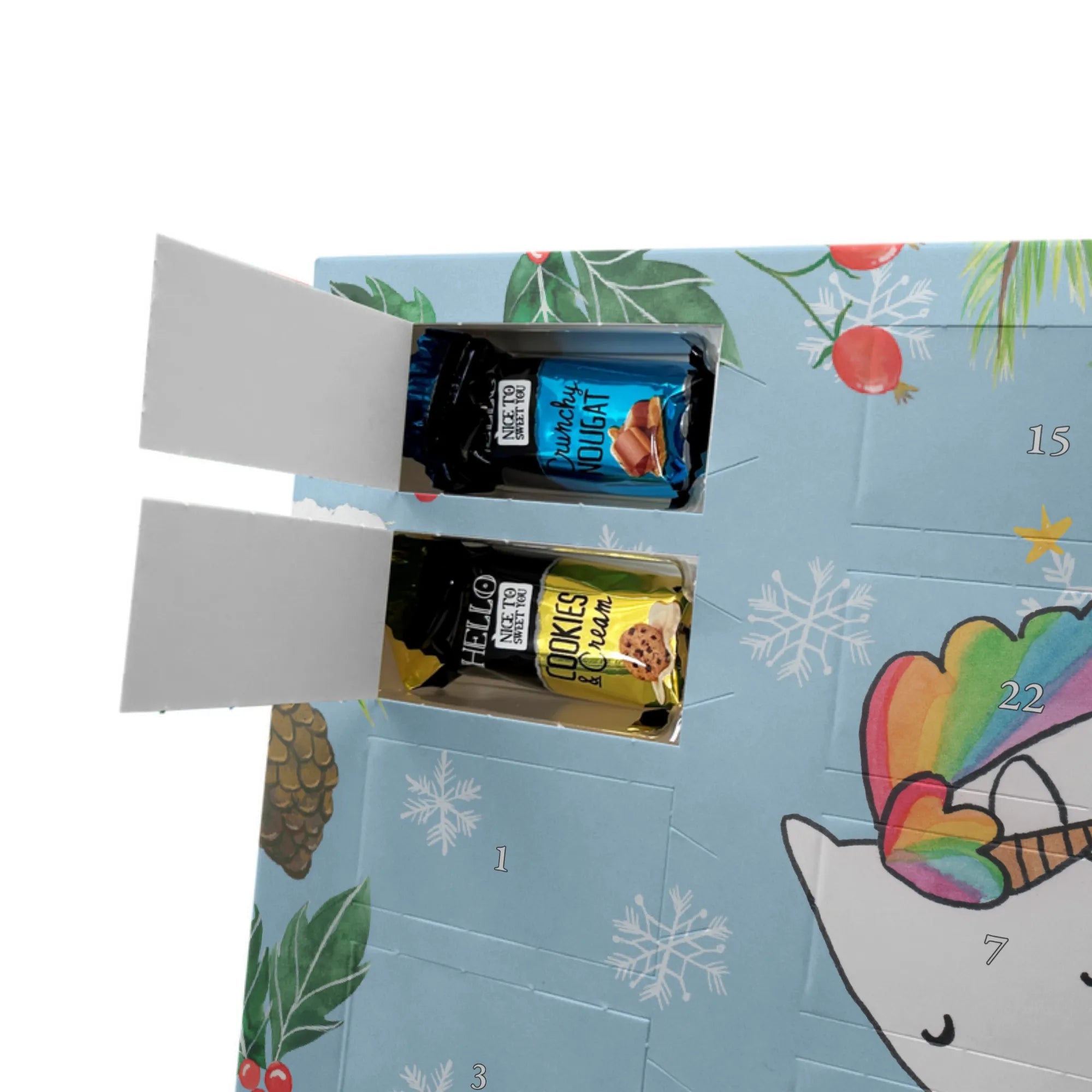 Der Adventskalender ist praktisch: er kann aufgehängt oder aufgestellt werden und die bedruckten Seitenflächen sorgen für ein rundum schönes Bild – perfekt als Einhorn Deko im Zimmer oder als Blickfang unter dem Weihnachtsbaum. Ob als Adventskalender Freundin, Einhorn Adventskalender personalisiert oder als Schoko Adventskalender für Kinder: dieses liebevolle Geschenk vereint Design, Persönlichkeit und köstliche Schokolade.