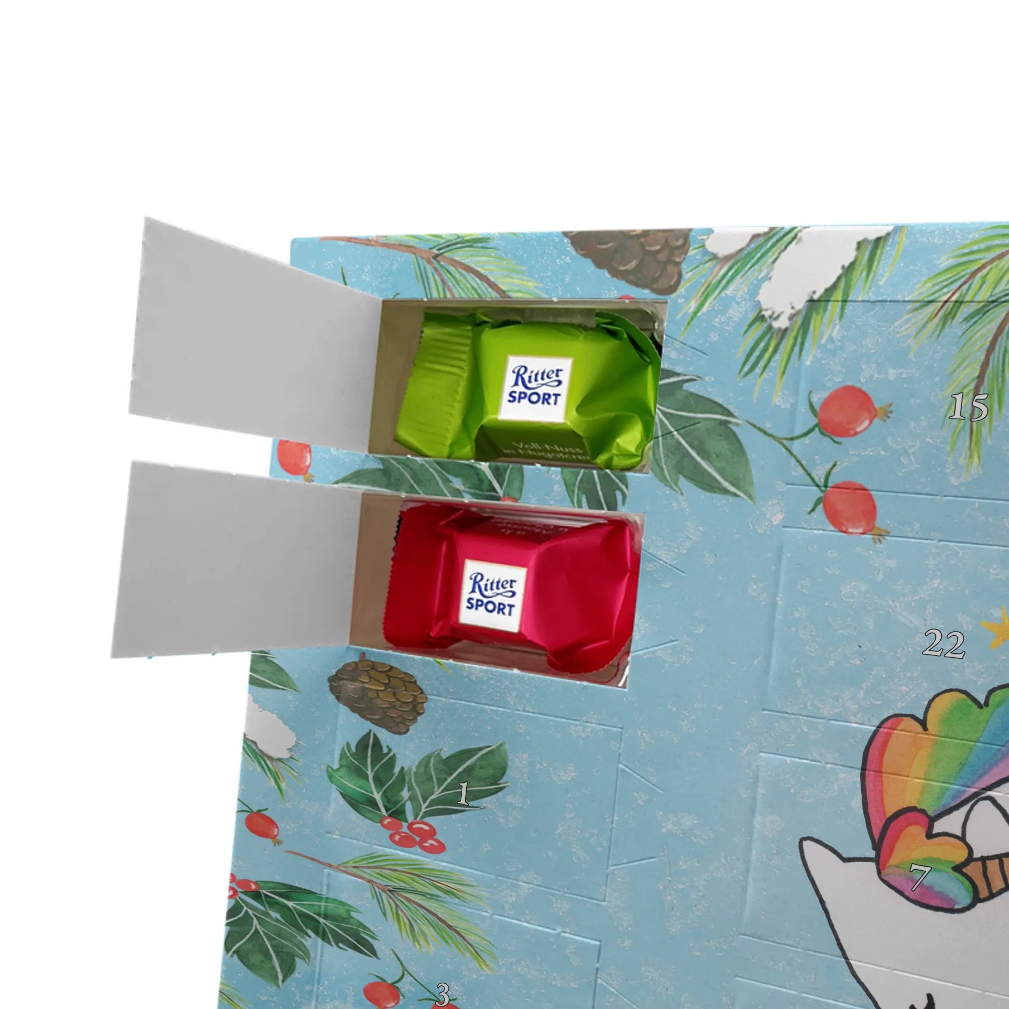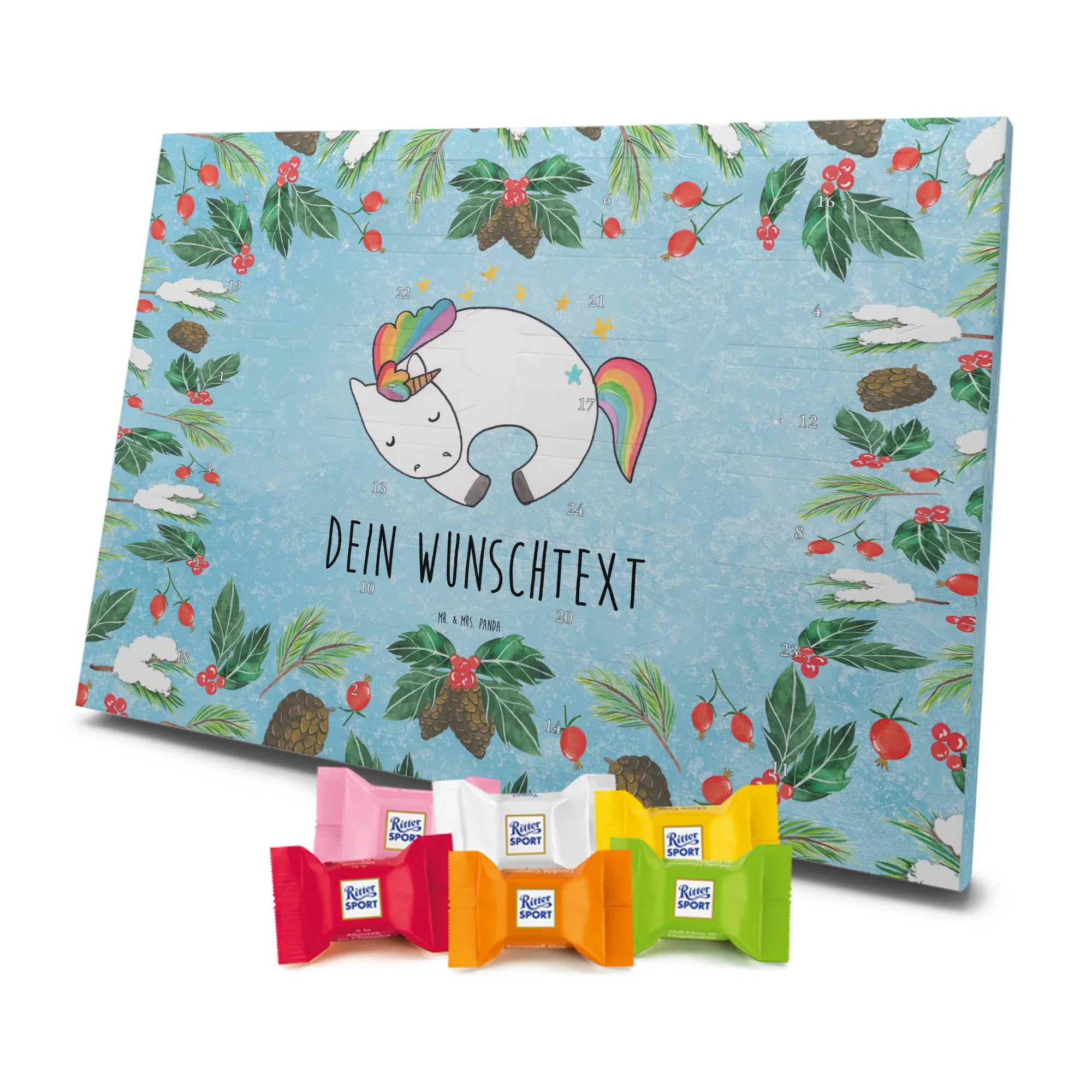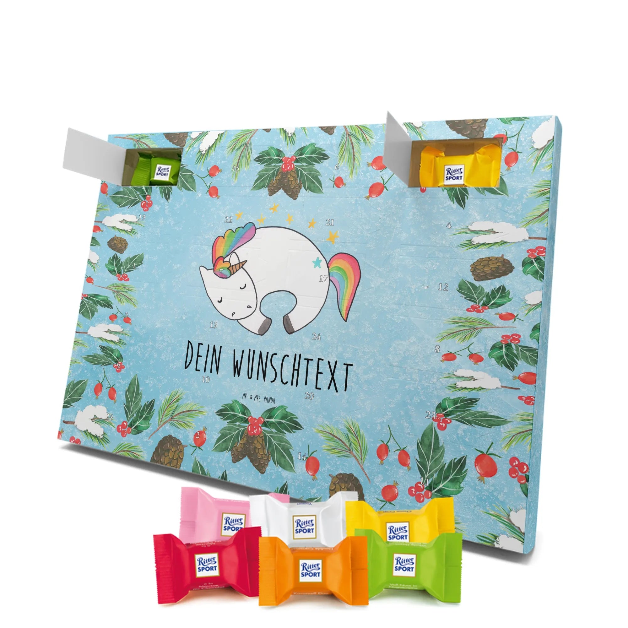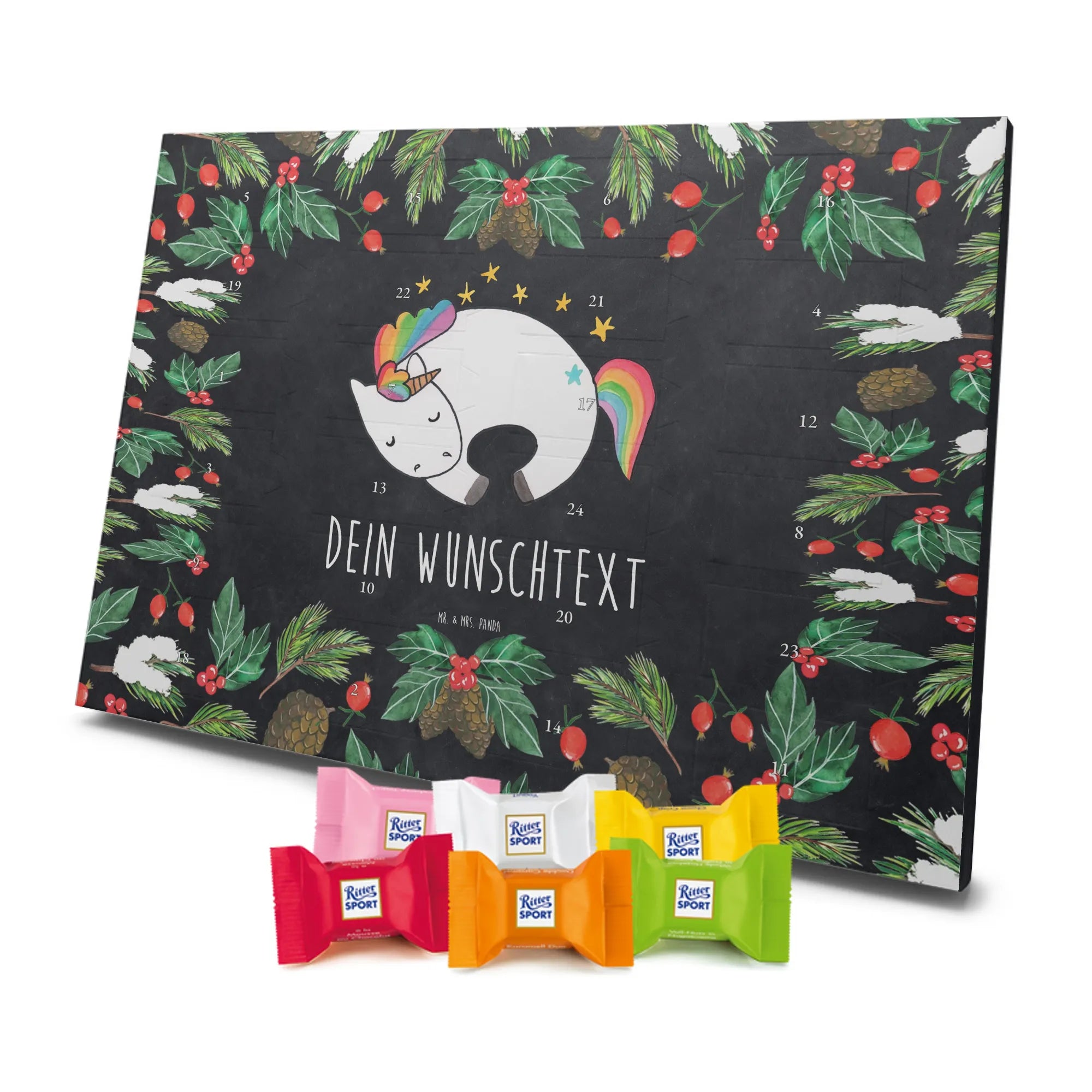 🐼 Personalisierter Schoko Adventskalender, seidenmatt und mit Ritter Sport Schokowürfeln.