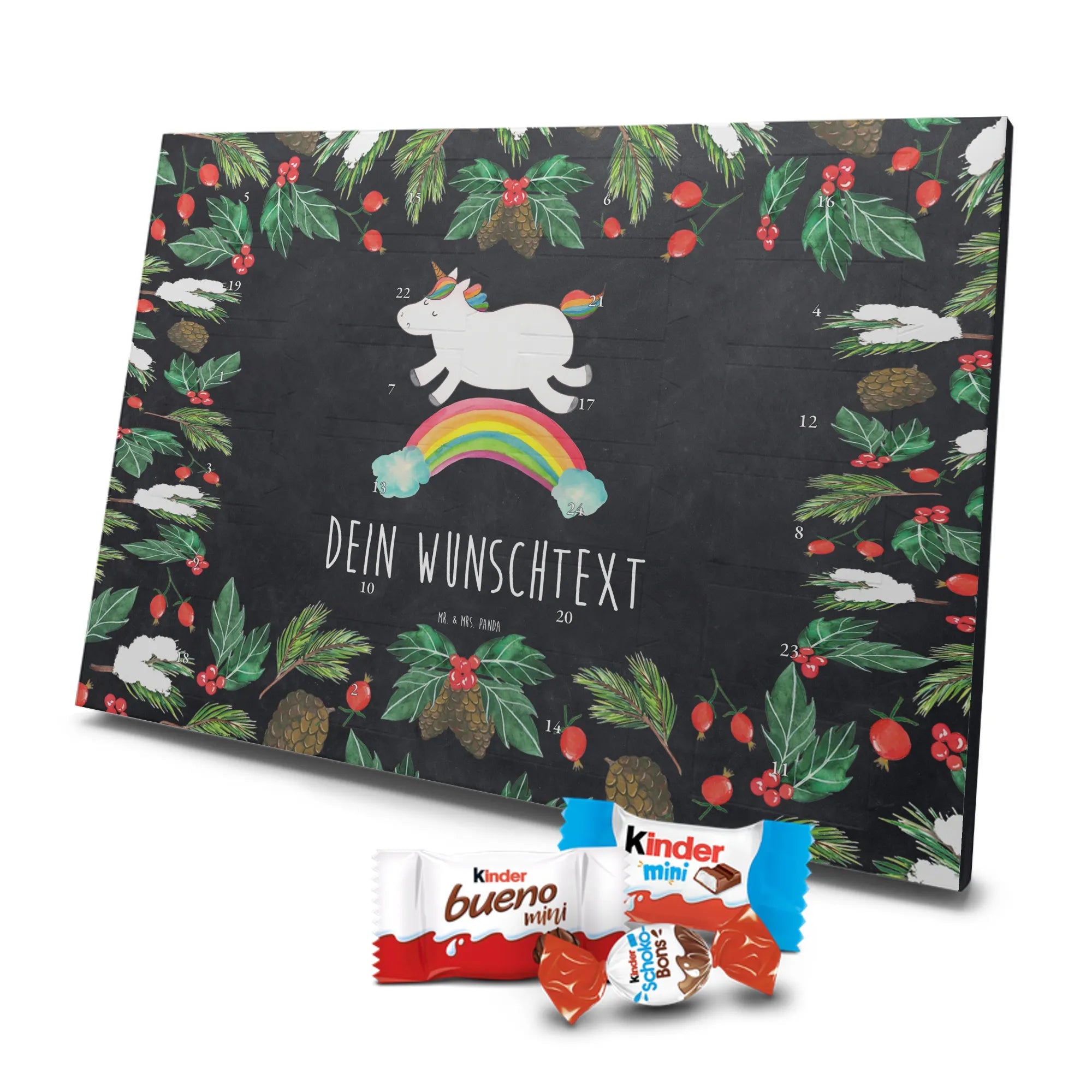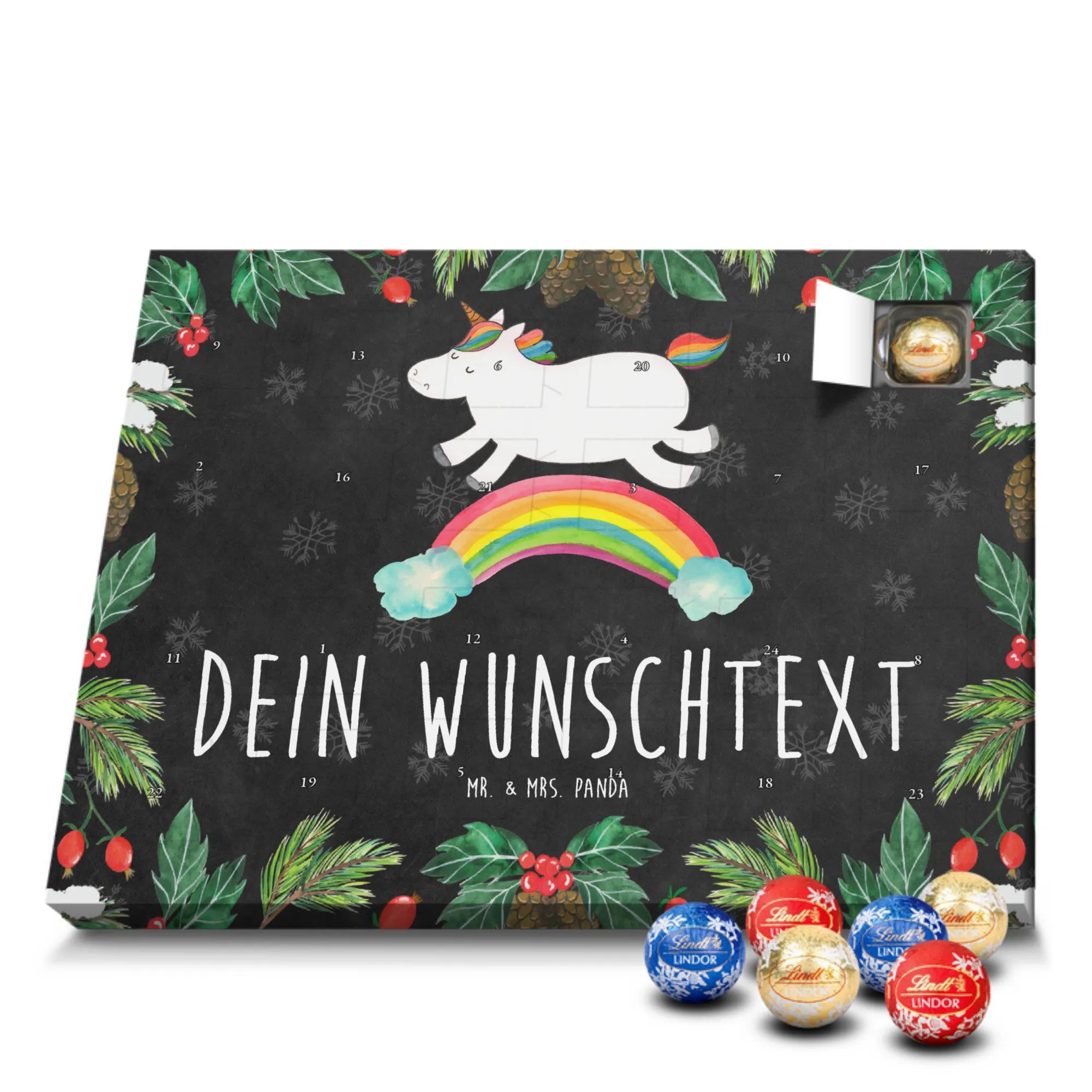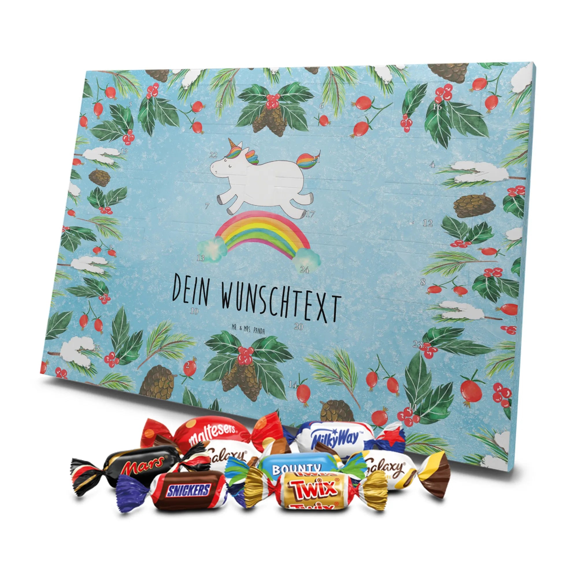 Personalisierter Schoko Adventskalender „Einhorn Regenbogen“ aus der Einhorn - Kollektion von Mr. & Mrs. Panda: ein zauberhaftes Geschenk für alle, die Einhörner, Regenbögen und süße Überraschungen lieben.
