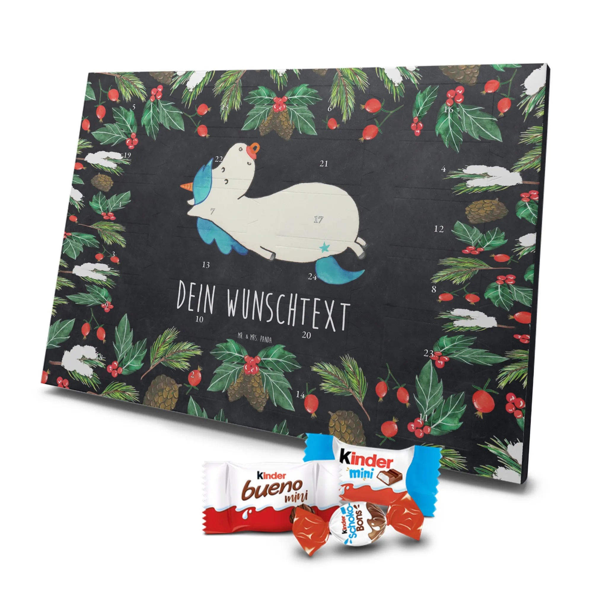 Verschenke Freude, süße Schokoladenmomente und persönliche Erinnerungen mit dem personalisierten Adventskalender Einhorn Schnullie von Mr. & Mrs. Panda – ein kleines, großes Schmuckstück für die Vorweihnachtszeit.