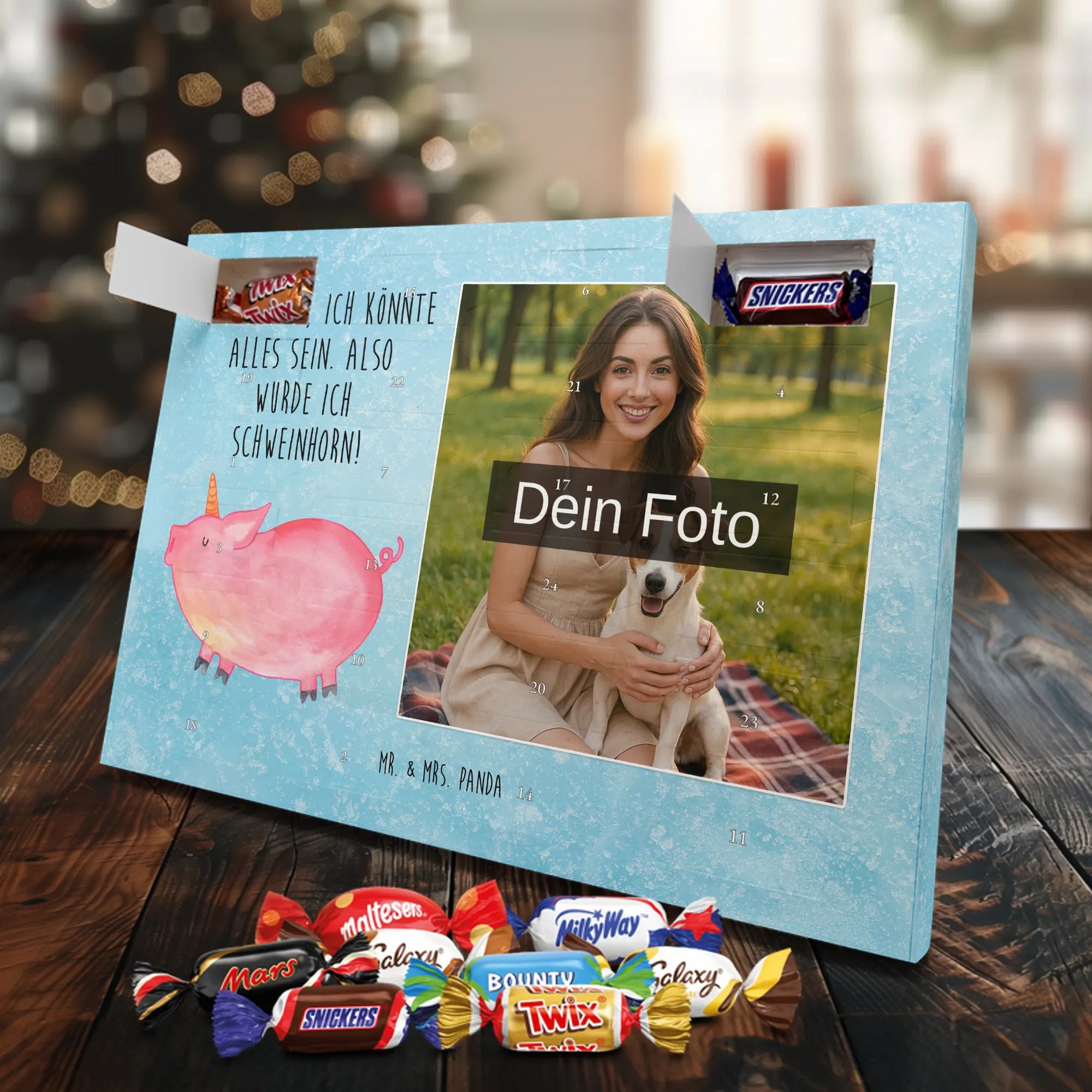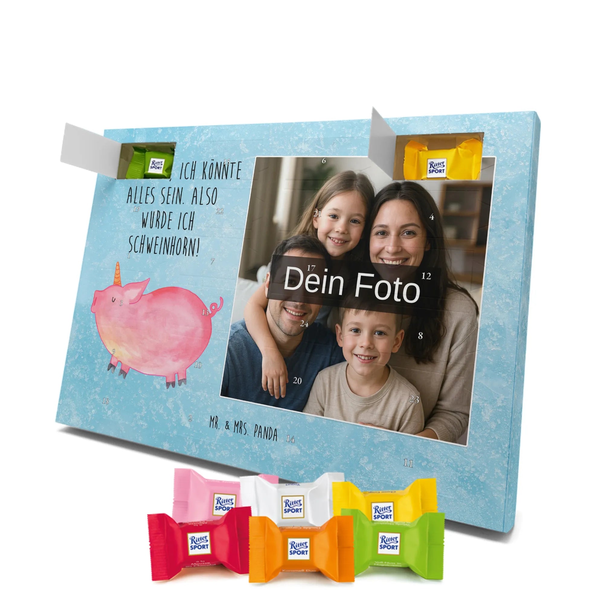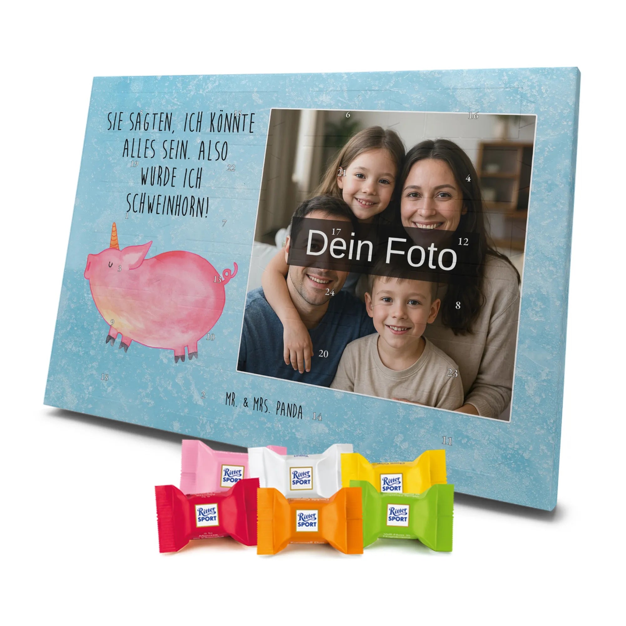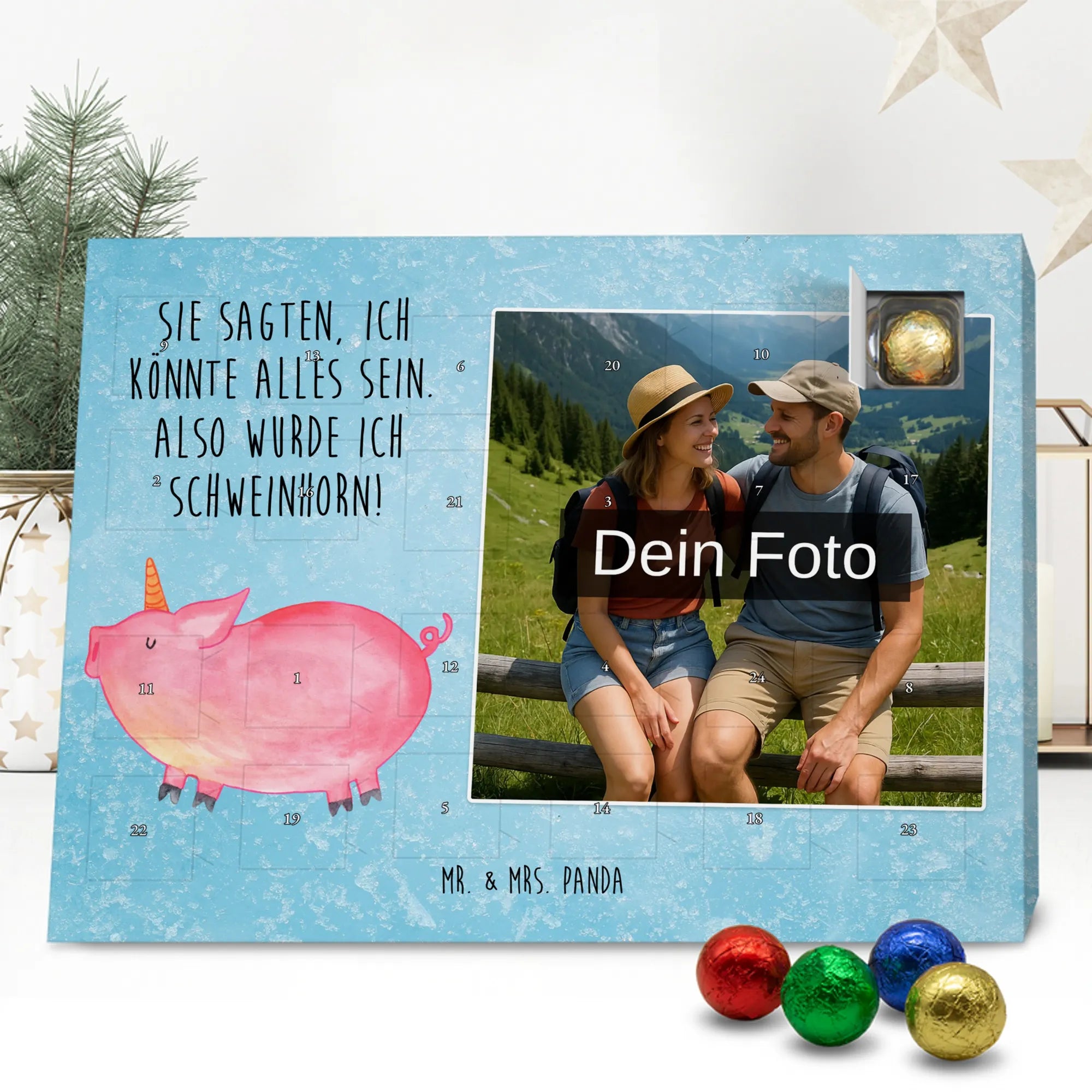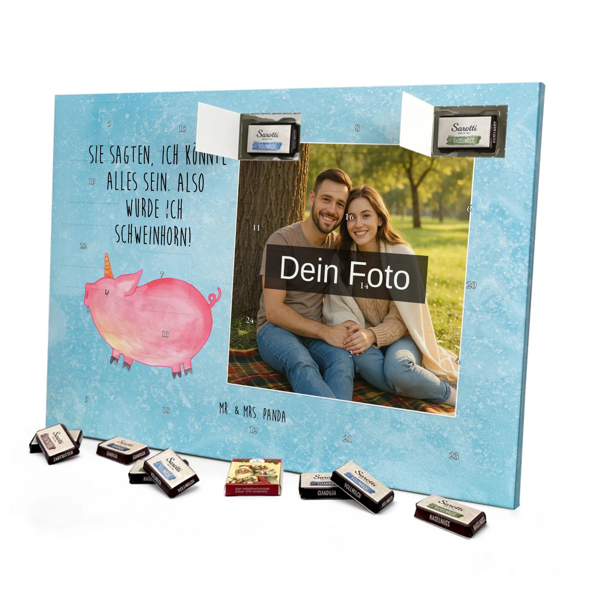 Personalisierter Schoko Foto Adventskalender Einhorn Schwein - Classic - Eisblau