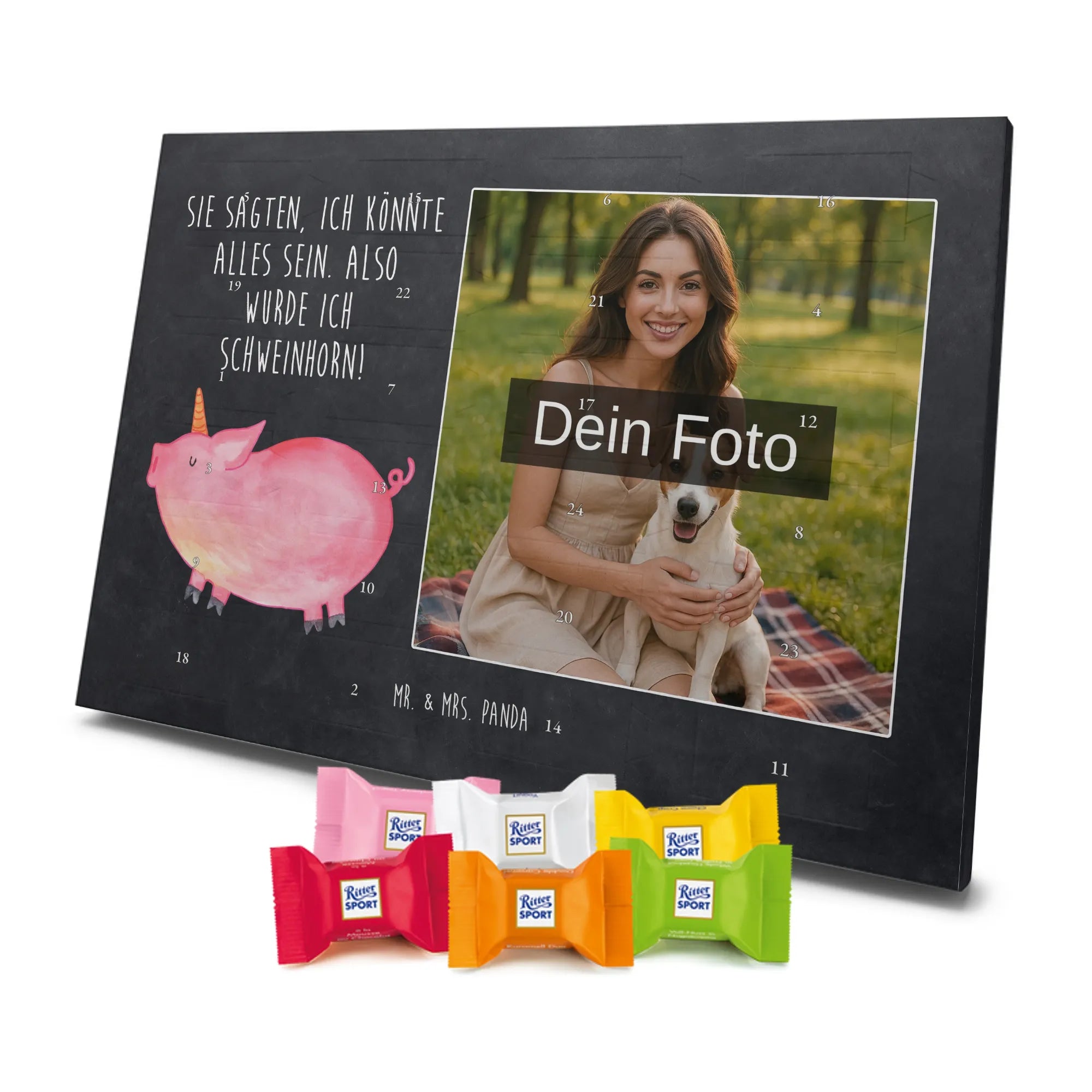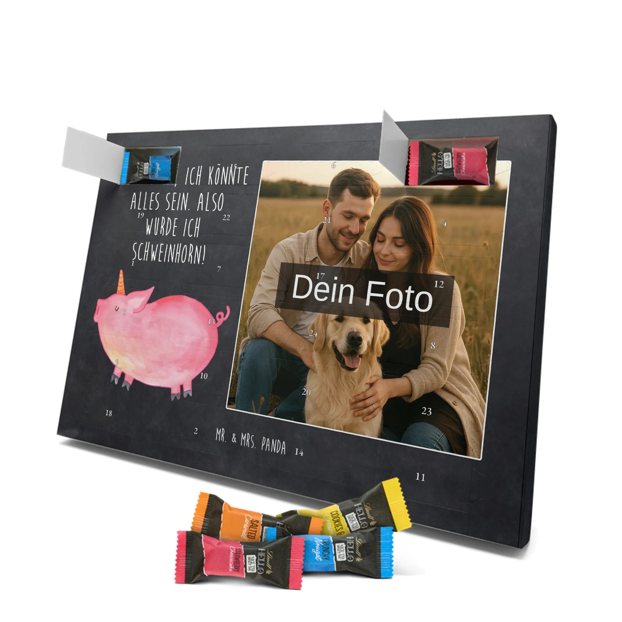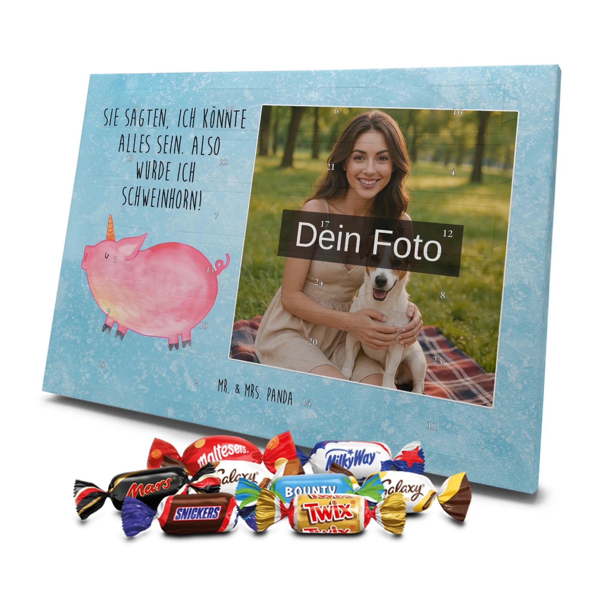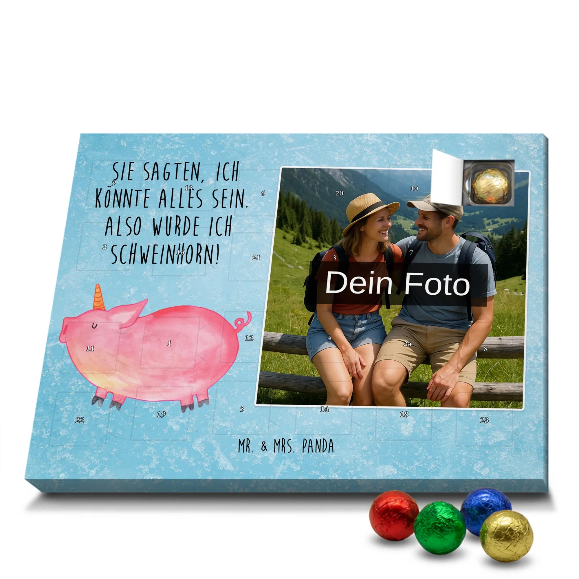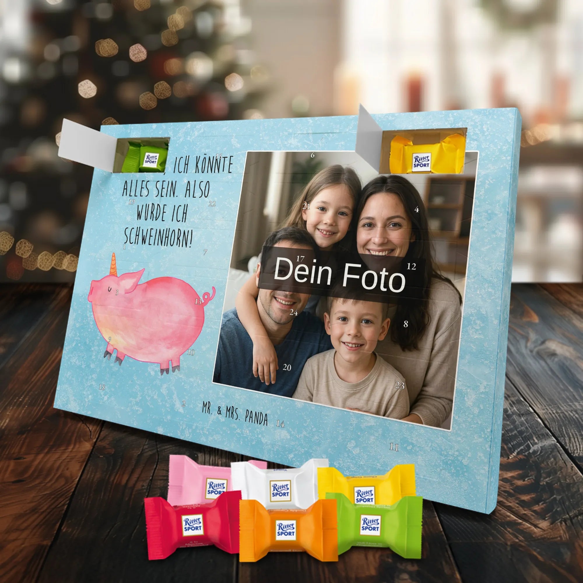 Personalisierter Schoko Foto Adventskalender Einhorn Schwein - Classic - Eisblau