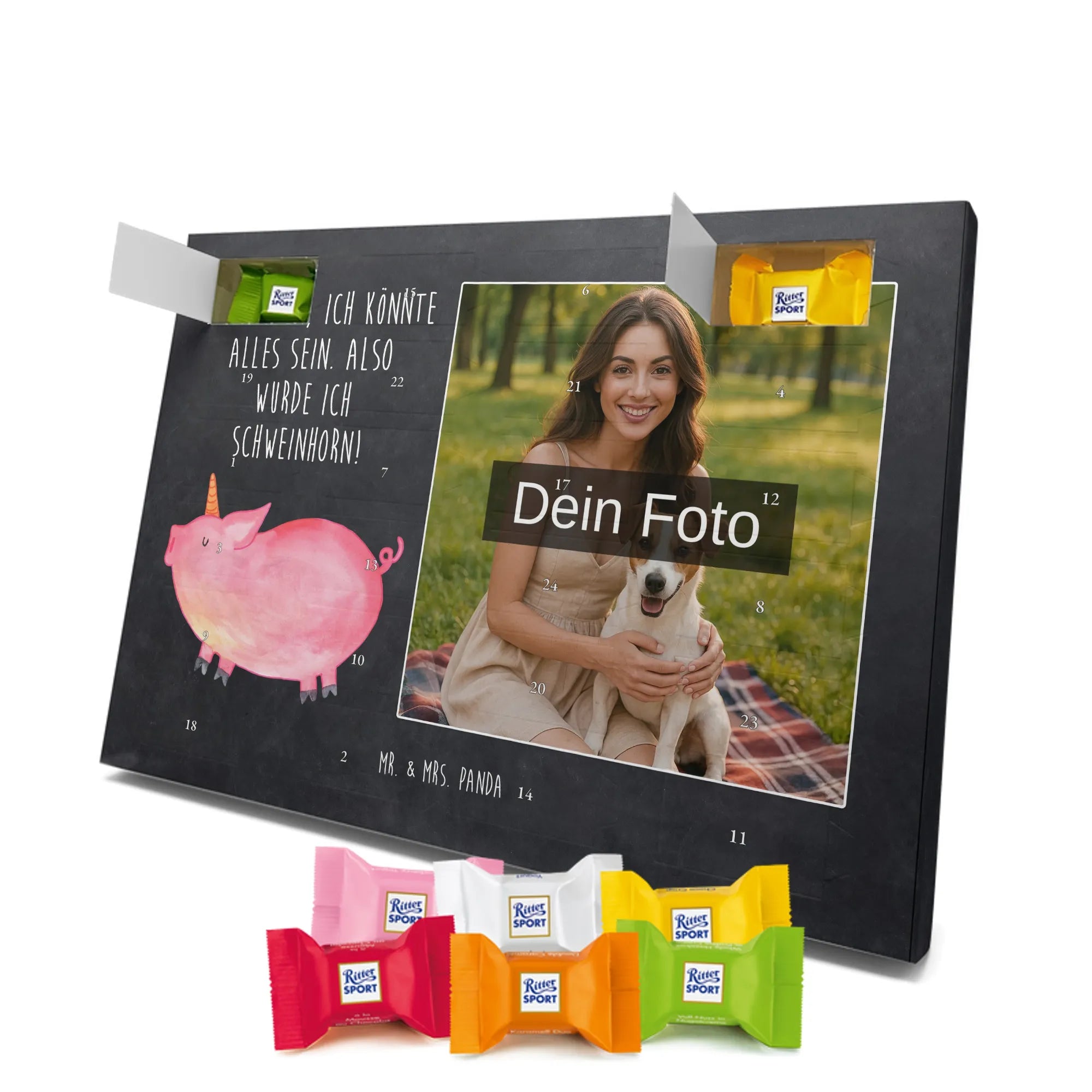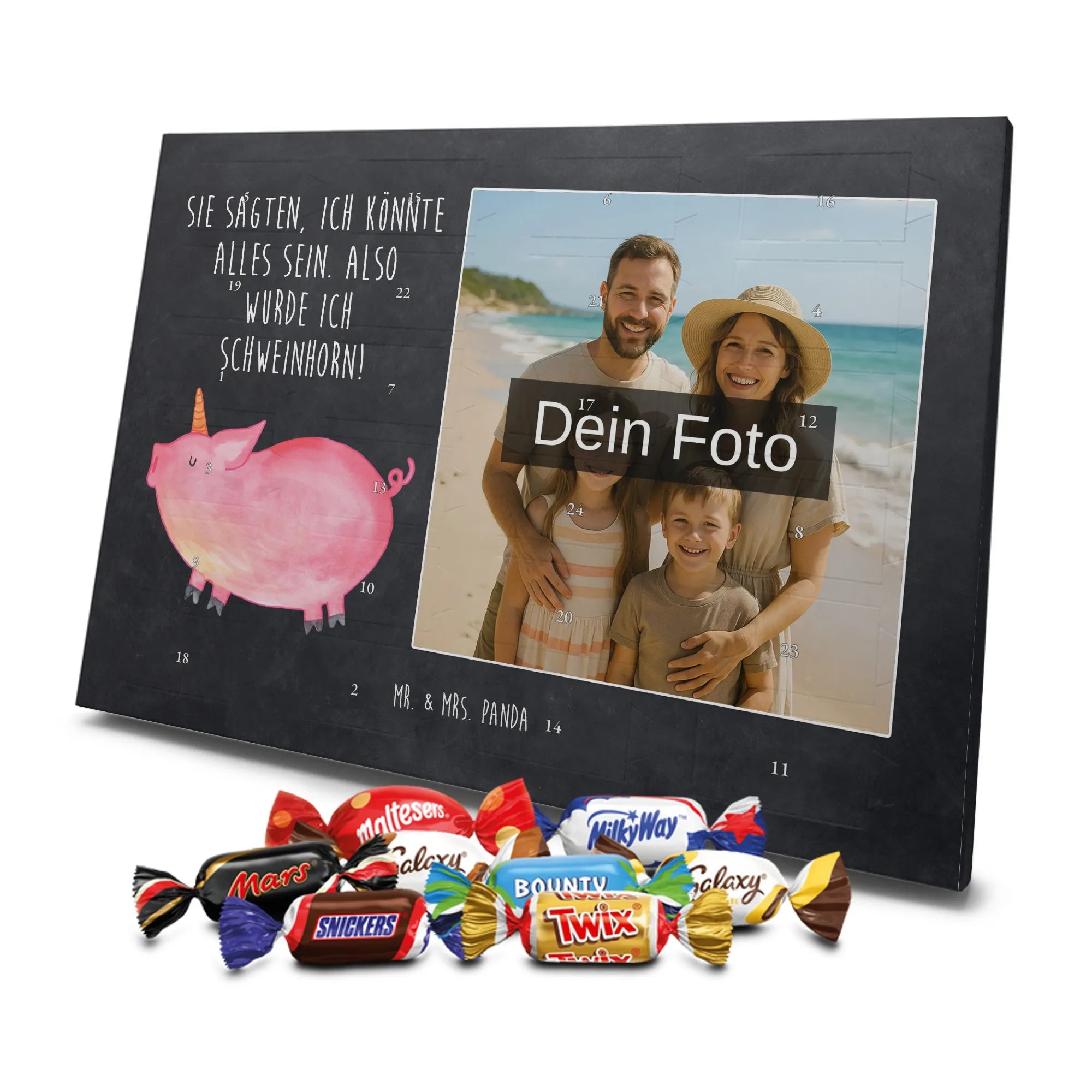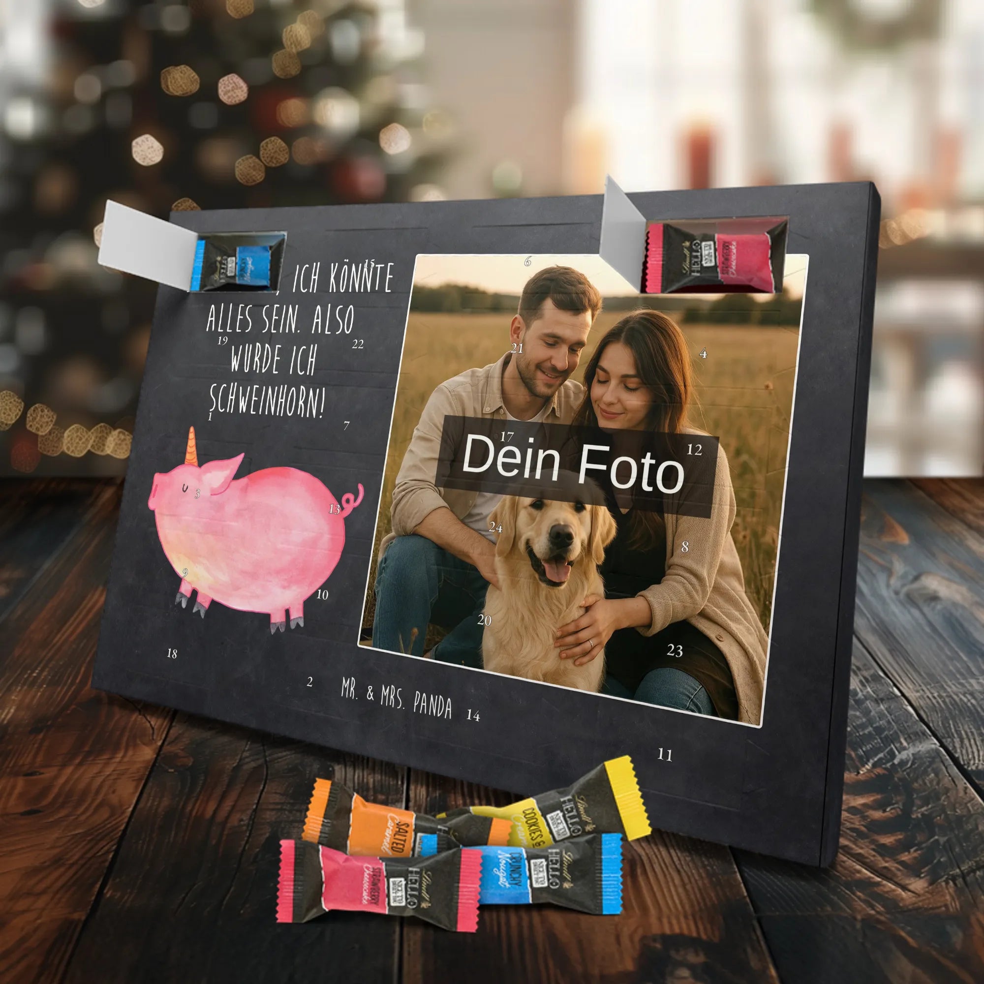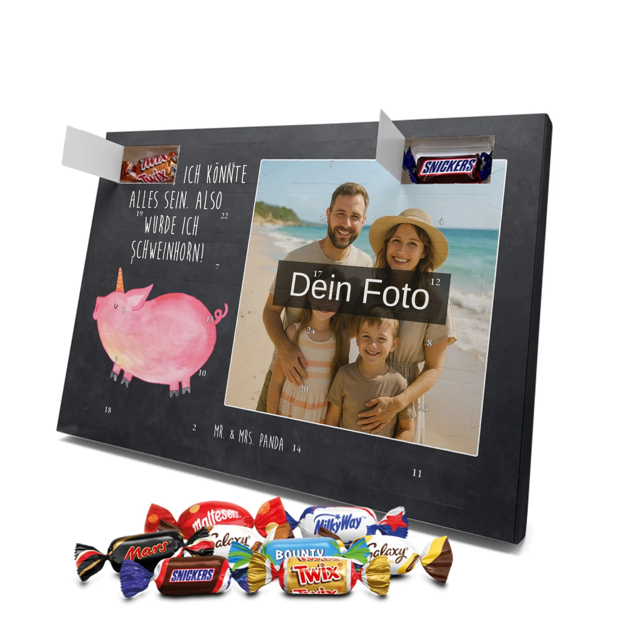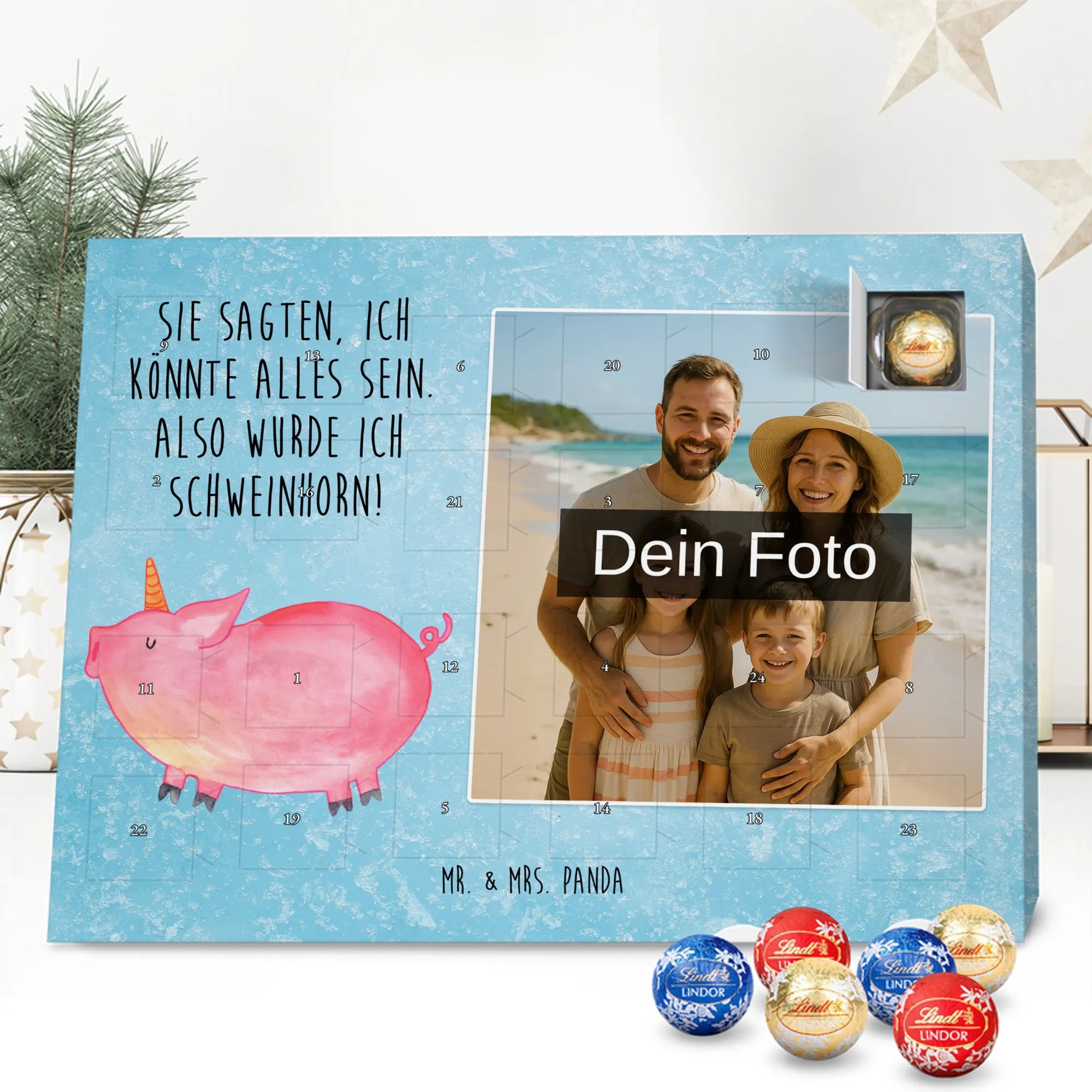 Personalisierter Schoko Foto Adventskalender Einhorn Schwein - Classic - Eisblau