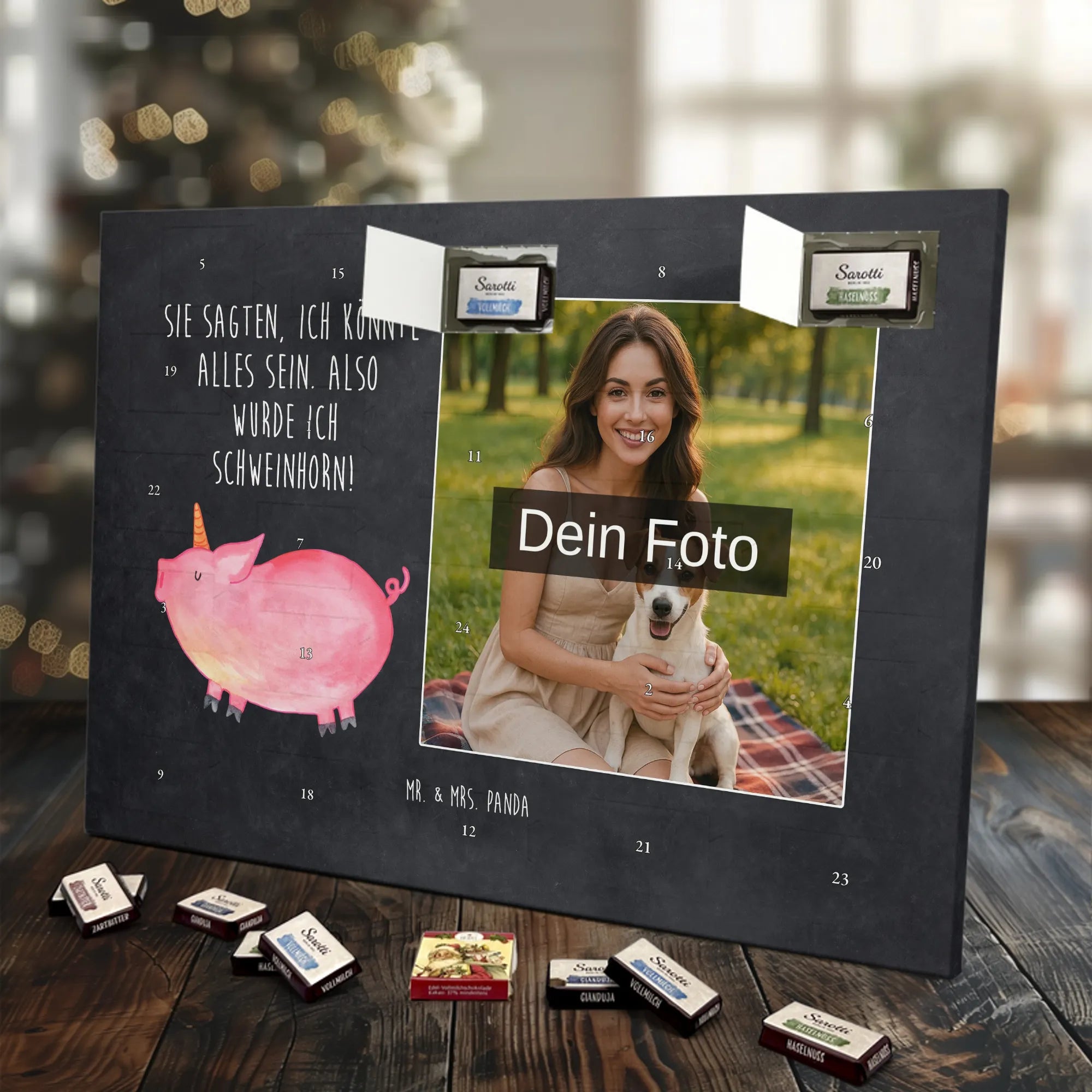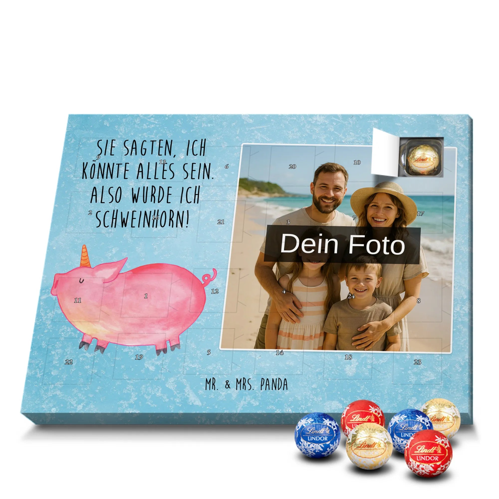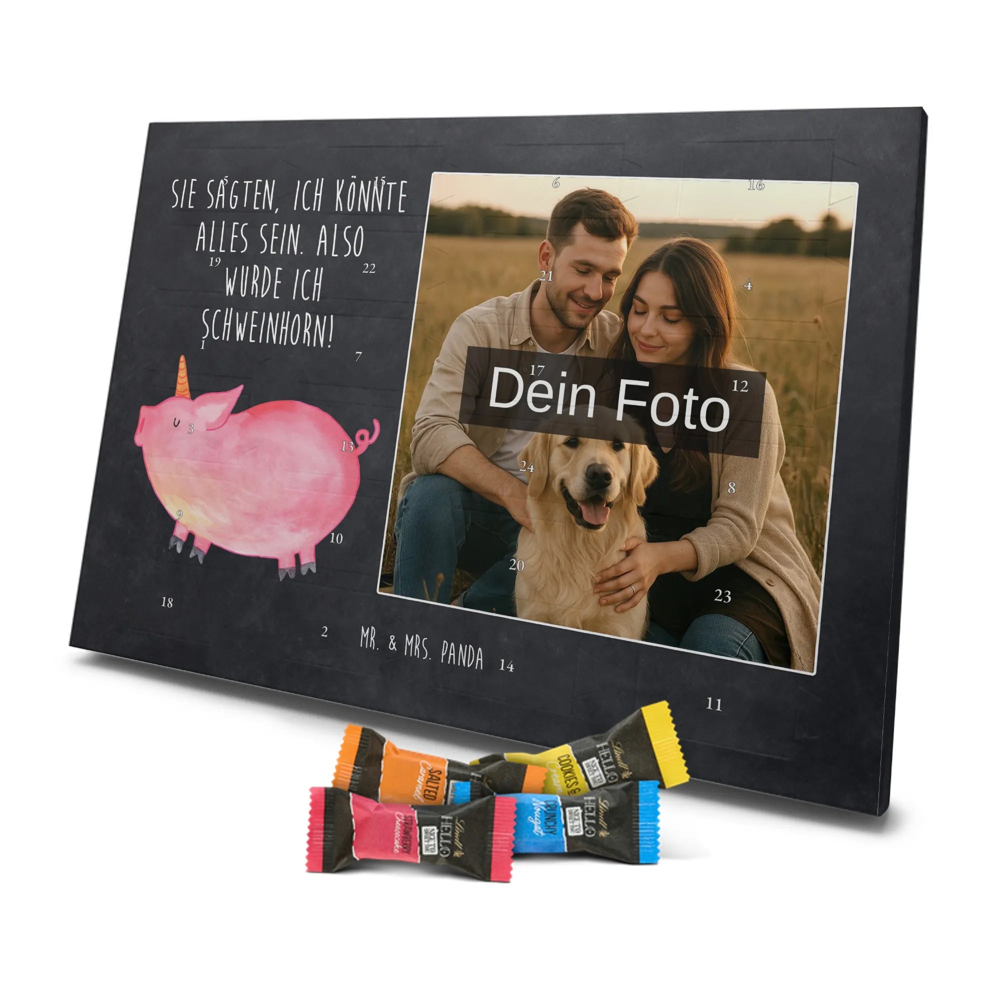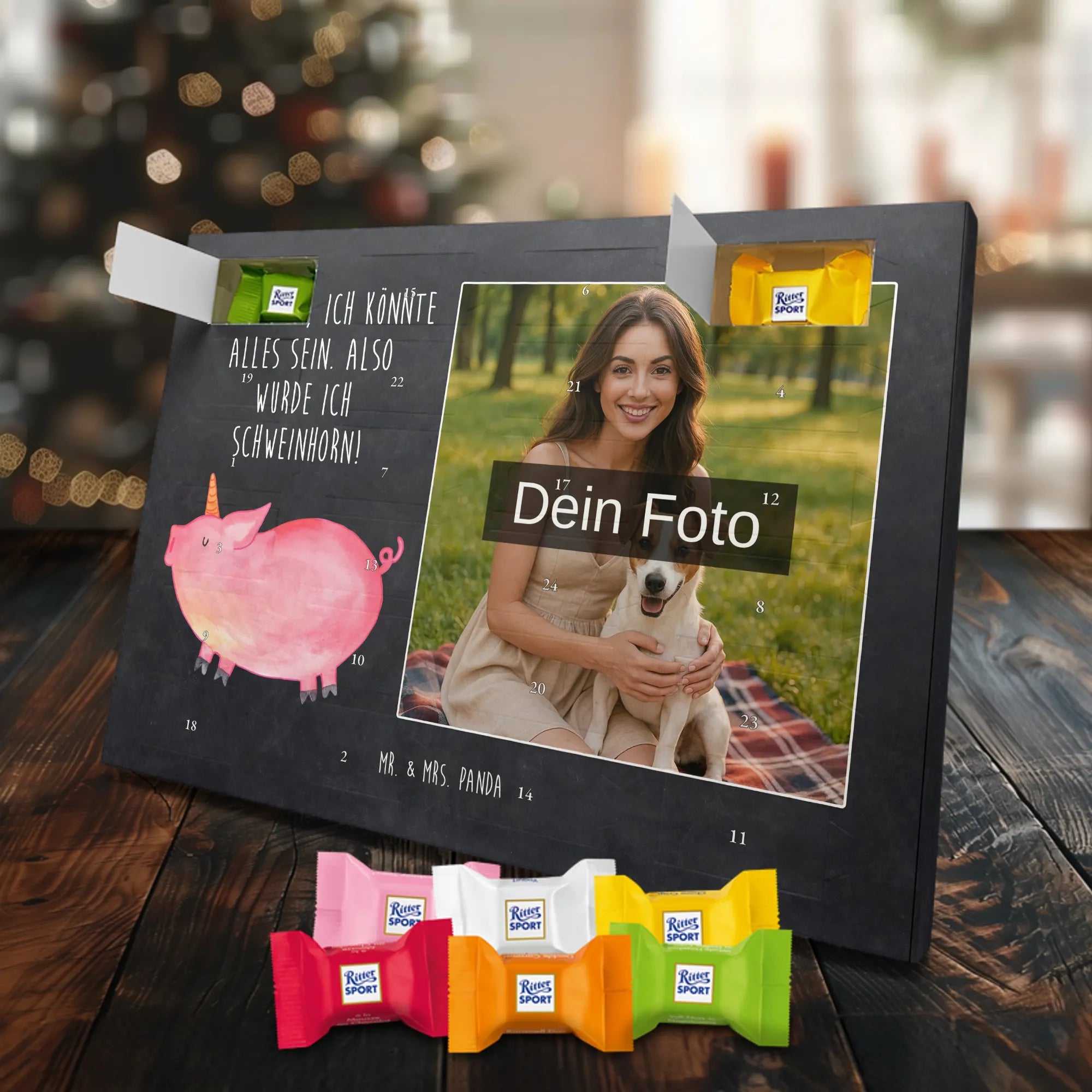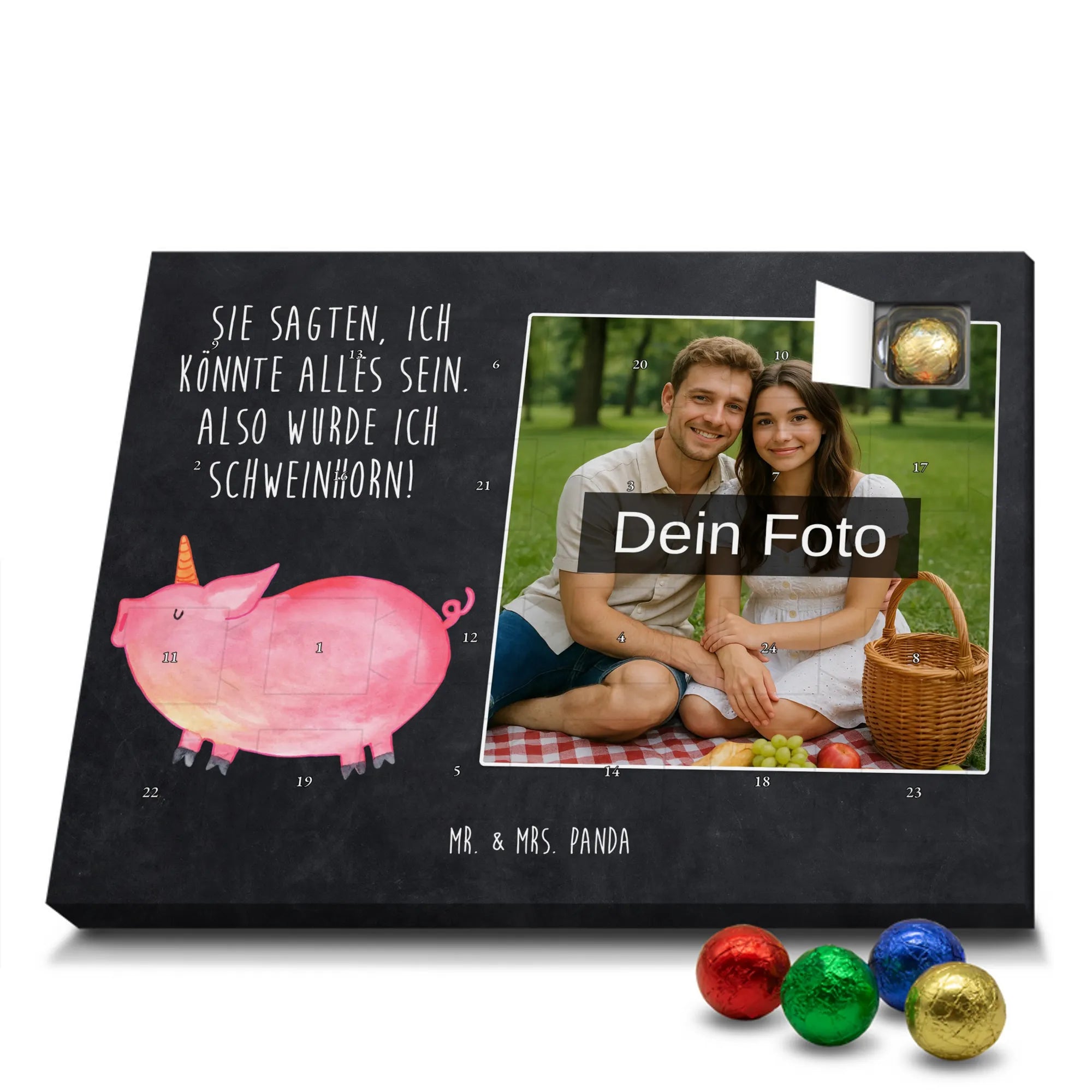 Personalisierter Schoko Foto Adventskalender Einhorn Schwein - Classic - Eisblau