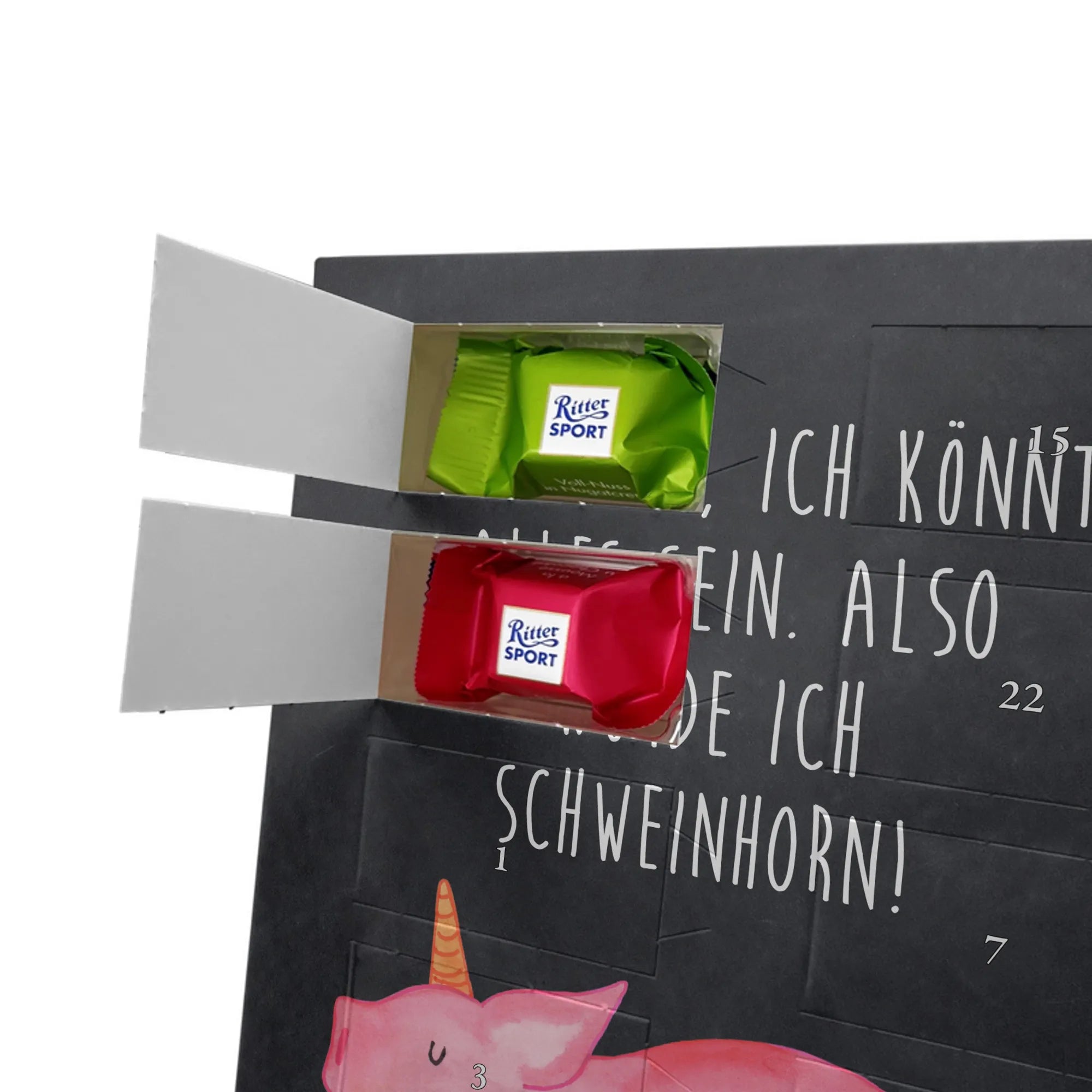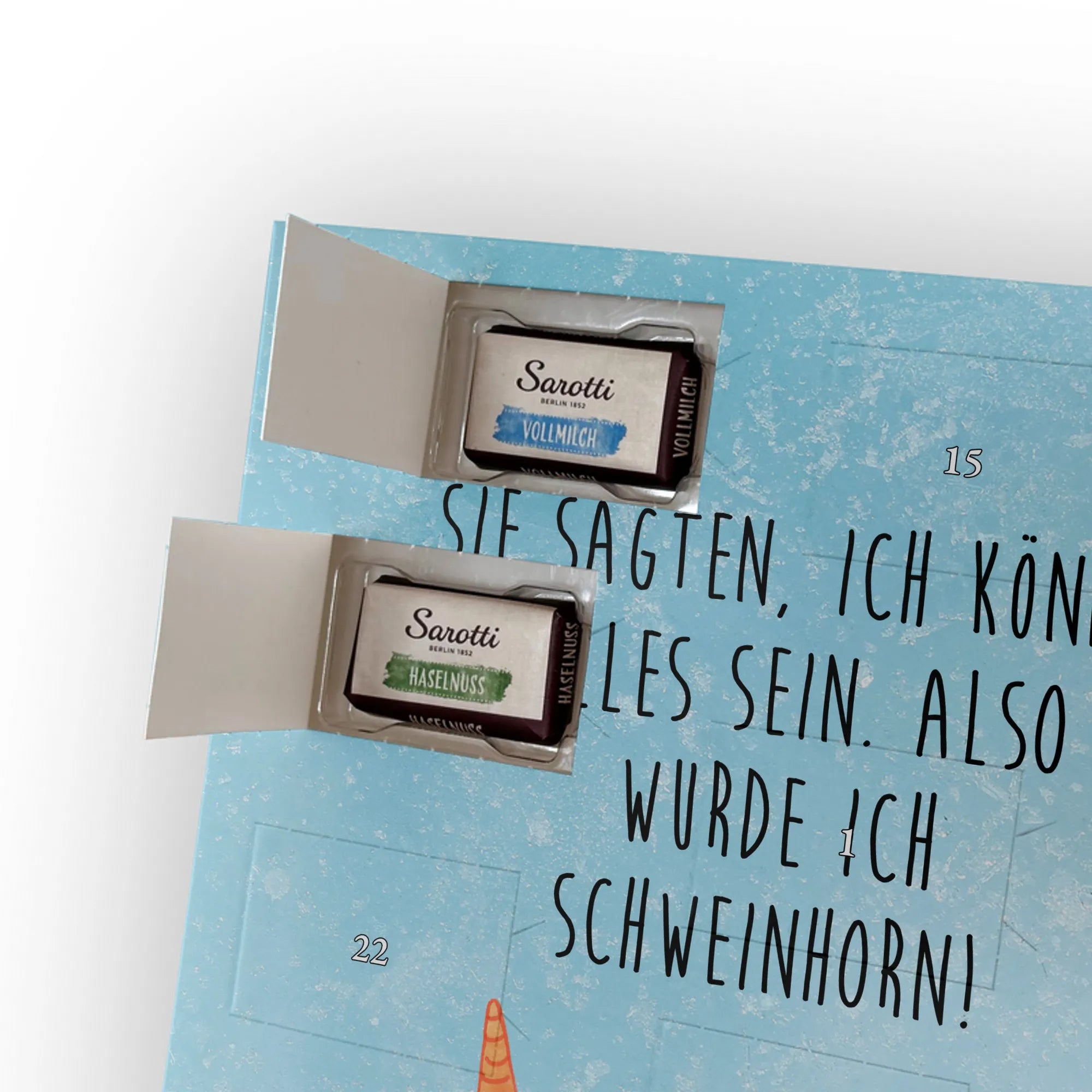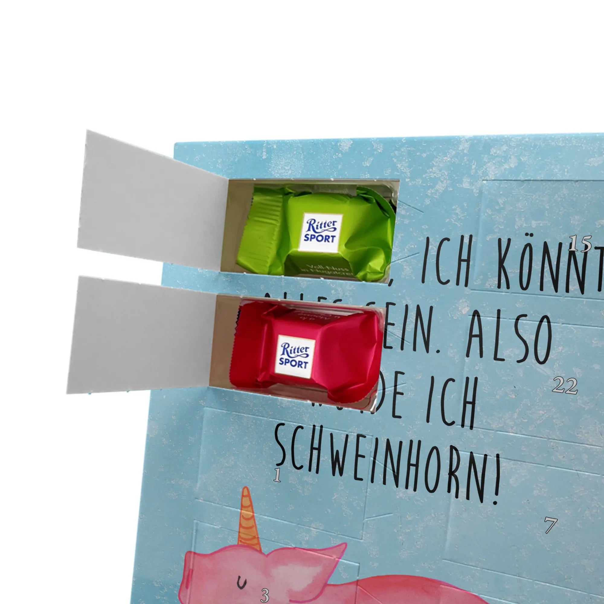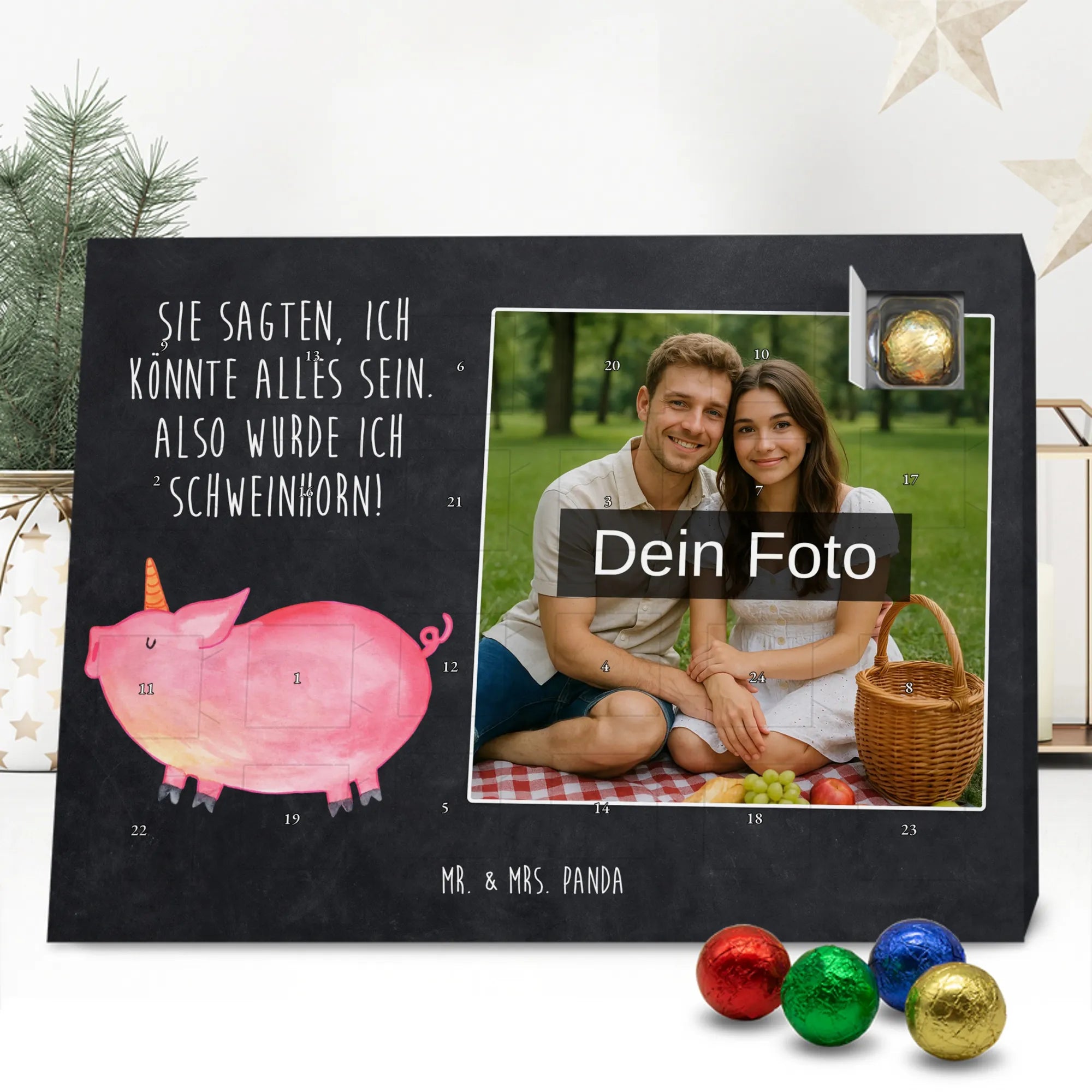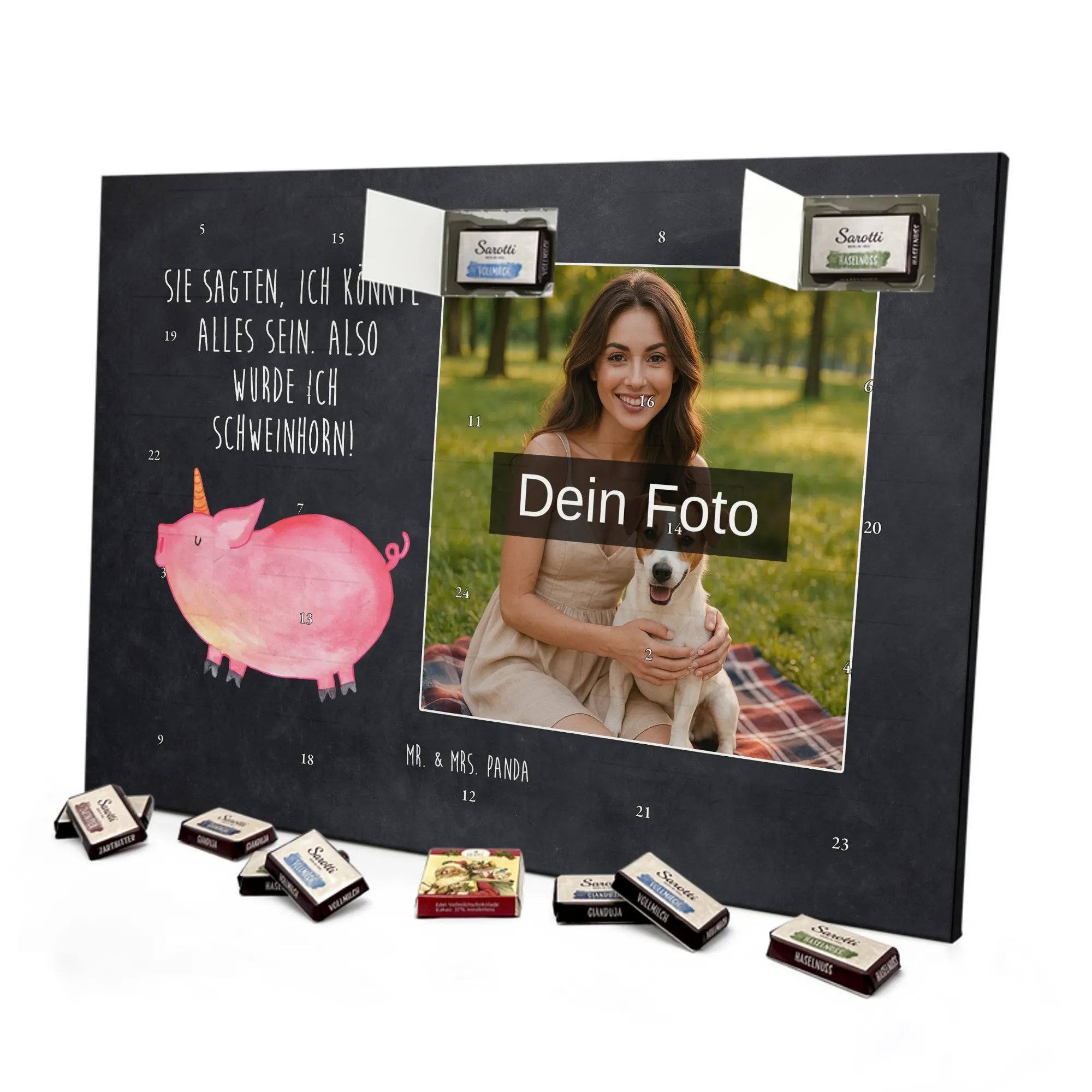 Personalisierter Schoko Foto Adventskalender Einhorn Schwein - Classic - Eisblau