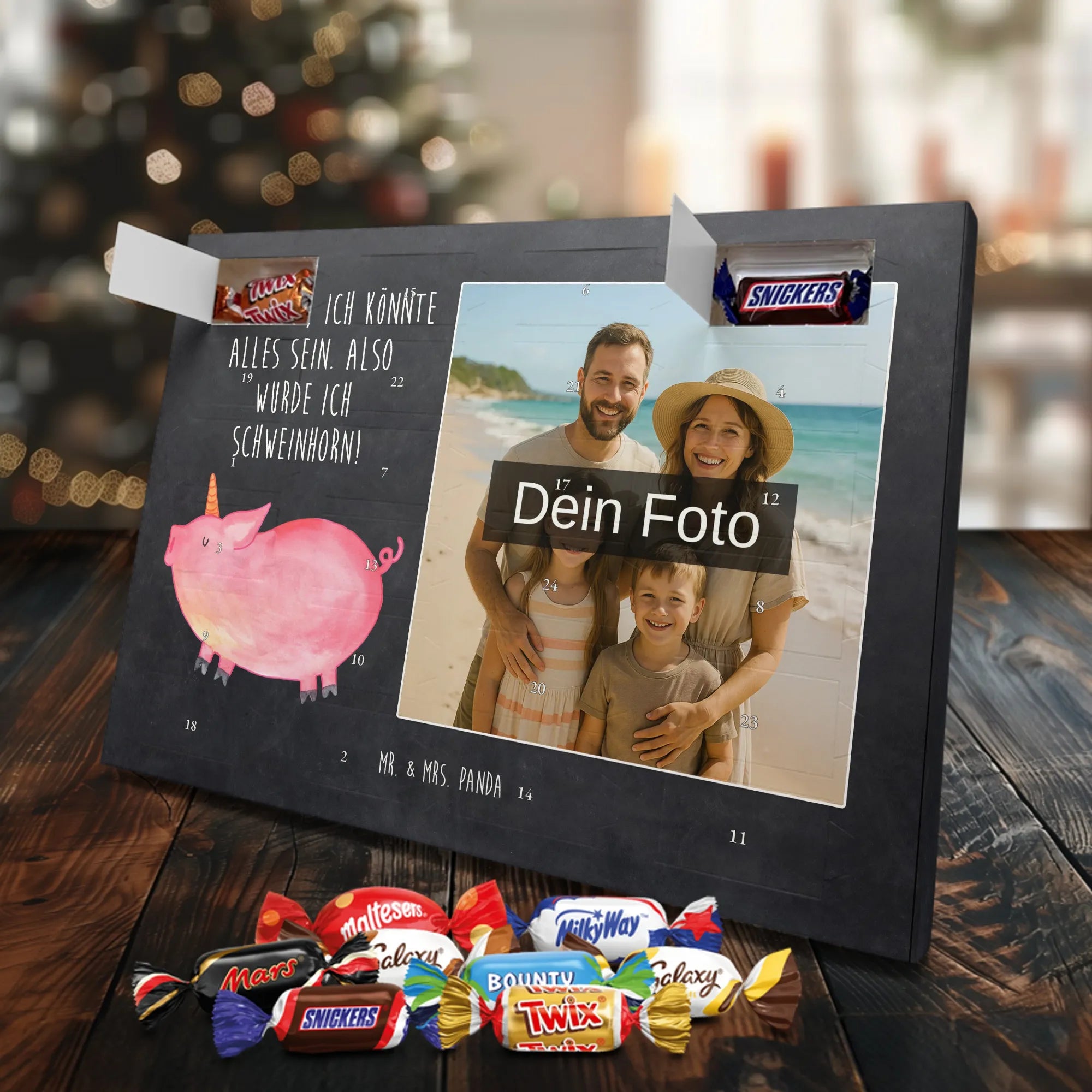🐼 FOTO ADVENTSKALENDER: Persönlicher Adventskalender mit deinem Foto und süßer MARKENNAMEN Schokolade-Füllung.