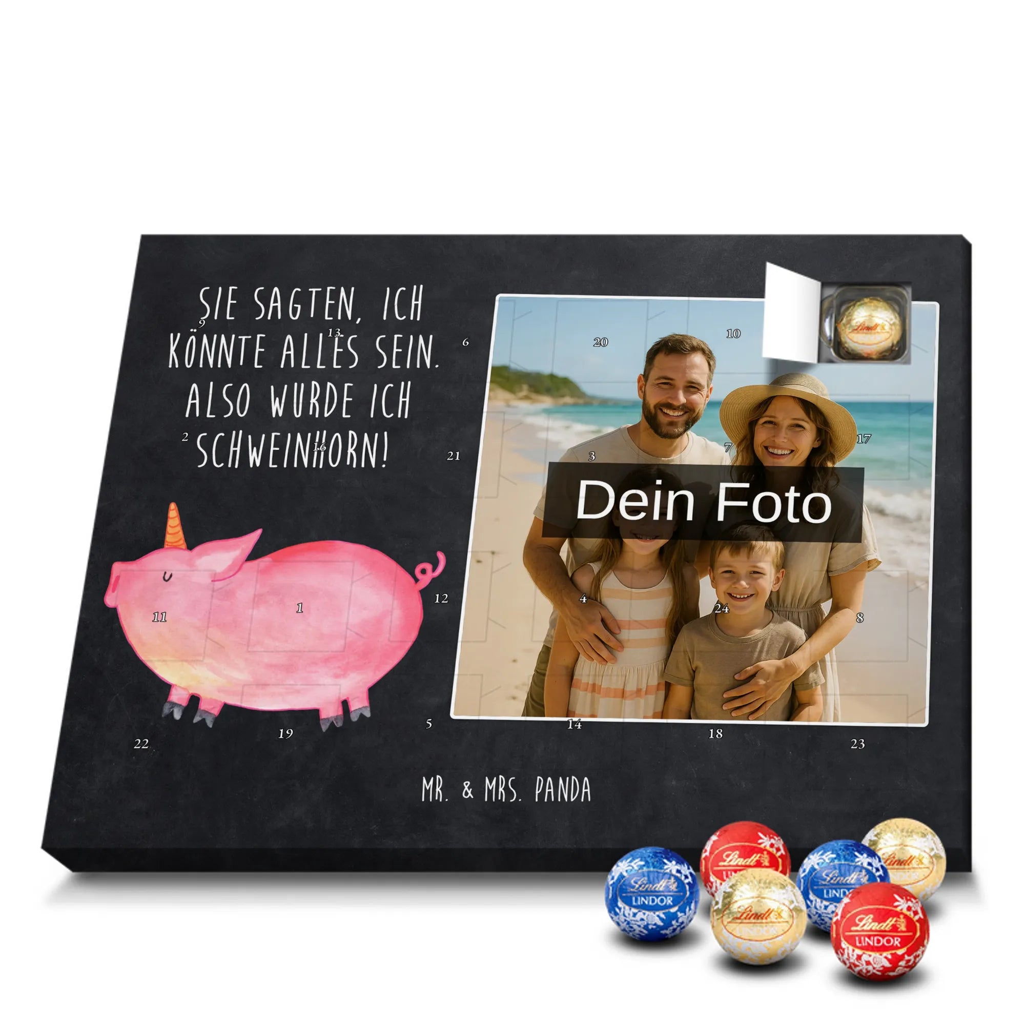 Mach die Adventszeit persönlich mit unserem Personalisiertes Schoko Foto-Adventskalender von Mr. & Mrs. Panda. Dieser Kalender kombiniert dein Lieblingsfoto mit unseren fröhlichen Illustrationen und liebevollen Sprüchen – perfekt als Geschenk für Partner, Familie oder Freunde. Für ein optimales Druckergebnis bitte ein hochauflösendes Bild verwenden und den Bildausschnitt so wählen, dass wichtige Details nicht verloren gehen. Beachte, dass wir Fotos nicht nachbearbeiten oder zuschneiden; lade nur Bilder hoch, für die du die Rechte besitzt. Die hochwertige Verarbeitung beinhaltet eine seidenmatte Oberflächenveredelung und bedruckte Seitenflächen, außerdem ist der Kalender robust und kann aufgehängt oder aufgestellt werden. Maße: 233 mm x 178 mm x 24 mm. Gefüllt mit Lindt Lindor Markenschokolade: 24 einzeln verpackte Kugeln in den Sorten Vollmilch, Feinherb und Weiße Schokolade. Inhaltsstoffe und Allergene sind angegeben; es kann Haselnüsse und Mandeln enthalten. Hinweis: Personalisierte Foto-Artikel sind vom Umtausch ausgeschlossen. Ein süßer, persönlicher Adventsgruß von Mr. & Mrs. Panda.