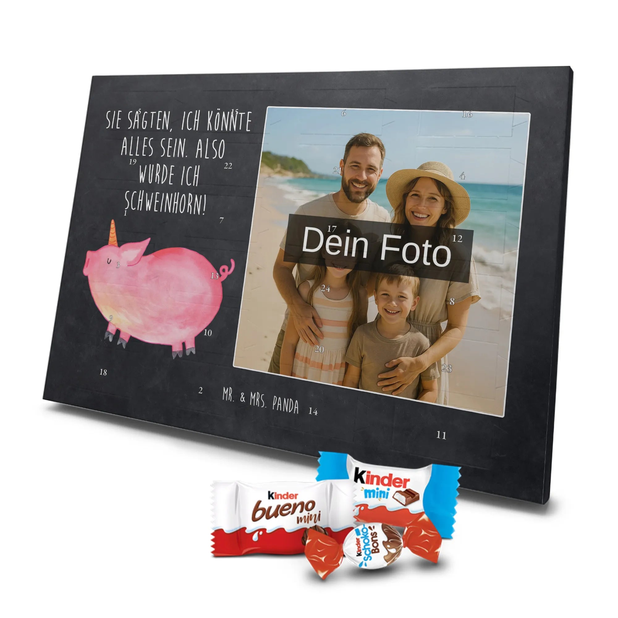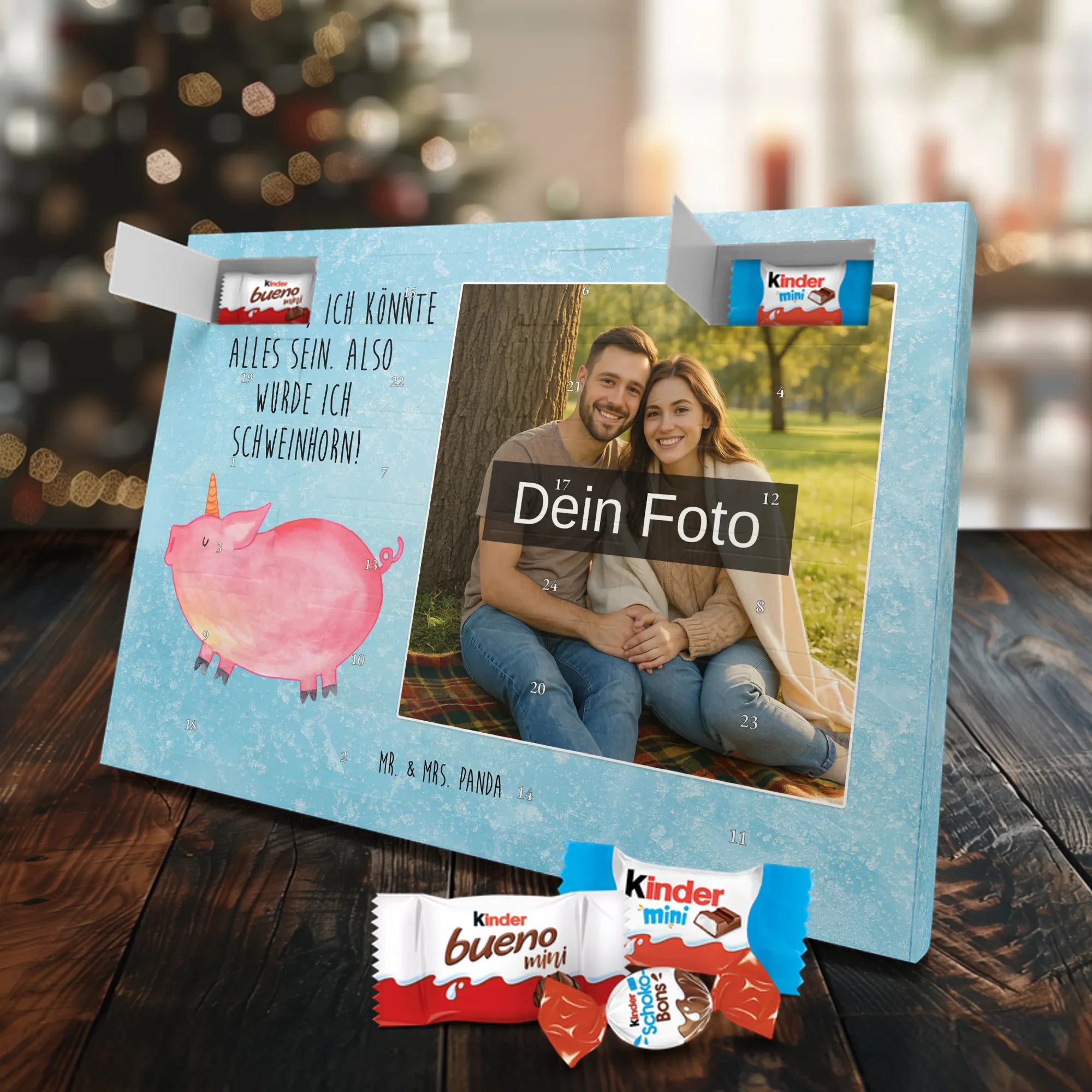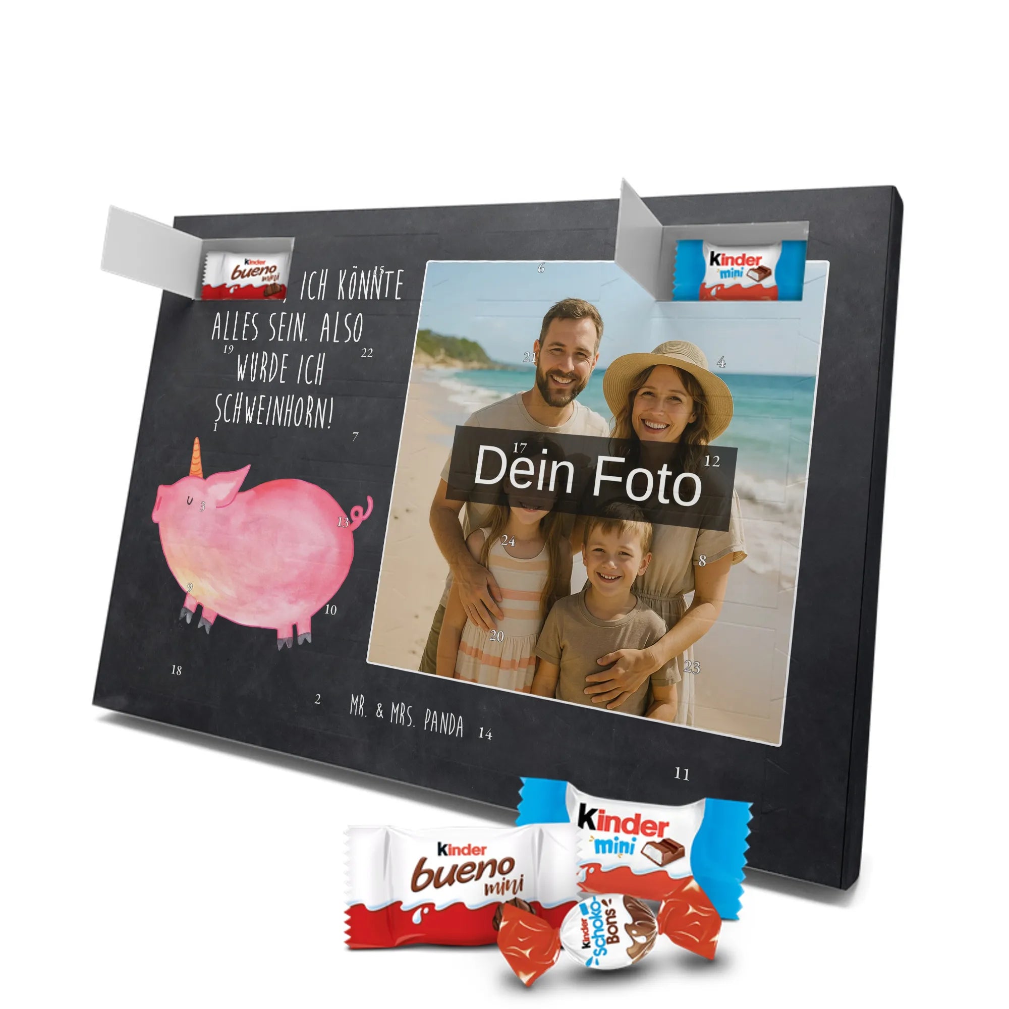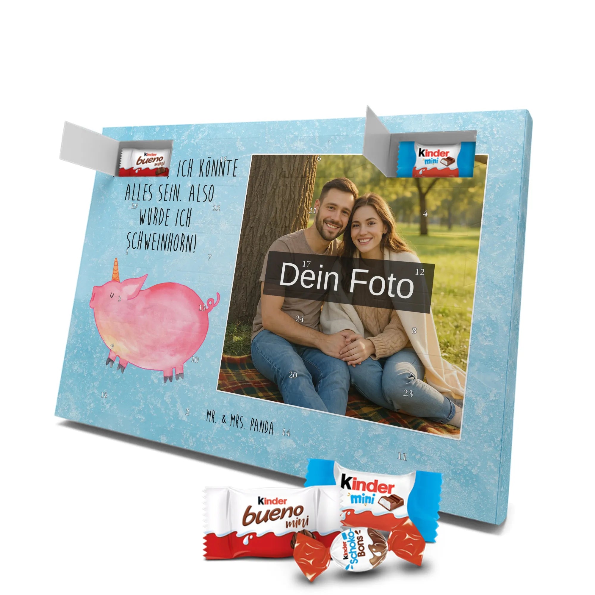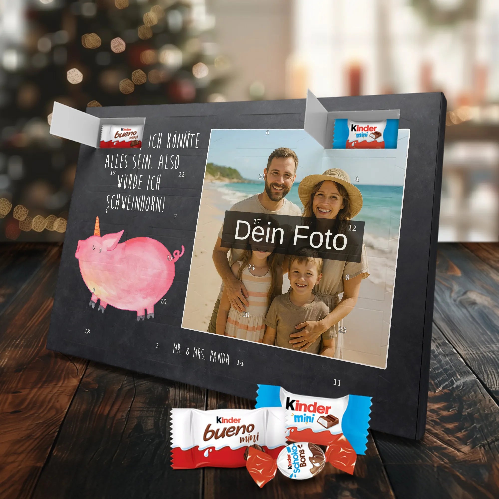 🐼 Personalisierter Foto Adventskalender mit Mr. & Mrs. Panda Motiven und 24 Schoko-Überraschungen von kinder®.