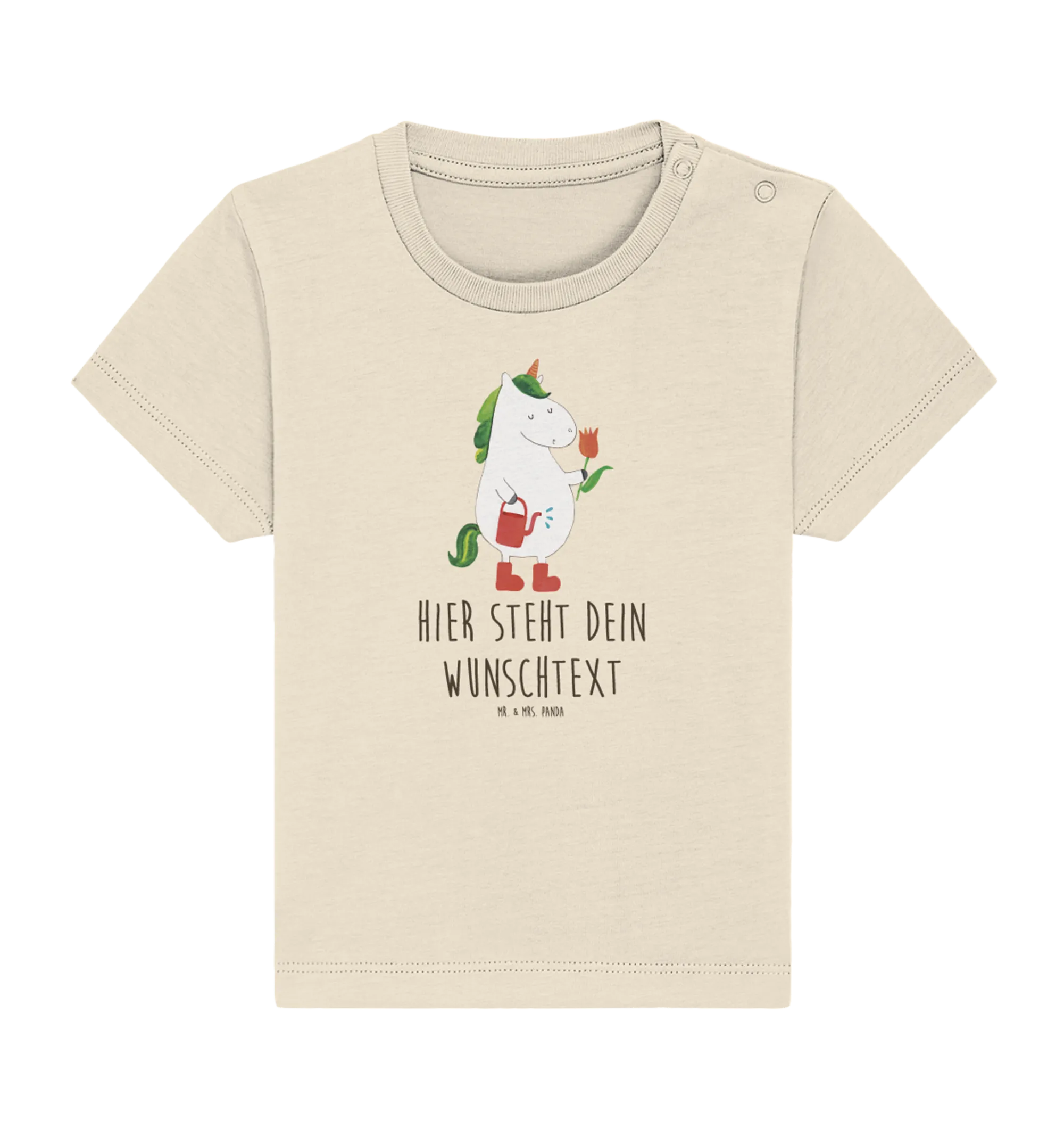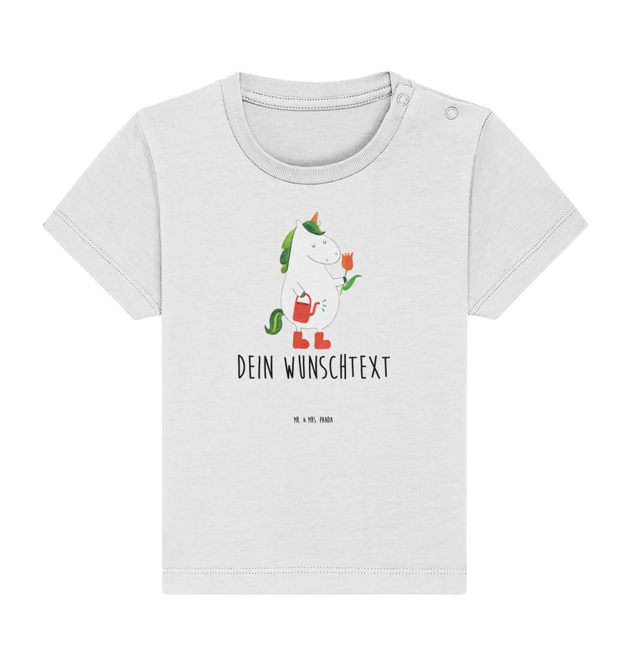 Das personalisierte Baby T-Shirt mit dem niedlichen Einhorn Gärtner Motiv aus unserer Einhorn - Kollektion ist das perfekte Geschenk für frischgebackene Eltern oder als süße Überraschung für das eigene Baby. Es verbindet Funktionalität mit einem liebevollen Design, das jedes Kind erfreuen wird. Das Einhorn, das fröhlich im Garten Blumen gießt, bringt Lebensfreude und Freude in den Alltag.