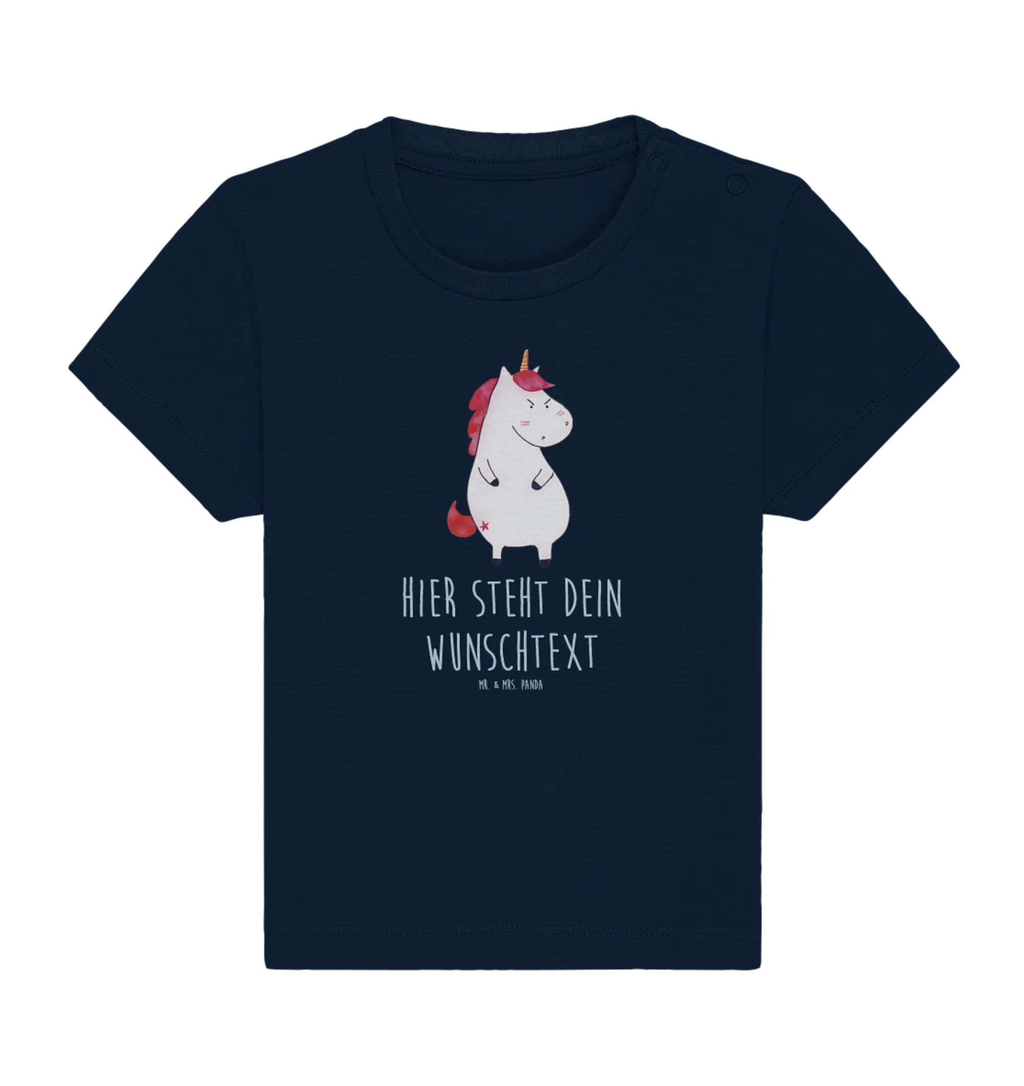 Entdecke das perfekte personalisierte Baby T-Shirt mit dem wütenden Einhorn-Motiv aus der Einhorn-Kollektion! Dieses süße T-Shirt ist nicht nur ein Hingucker, sondern auch eine lustige Ansage für alle kleinen Einhorn-Fans. In einem zauberhaften French Navy Farbton heben sich die liebevoll handgezeichneten Motive wunderbar ab und bringen die tollste Einhorn-Welt direkt zu deinem kleinen Liebling.