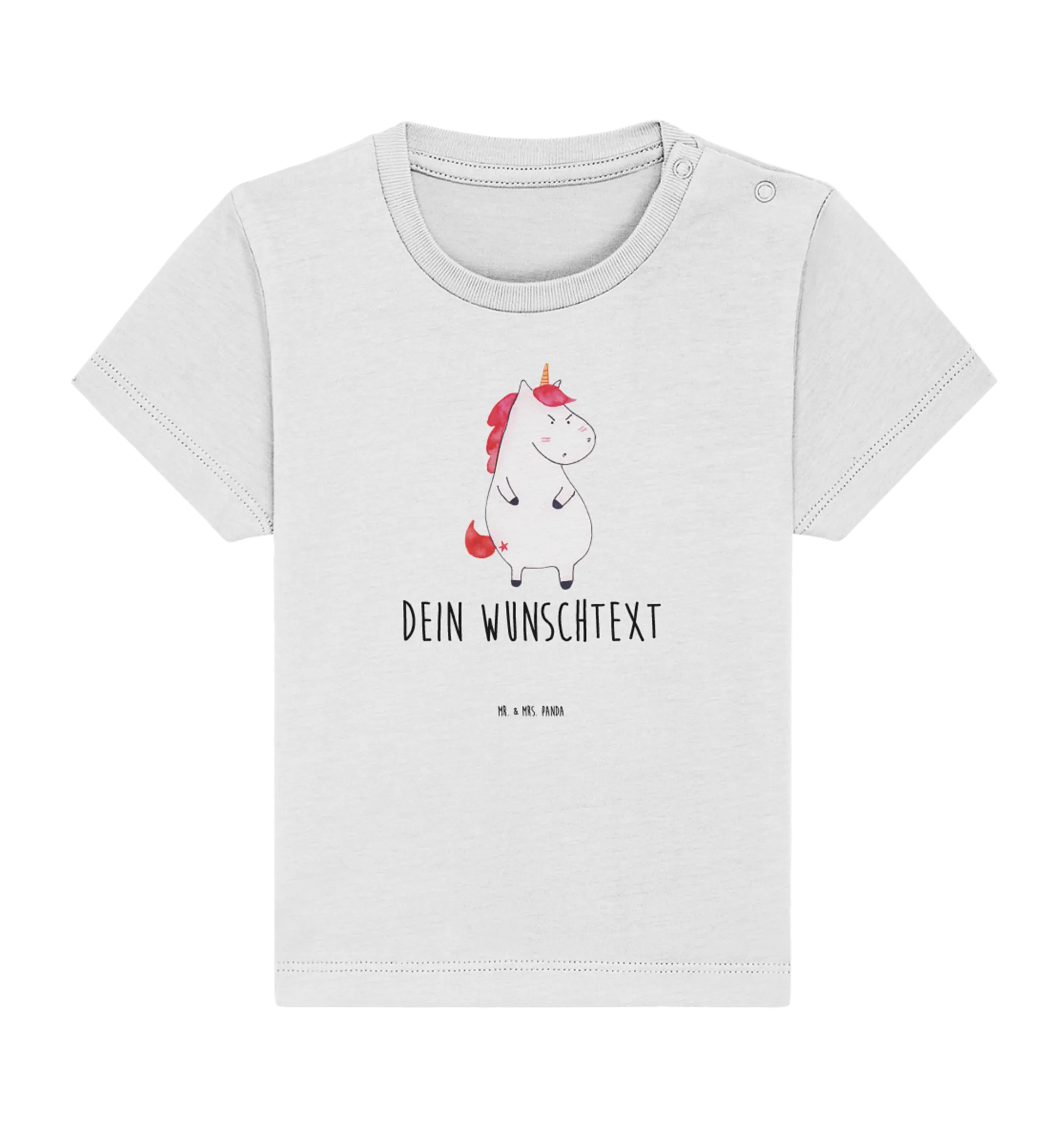 Dabei ist das T-Shirt nicht nur ein schöner modebewusster Ausdruck, sondern auch eine süße Erinnerung an die unbeschwerte Kindheit. Verschenke Lächeln und Freude – mit dem personalisierten Baby T-Shirt "Einhorn wütend" aus der Einhorn-Kollektion von Mr. & Mrs. Panda! Es ist mehr als nur ein Kleidungsstück; es ist ein Ausdruck von Liebe und Humor!