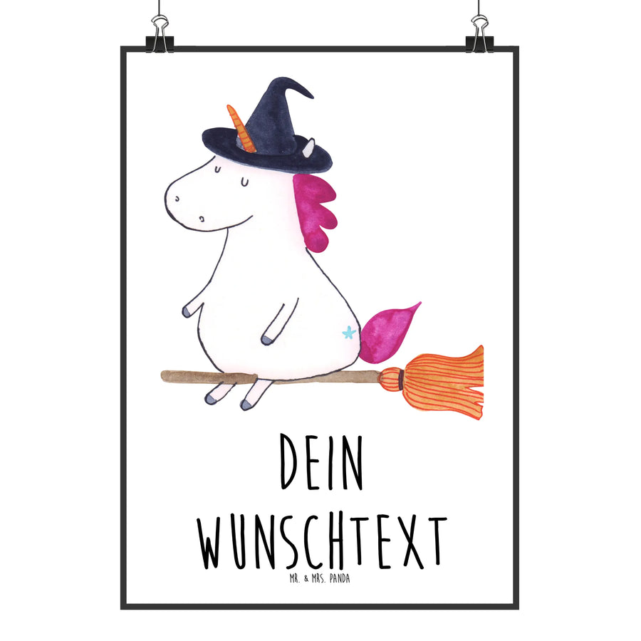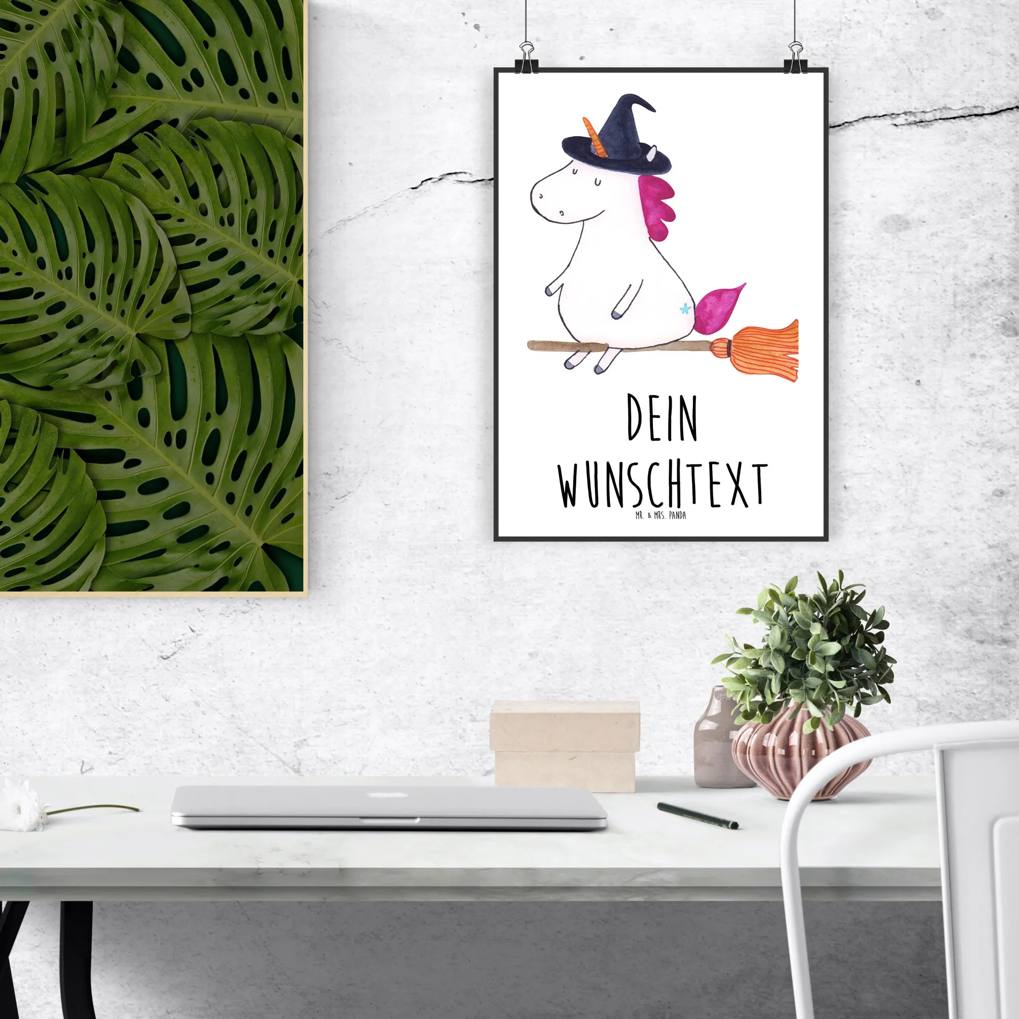 Du bist auf der Suche nach einem ganz besonderen Geschenk für eine Freundin oder Schwester, die das Außergewöhnliche liebt? Dann ist das personalisierte Poster mit einem Einhorn-Hexe-Motiv aus der Einhorn-Kollektion von Mr. & Mrs. Panda genau das Richtige! Das süße Einhorn, das auf einem Besen reitet und einen Hexenhut trägt, ist das perfekte Symbol für all die verrückten, einzigartigen und bunten Persönlichkeiten da draußen. Ideal für jeden Raum – ob Kinderzimmer, Schlafzimmer oder das kleine Heimkino – dieses Poster bringt Farbe und Freude in jeden Raum.
