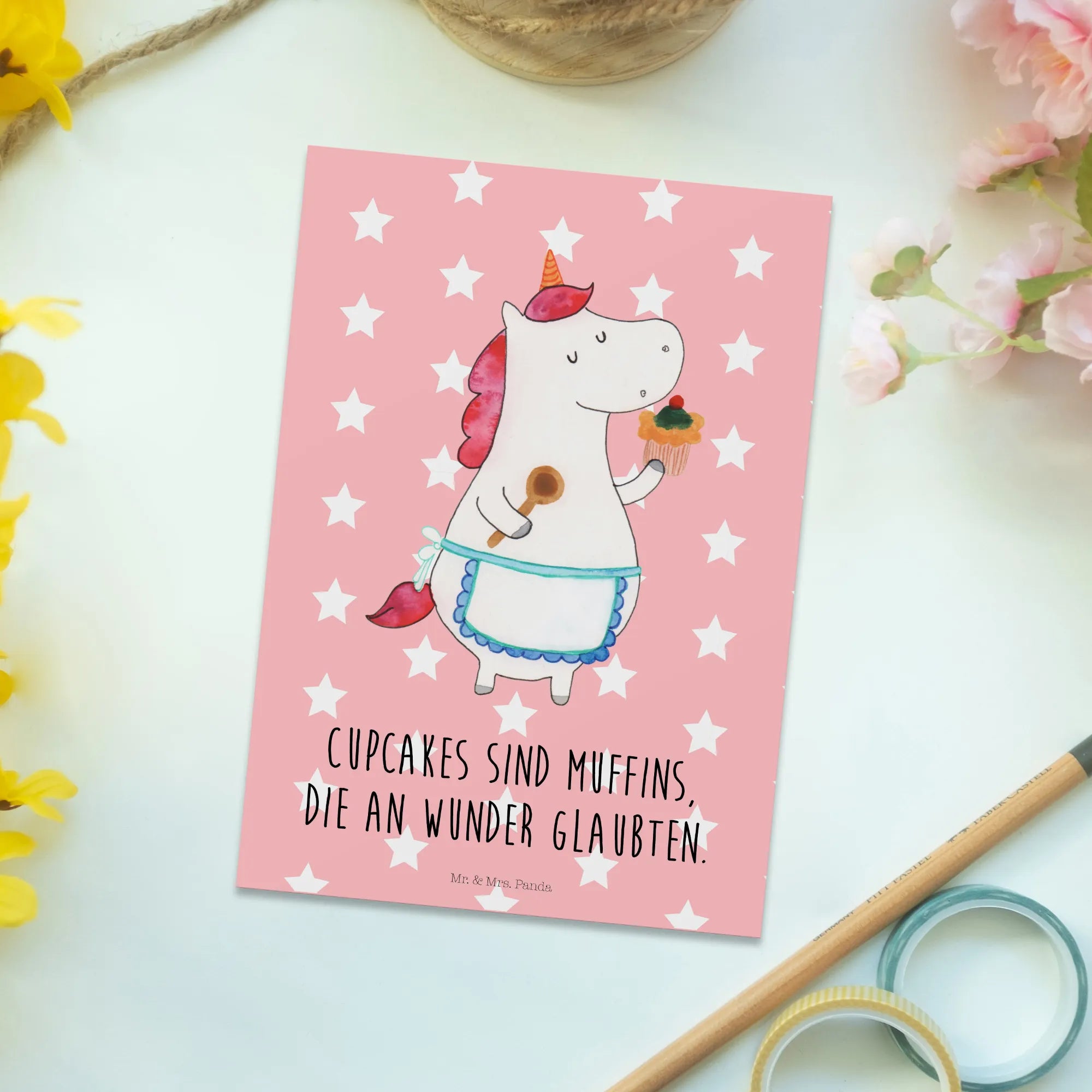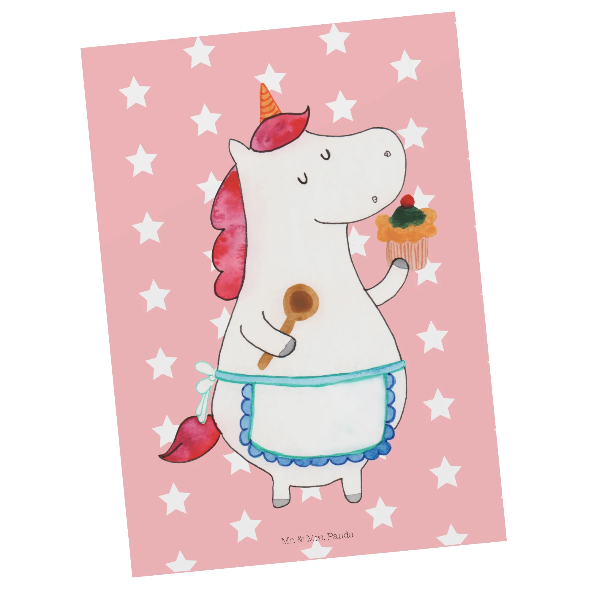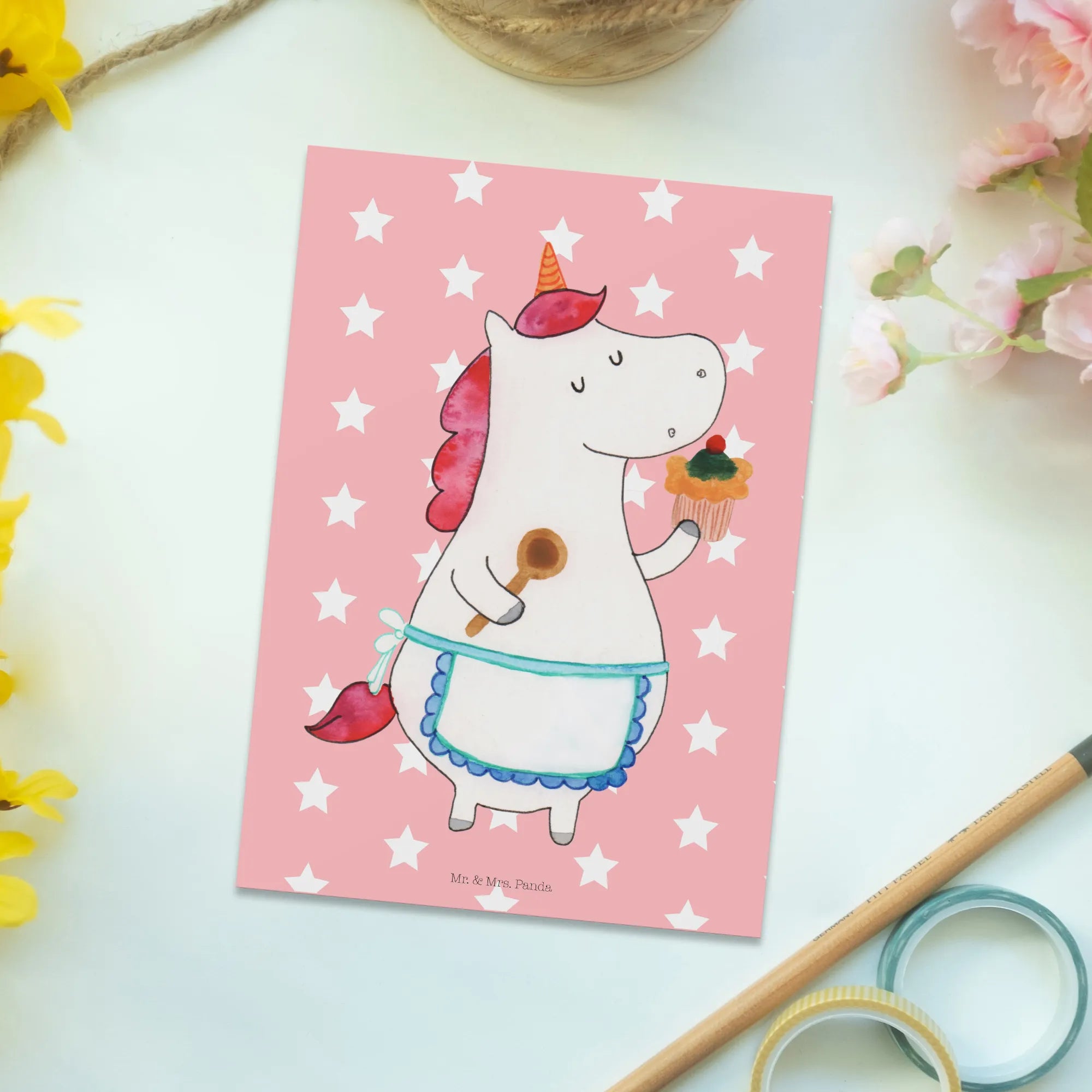 Postkarte Einhorn Küche - mit Spruch - Rot Pastell