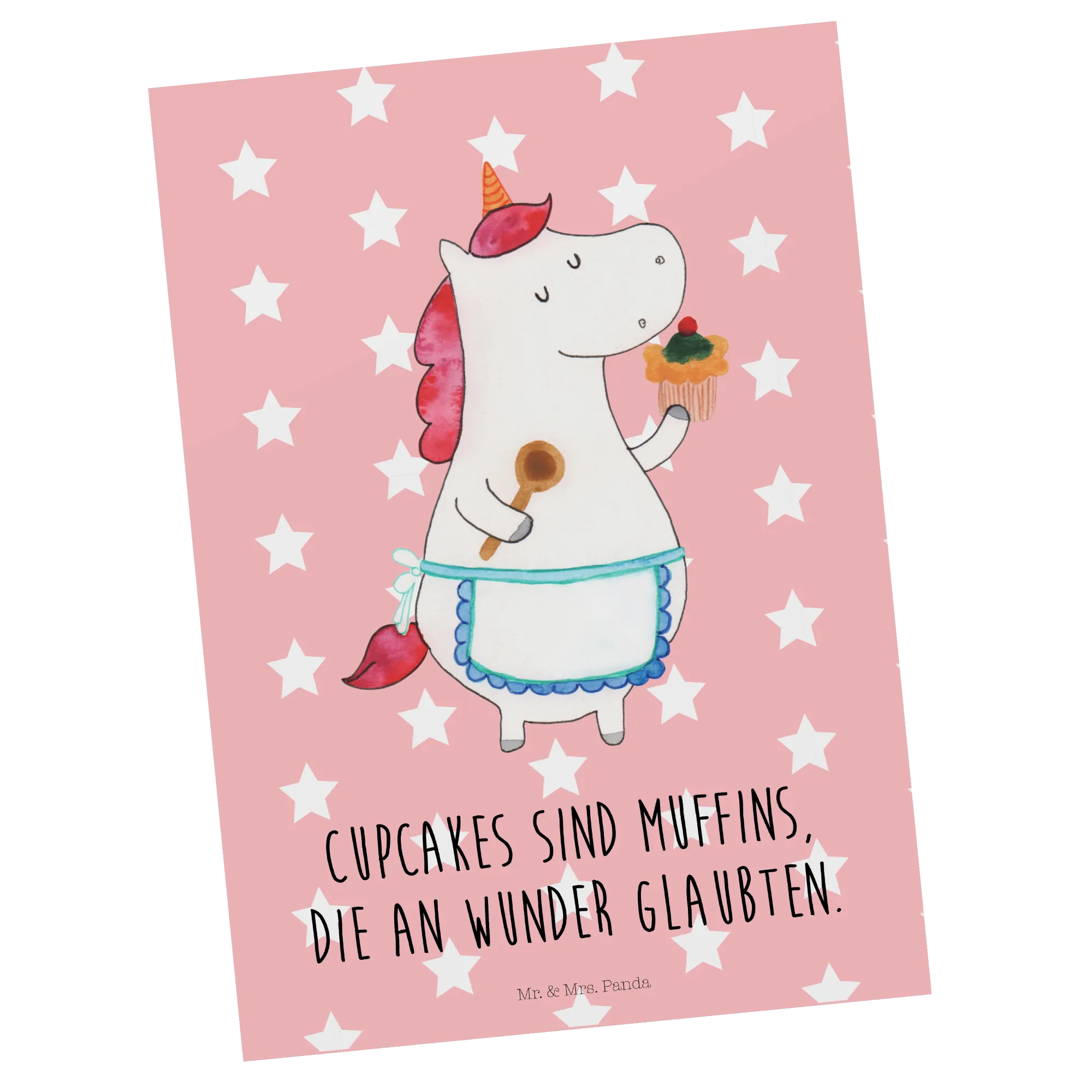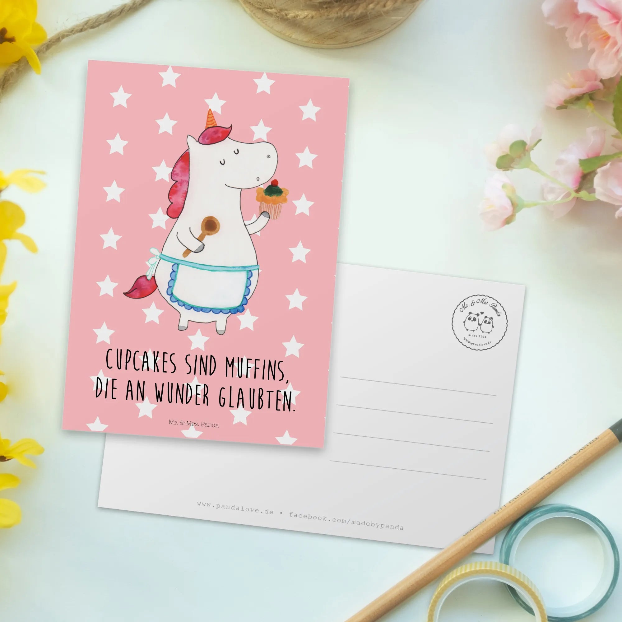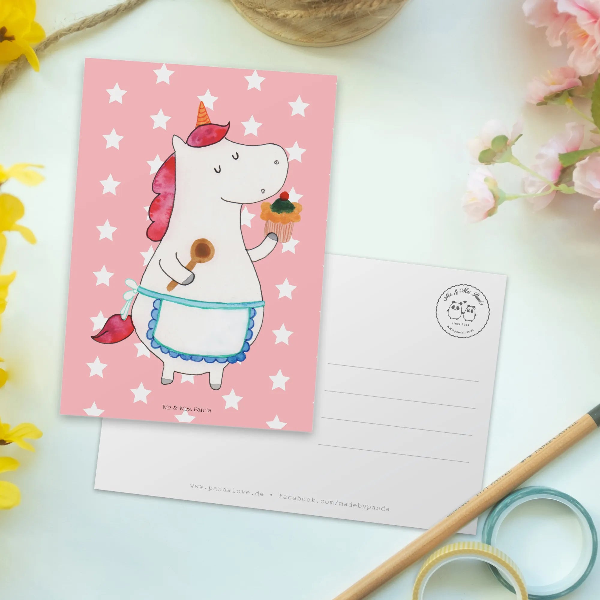 Postkarte Einhorn Küche - mit Spruch - Rot Pastell