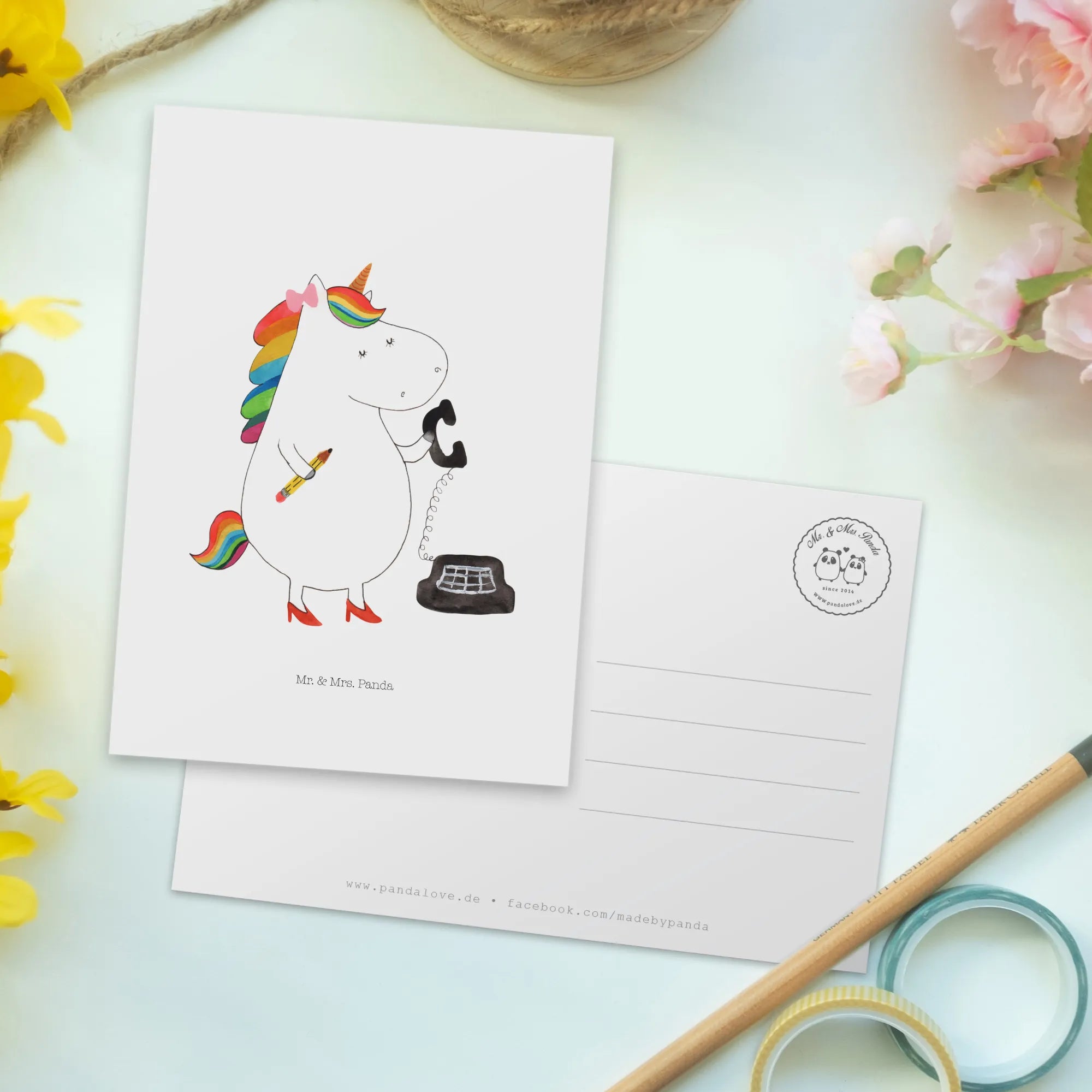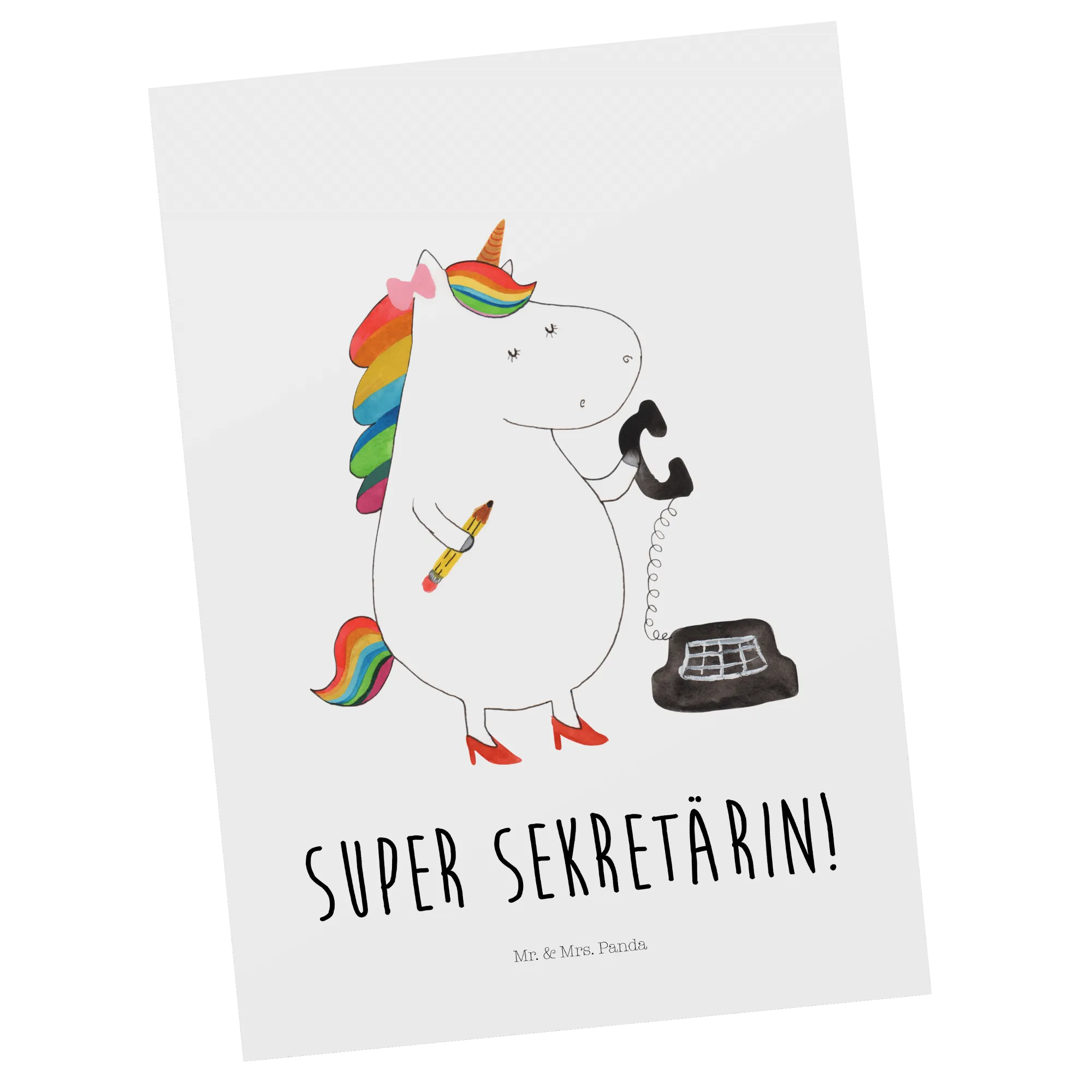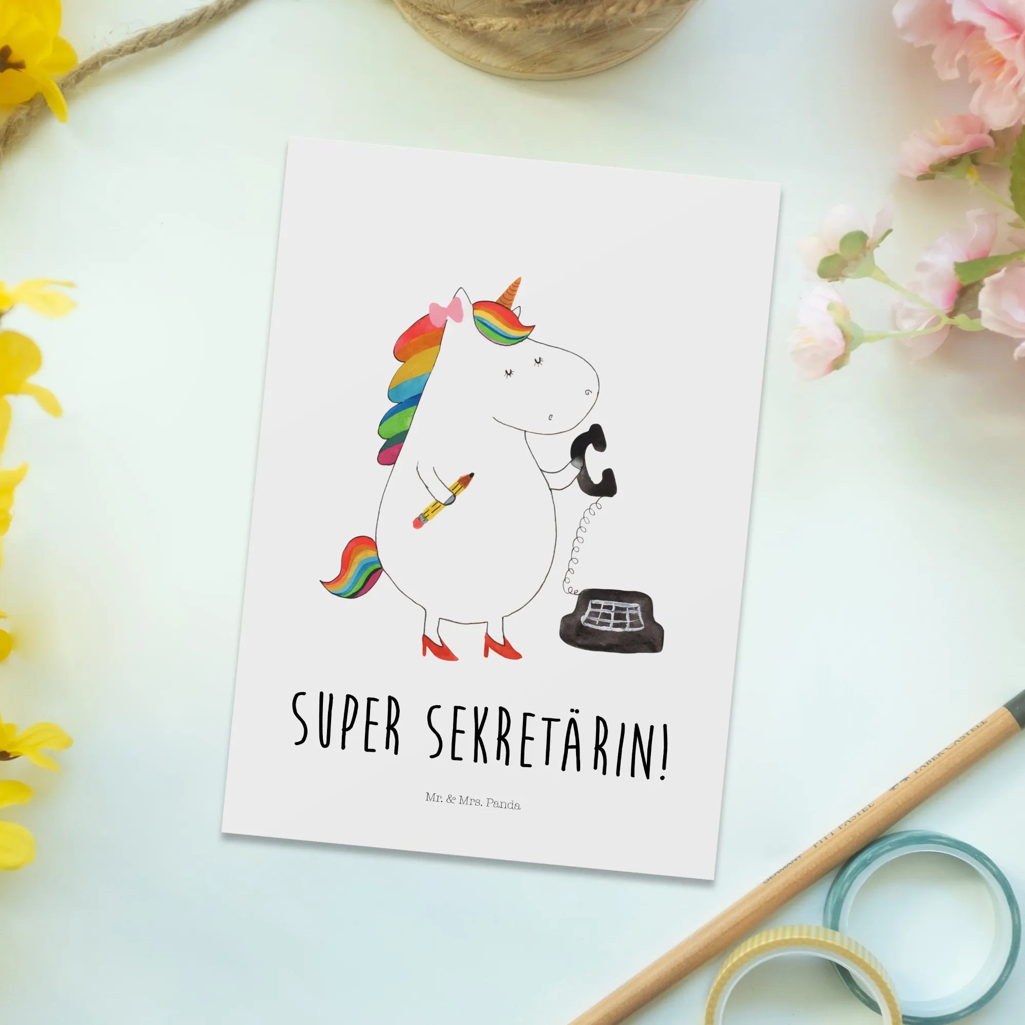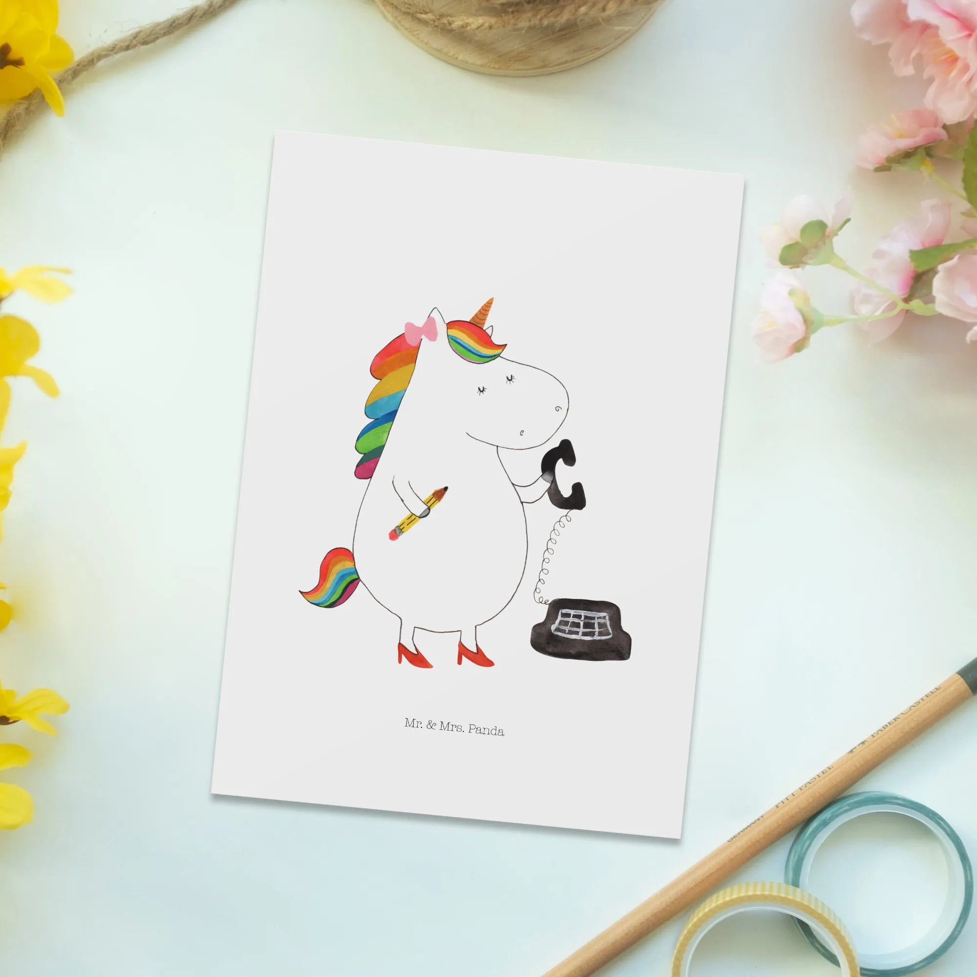 Postkarte Einhorn Sekretärin - mit Spruch - Weiß