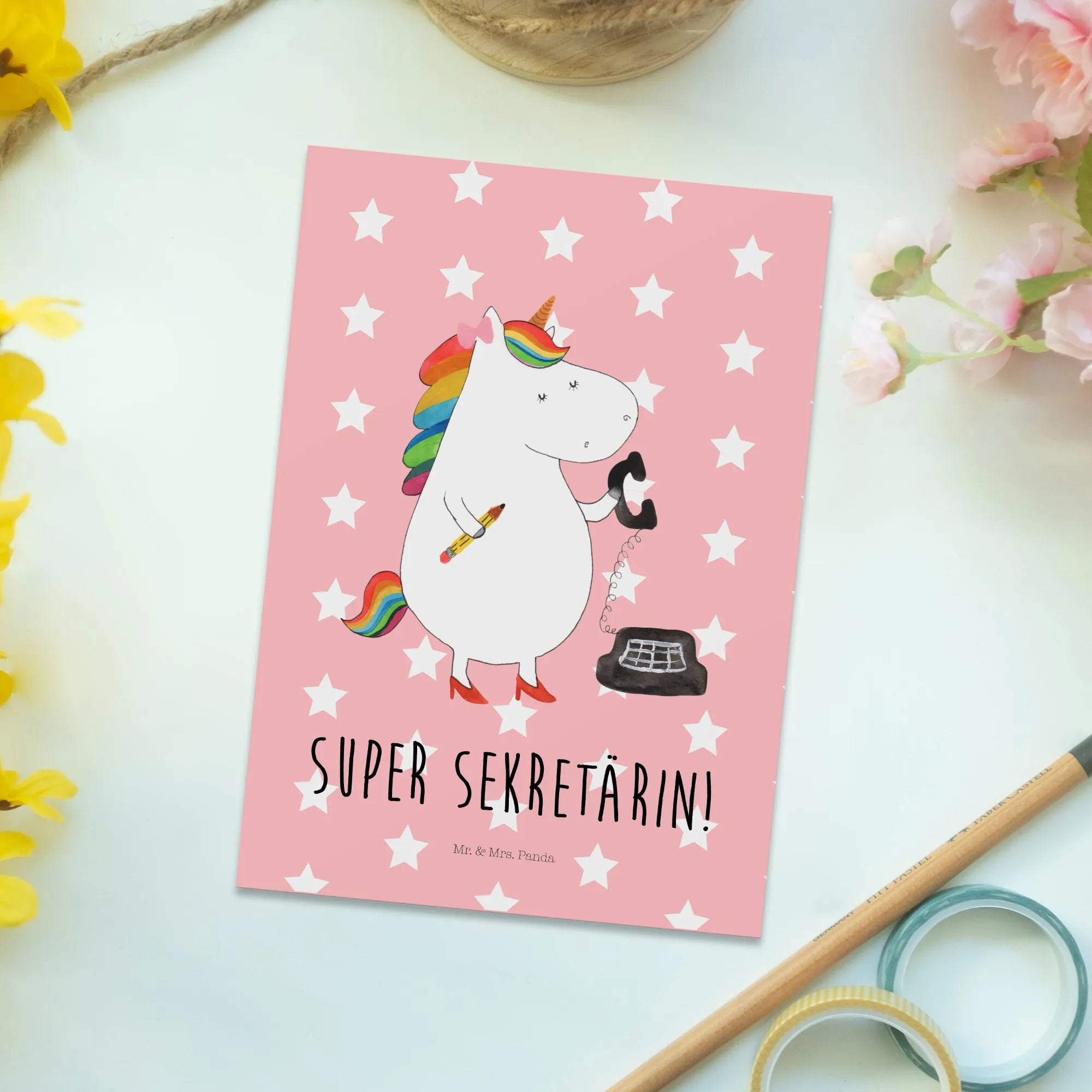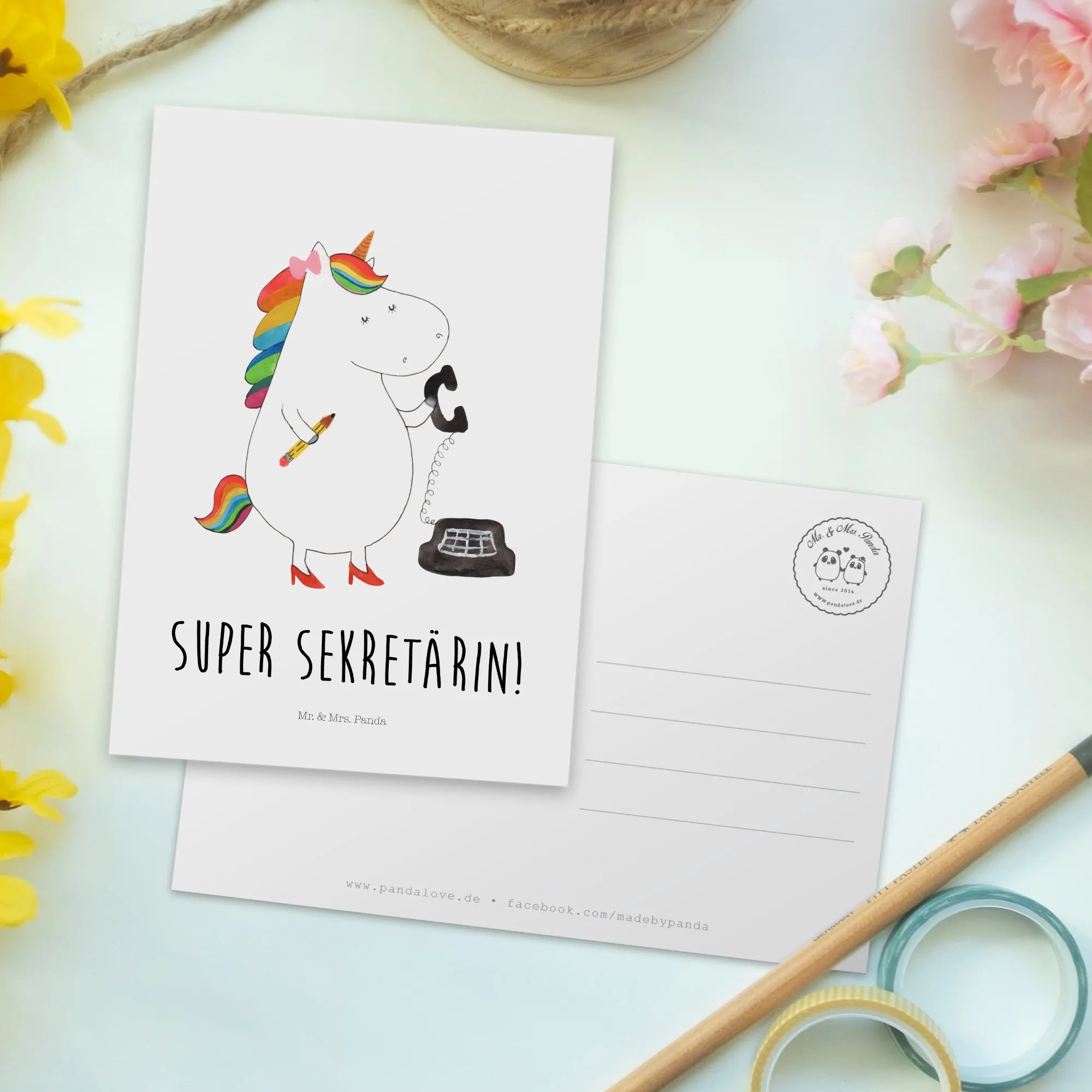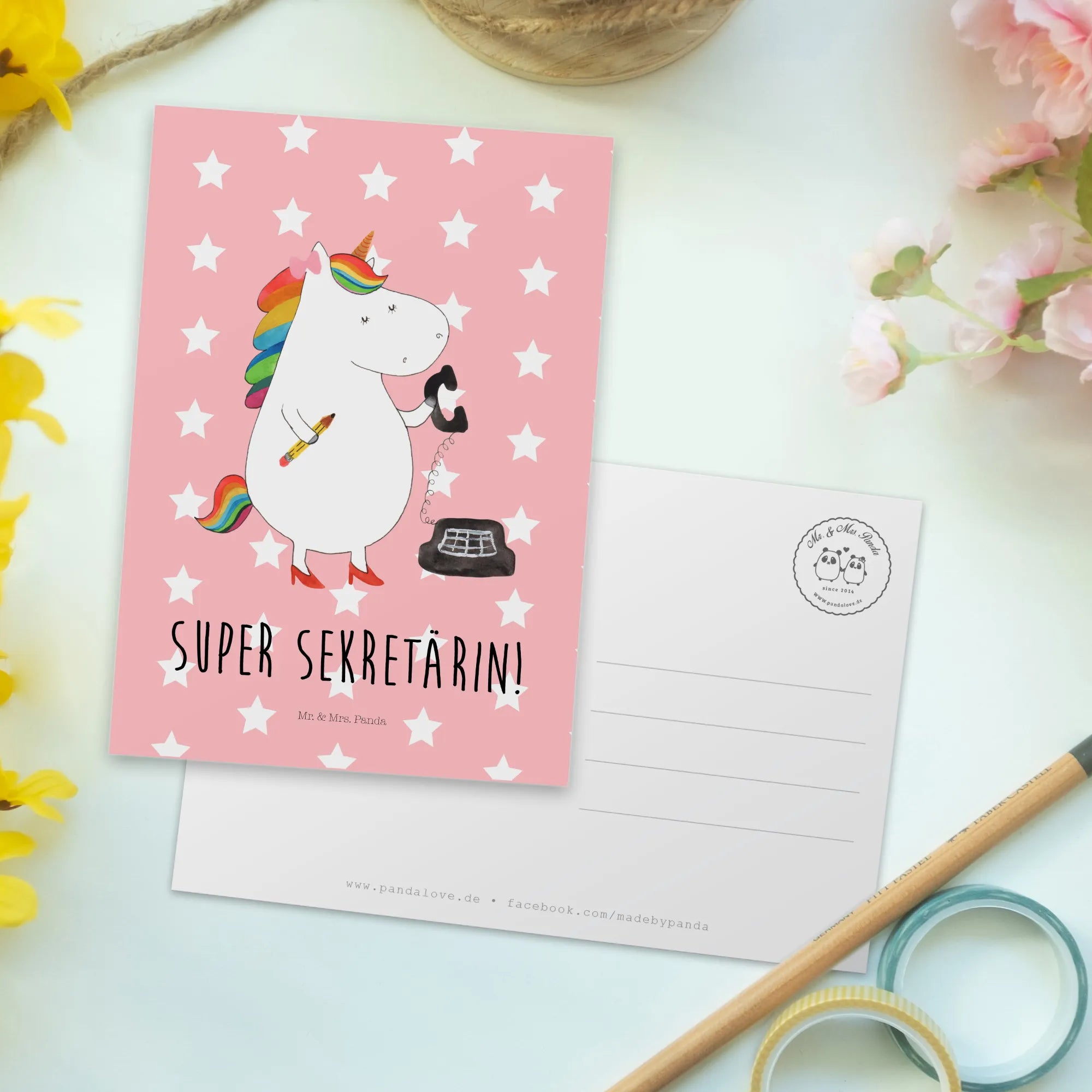 Die Postkarte "Super Sekretärin!" aus der bezaubernden Einhorn-Kollektion von Mr. & Mrs. Panda ist das perfekte Geschenk für jeden Anlass. Egal, ob du deiner Sekretärin eine kleine Freude machen, Kollegen zum Geburtstag gratulieren oder einfach nur jemandem danken möchtest – diese Karte wird sicher Herzen erfreuen!