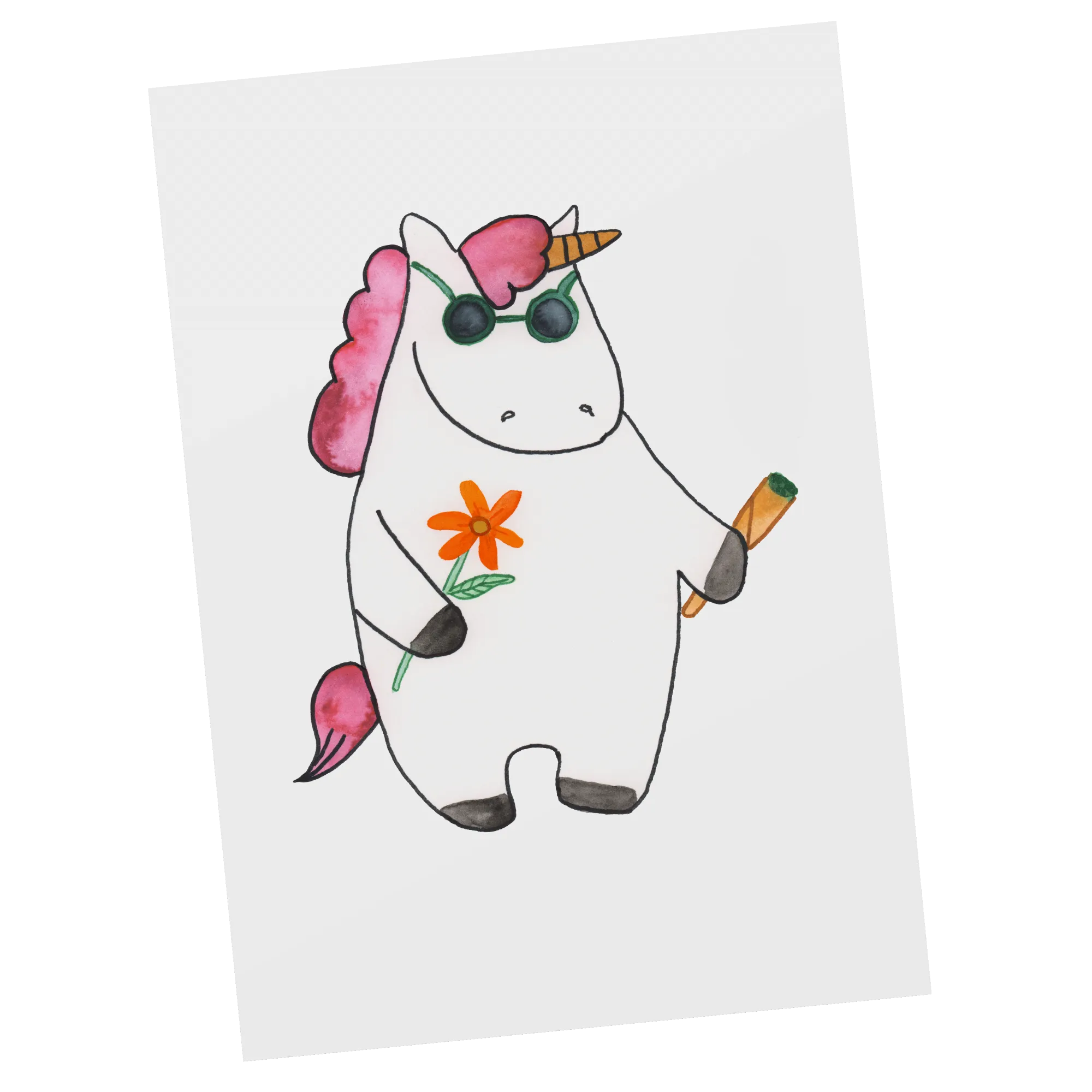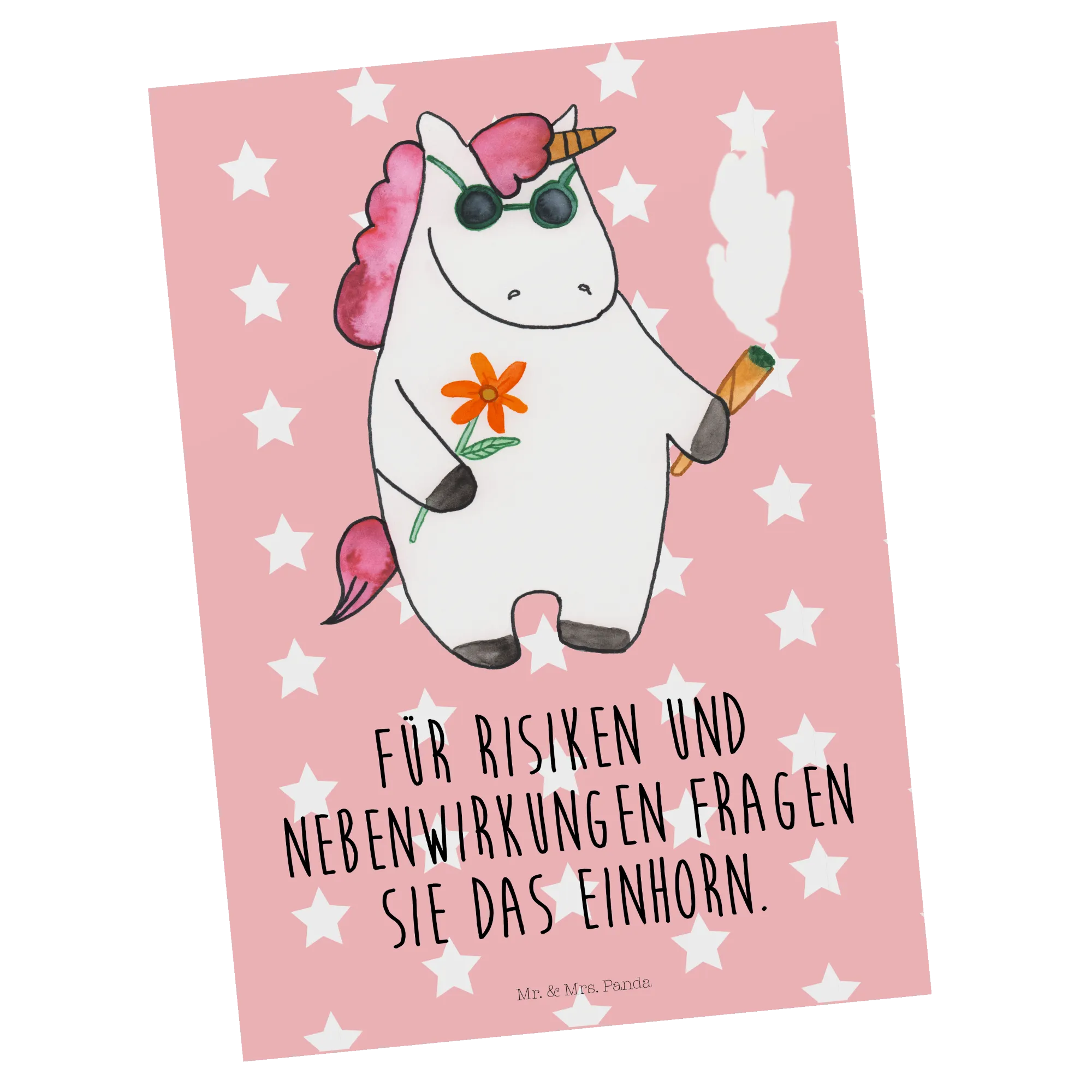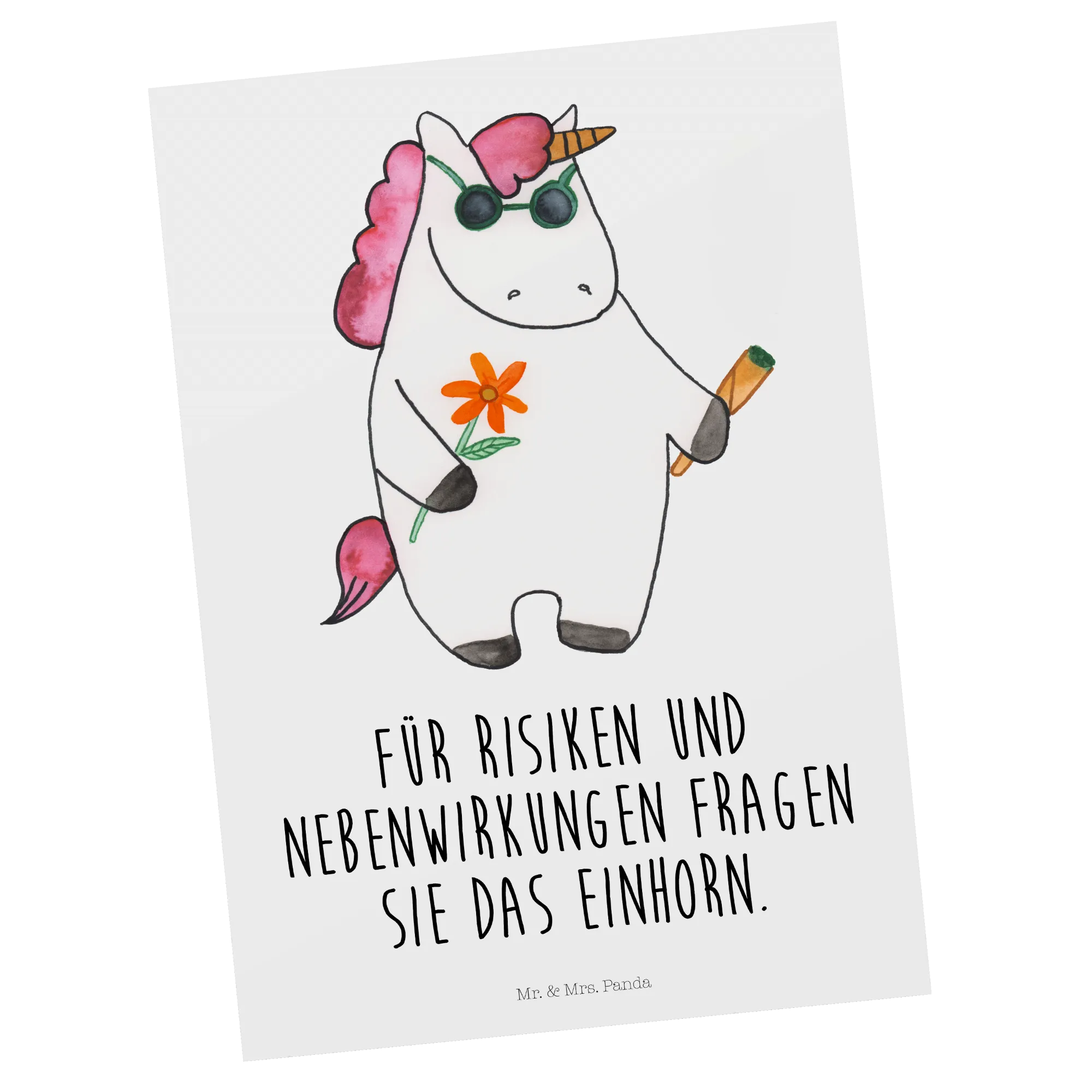 Wenn du auf der Suche nach einer ganz besonderen Postkarte bist, dann ist die Postkarte Einhorn Woodstock aus der Einhorn - Kollektion von Mr. & Mrs. Panda genau das richtige für dich! Dieses einzigartige Stück Papier bringt nicht nur Freude, sondern auch eine ordentliche Portion Spaß in dein Leben. Mit einem süßen Einhorn, das eine Sonnenbrille trägt und mit einem Joint in der Hand posiert, verkörpert es den lässigen Lebensstil von Woodstock und sorgt für gute Laune bei jedem, der die Karte sieht. Der witzige Slogan 'Für Risiken und Nebenwirkungen fragen Sie das Einhorn.' ist nicht nur ein Scherz, sondern passt perfekt zu diesen schillernden Gesprächen während einer entspannten Party oder einem Abend mit Freunden.