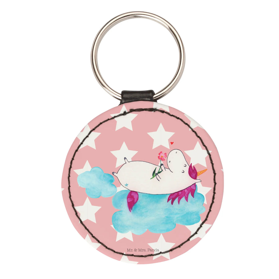 Rund Schlüsselanhänger Einhorn Verliebt - Rot Pastell