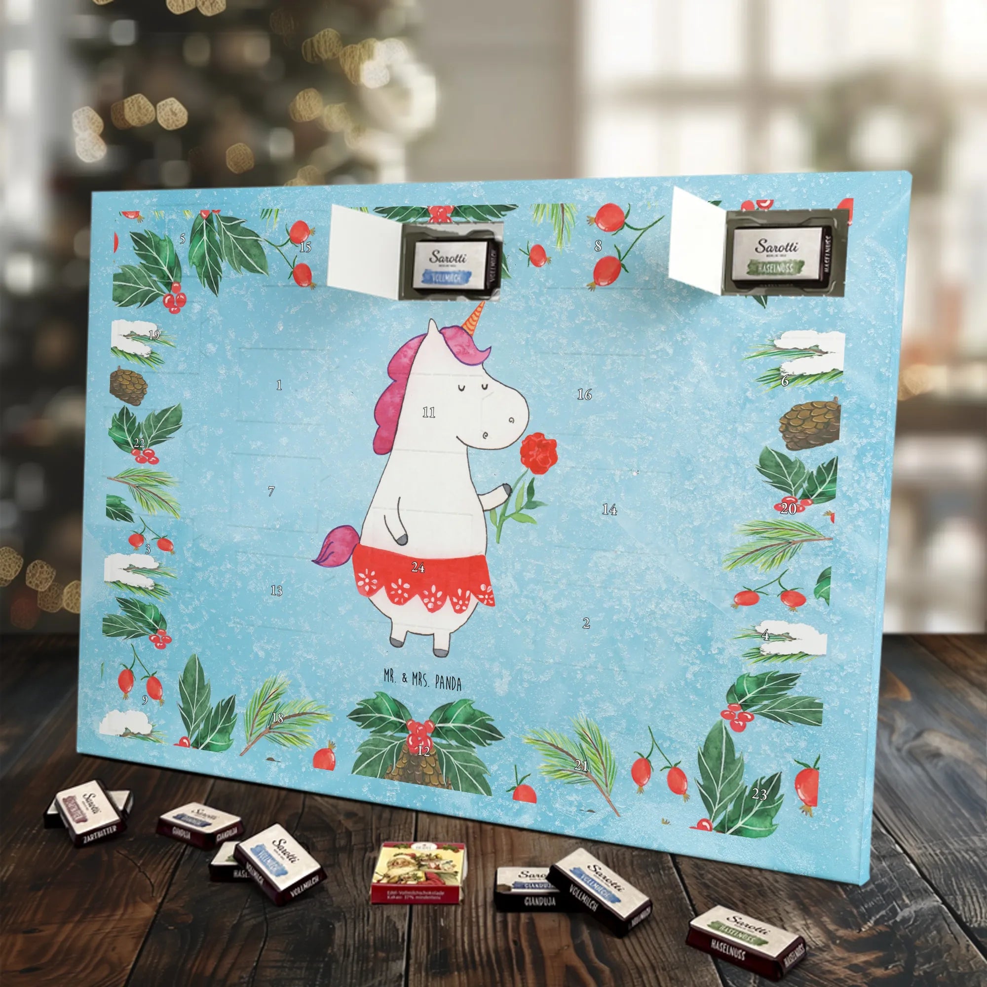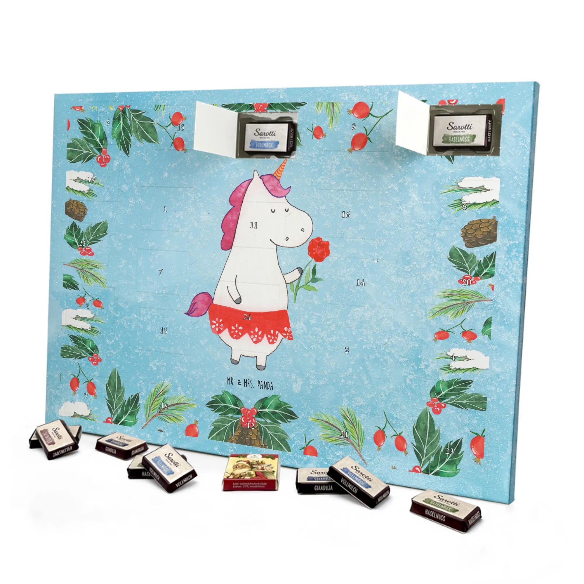 süßigkeiten adventskalender Einhorn Dame - Classic - mit Spruch - Eisblau