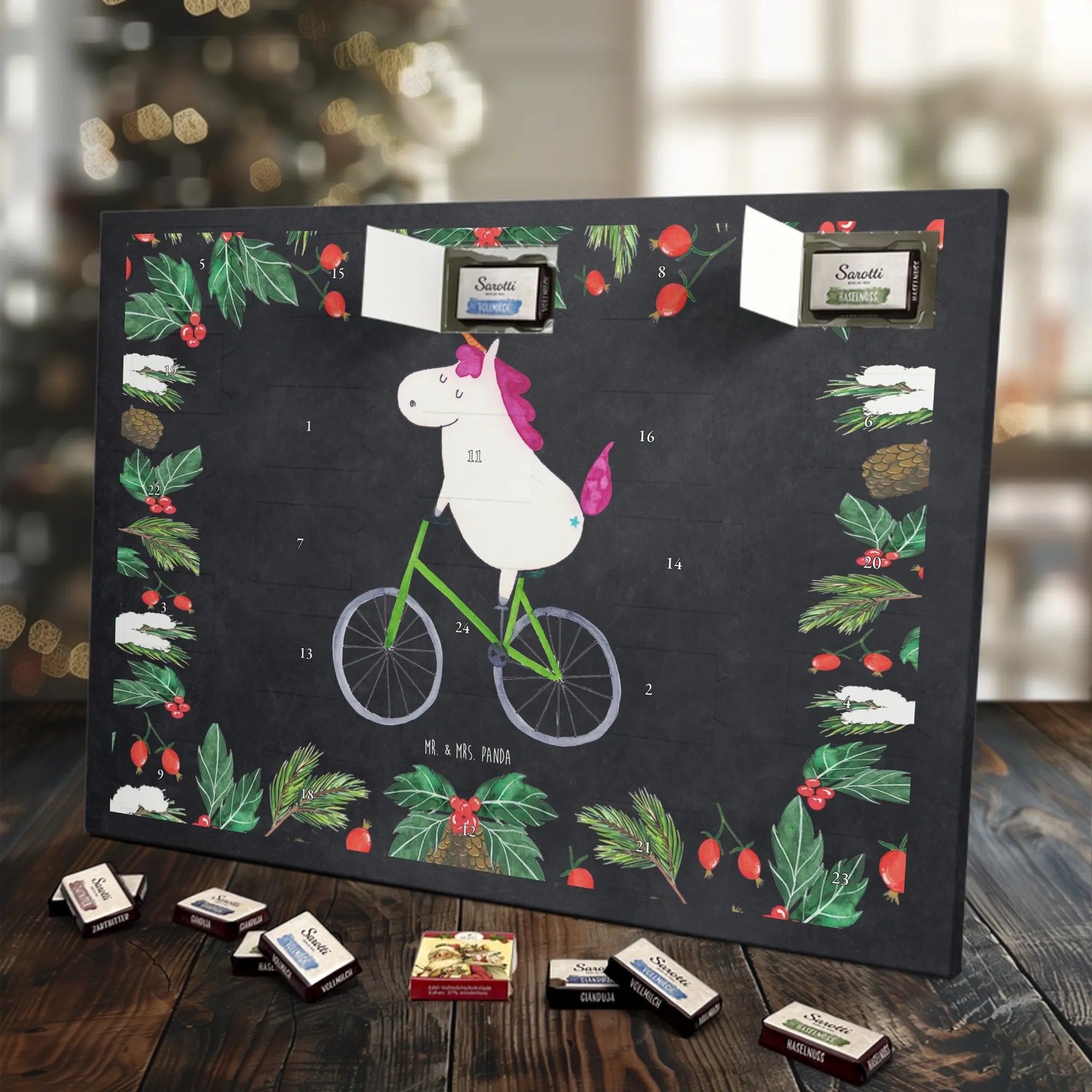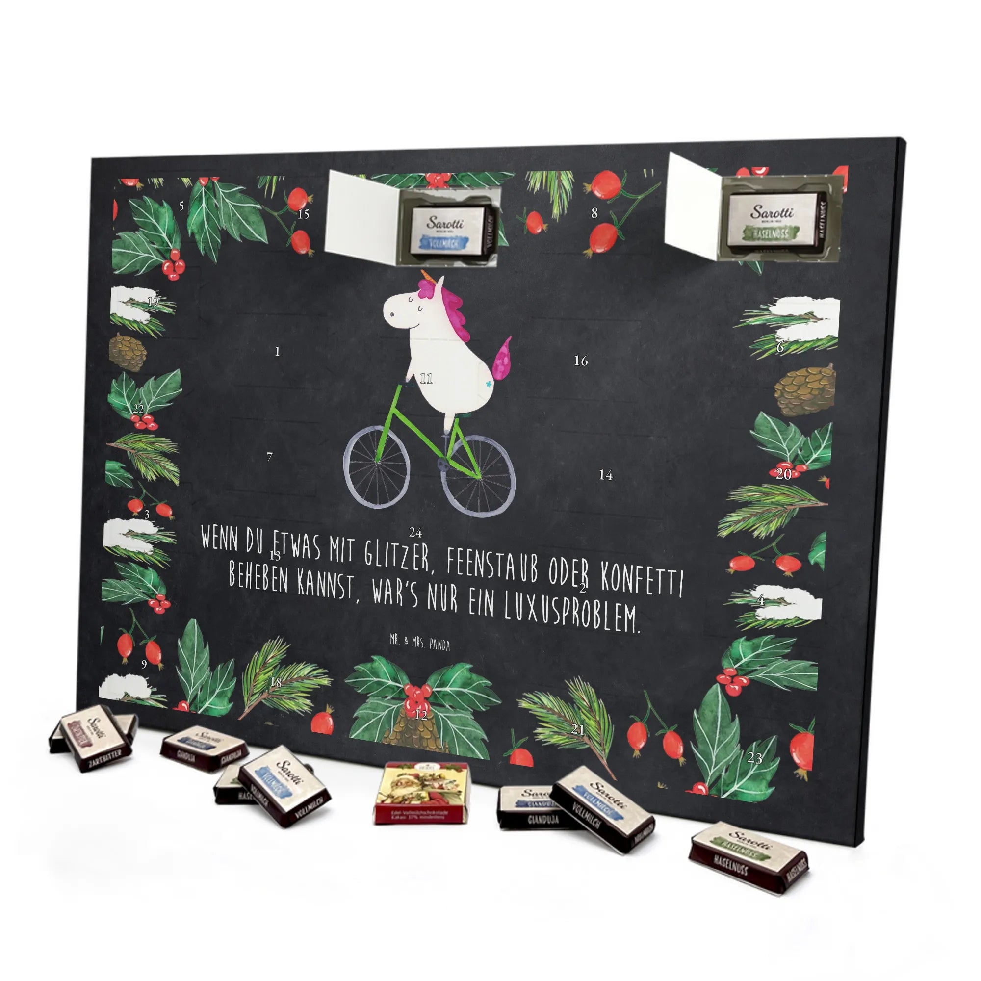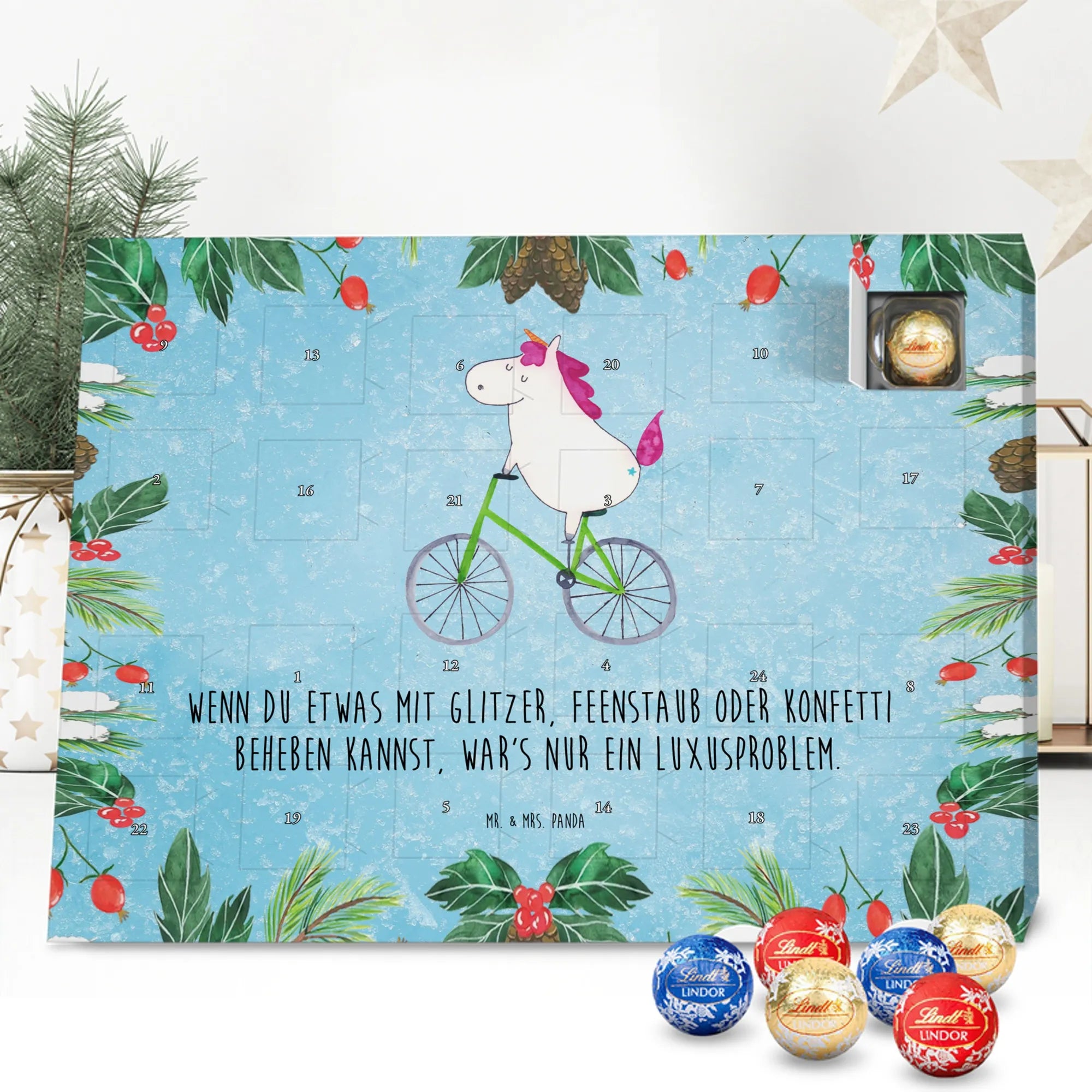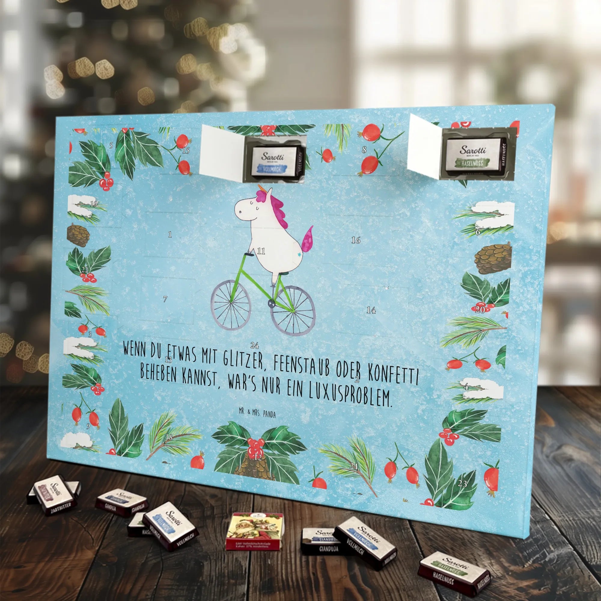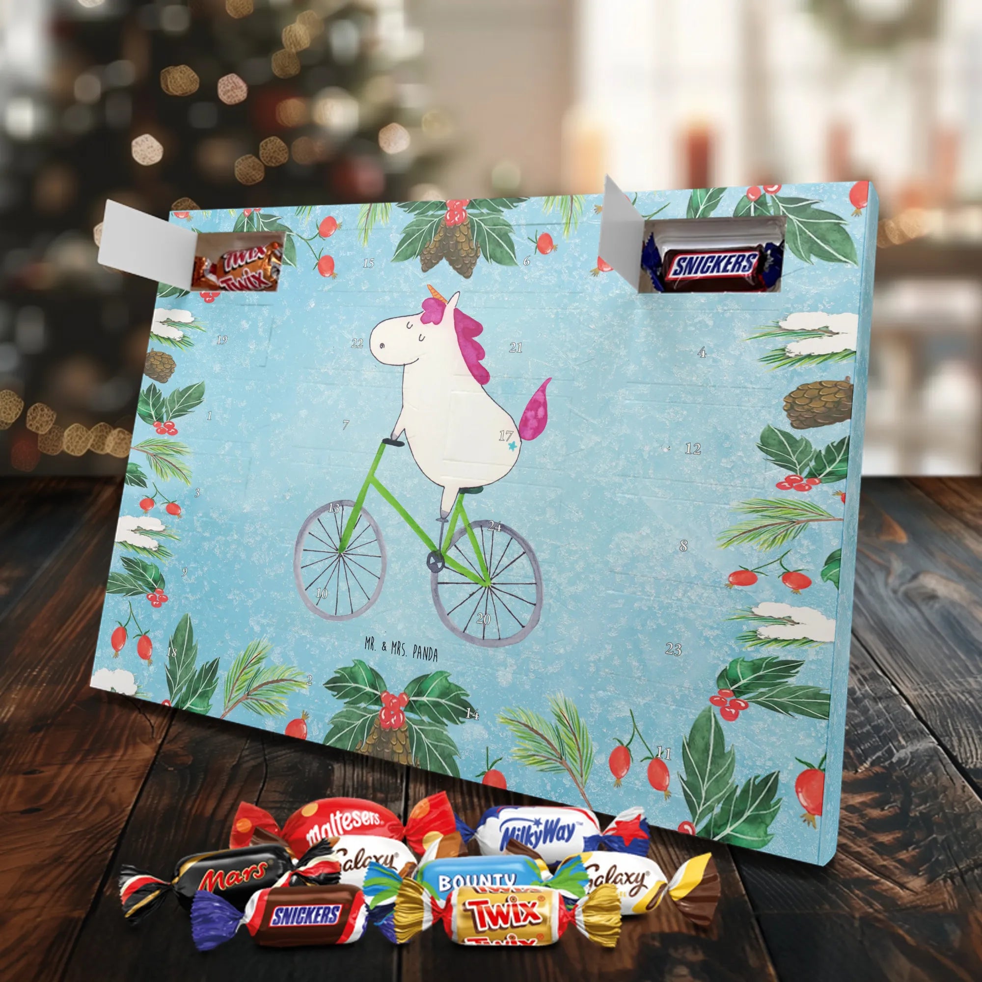 adventskalender pralinen Einhorn Radfahrer - Classic - mit Spruch - Eisblau