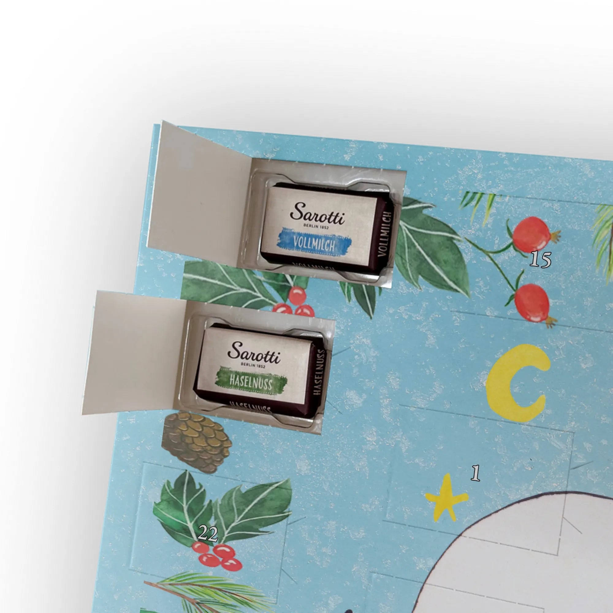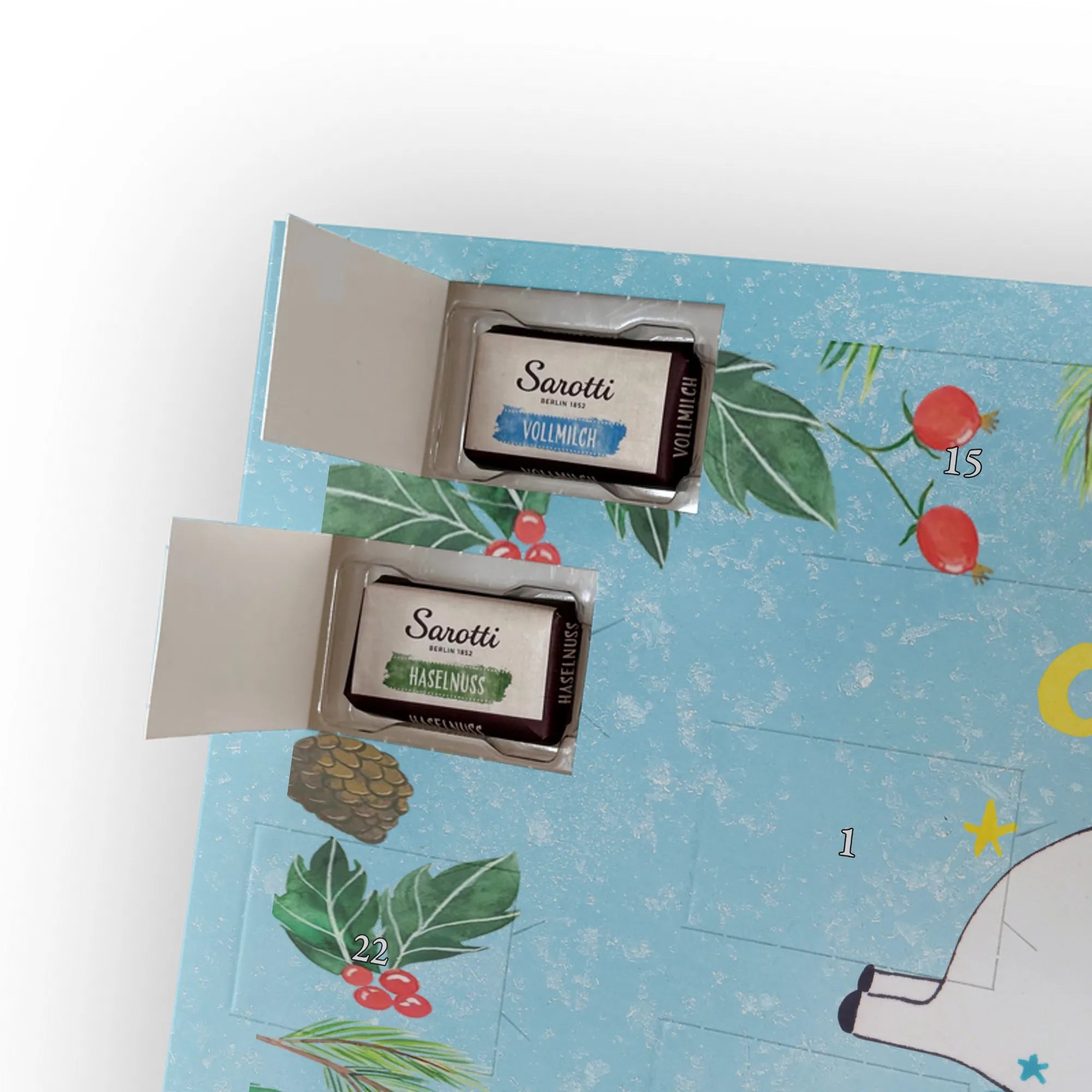 🐼 ADVENTSKALENDER SCHOKO: Liebevolle Motive, edles seidenmattes Finish.