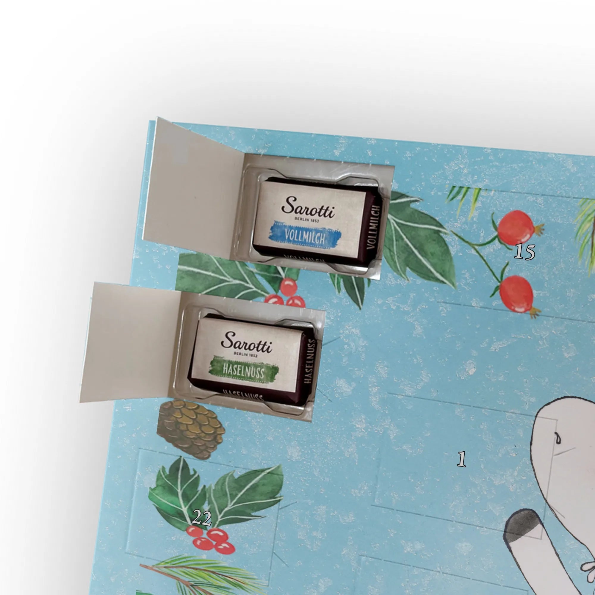 Wunderschöner Schoko Adventskalender von Mr. & Mrs. Panda – perfekt für alle, die die Vorweihnachtszeit mit süßen Momenten feiern möchten. Unser Adventskalender ist liebevoll bedruckt mit zauberhaften Motiven und freundlichen Sprüchen von Mr. & Mrs. Panda. Die brillante Druckqualität und die seidenmatte Oberflächenveredelung lassen die Farben sanft und edel wirken, während die bedruckten Seitenflächen den besonderen Look abrunden. Der Kalender ist nicht personalisierbar, dafür aber vielseitig: Du kannst ihn aufstellen oder ganz einfach an der Wand aufhängen. Gefüllt ist der Kalender mit hochwertiger Markenschokolade: 24 einzeln verpackte Schokoladentäfelchen in vier leckeren Geschmacksrichtungen von Sarotti® und Confiserie Heidel® – Vollmilch, Nougat, Zartbitter und Haselnuss. Insgesamt enthält der Kalender 107 g Markenschokolade von Sarotti® und Confiserie Heidel®. Die kompakte Bauweise macht ihn zum dekorativen Hingucker auf dem Sideboard, auf dem Esstisch oder als besonderes Geschenk für Freundinnen, Familie und liebe Menschen. Maße: 355 mm x 245 mm x 11 mm. Mit diesem Schoko Adventskalender schenkst du kleine Freuden und zauberhafte Vorfreude auf die schönsten Tage des Jahres – ganz im gemütlichen Stil von Mr. & Mrs. Panda.