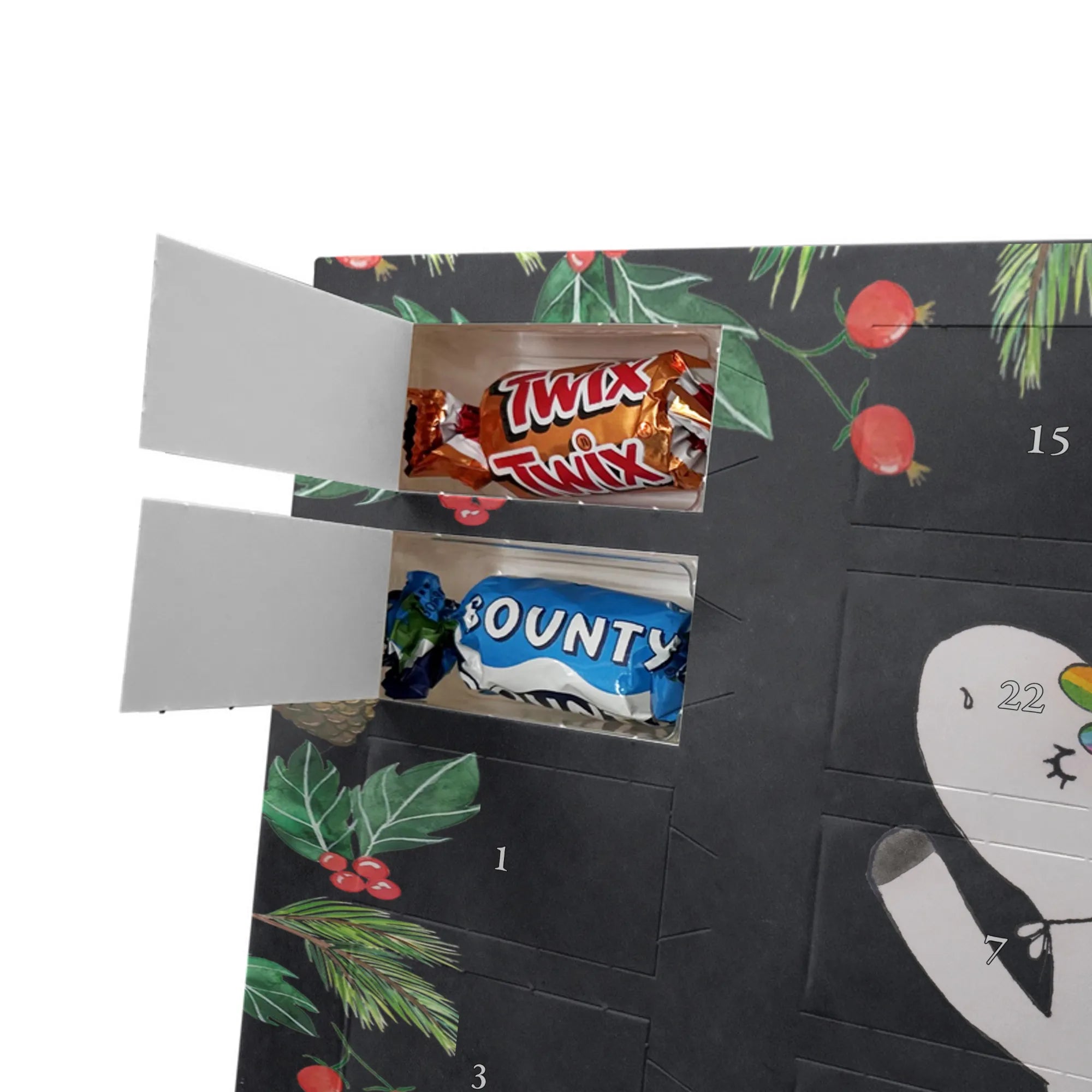 🐼 SCHOKOLADEN ADVENTSKALENDER: Liebevoll illustrierter Kalender, nicht personalisierbar, gefüllt mit Markennamen Schokolade.
