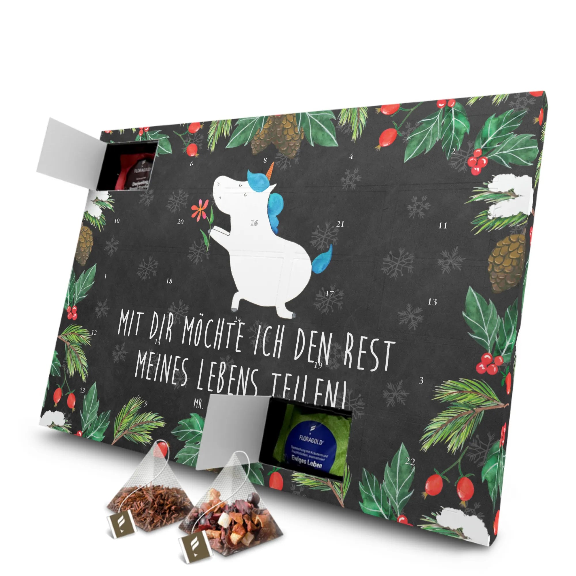 Der Tee Adventskalender Einhorn Blume aus der bezaubernden Einhorn-Kollektion von Mr. & Mrs. Panda ist das perfekte Geschenk für alle Einhorn-Liebhaber!