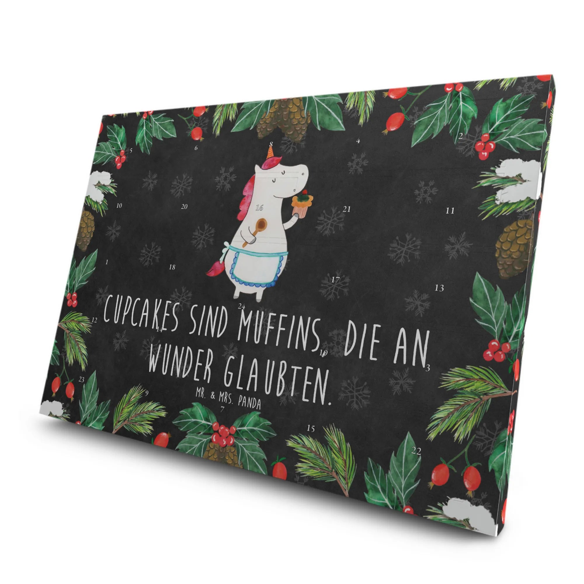 Mit dem Spruch 'Cupcakes sind Muffins, die an Wunder glaubten' zaubert er dir ein Lächeln ins Gesicht und inspiriert dich, deine eigene kreative Backkunst auszuleben. Egal, ob du ihn für dich selbst oder als Geschenk für eine Freundin, die Einhörner und Tees liebt, kaufst - dieser Kalender ist ein wahres Must-have!
