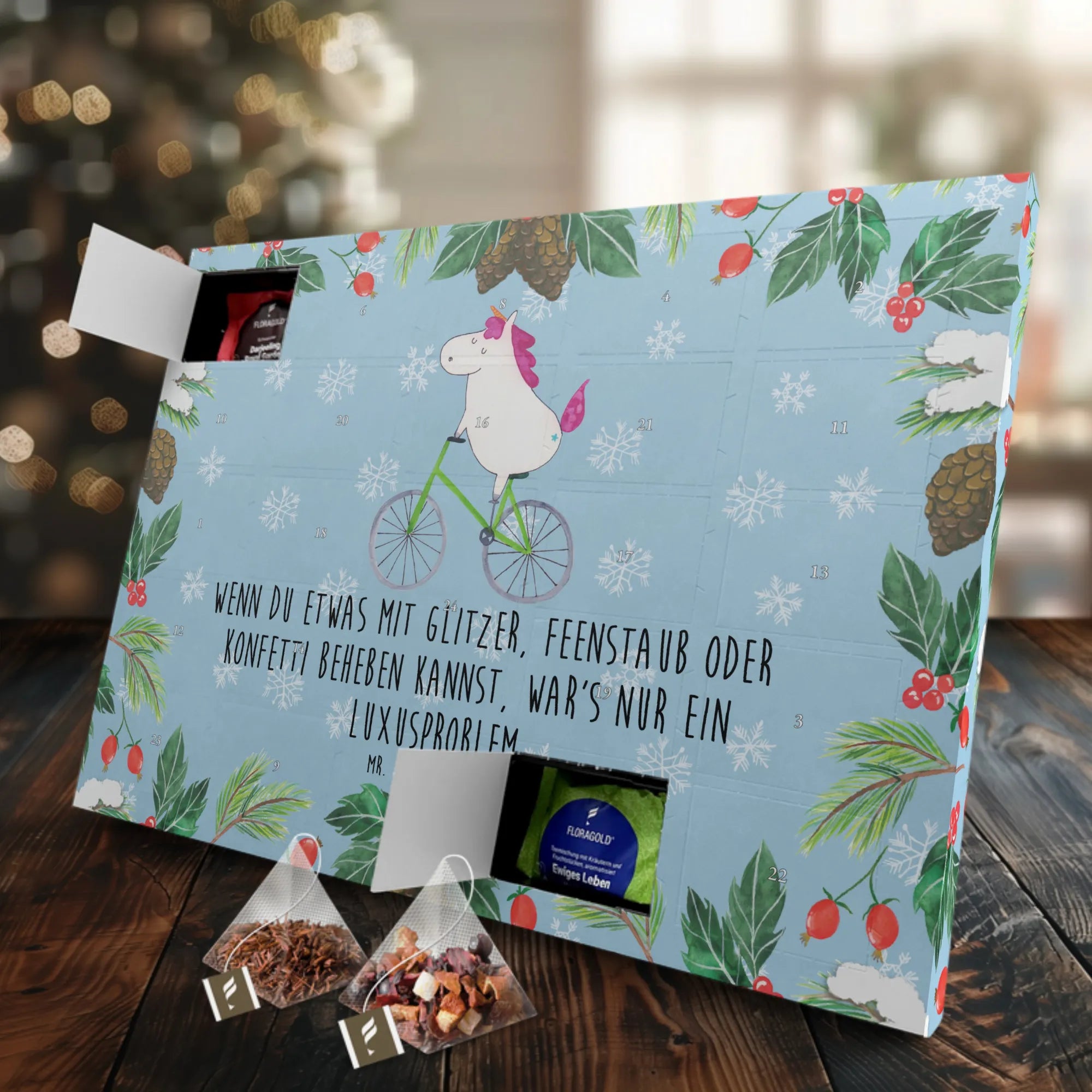 Der Tee Adventskalender Einhorn Radfahrer von Mr. & Mrs. Panda ist das perfekte Geschenk für alle Einhorn-Liebhaber und Tee-Fans! Mit seinem zauberhaften Design, das ein fröhliches Einhorn zeigt, das mit einem Fahrrad durch die Luft fliegt, bringt dieser Adventskalender Freude in jede Vorweihnachtszeit.