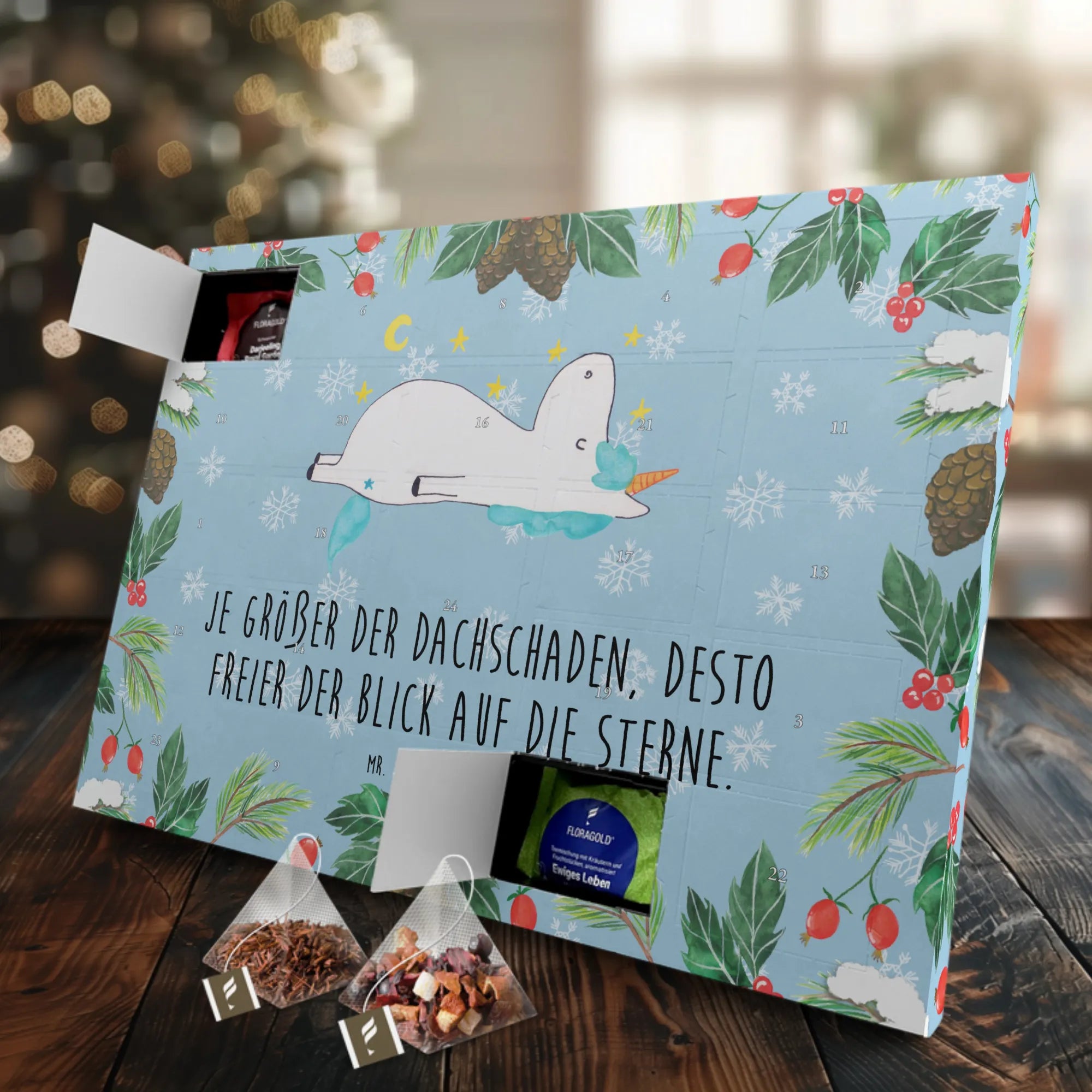 Die Worte "Je größer der Dachschaden, desto freier der Blick auf die Sterne" bringen die verrückte, aber positive Einstellung zum Ausdruck, die viele Einhorn-Fans teilen. Dieser Kalender ist nicht nur ein toller Countdown bis Weihnachten, sondern auch eine wunderbare Möglichkeit, sich selbst oder Freunde jeden Tag mit einer hochwertigen Teesorte zu verwöhnen.