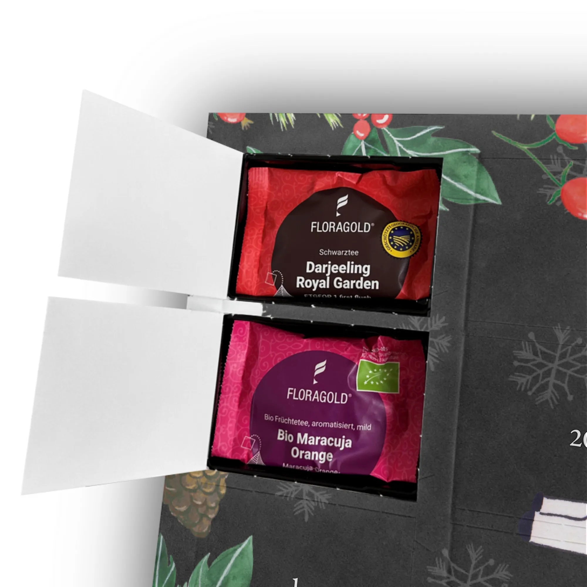 🐼 ADVENTSKALENDER TEE: 24 Einzeln verpackte Tees, brillante Druckqualität.