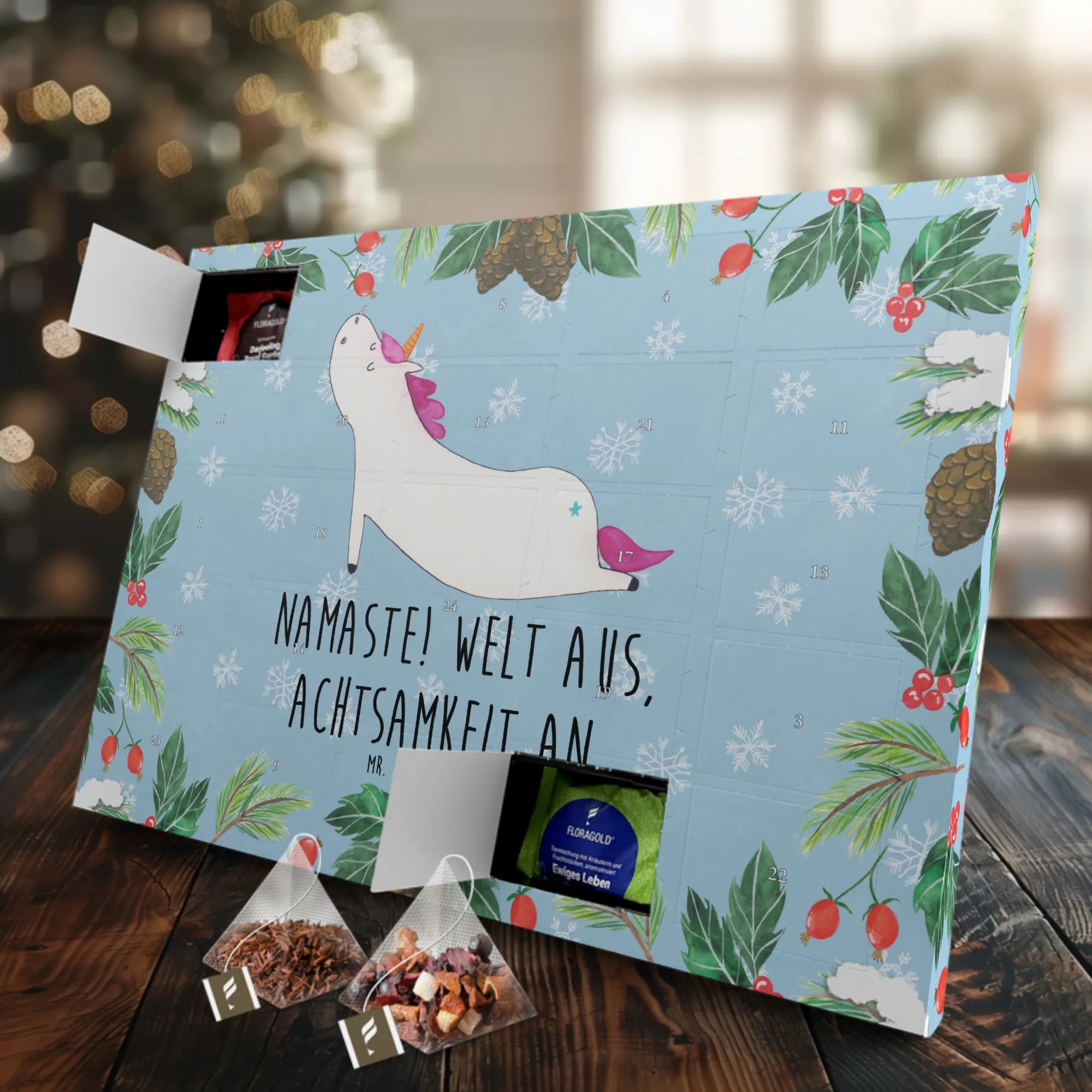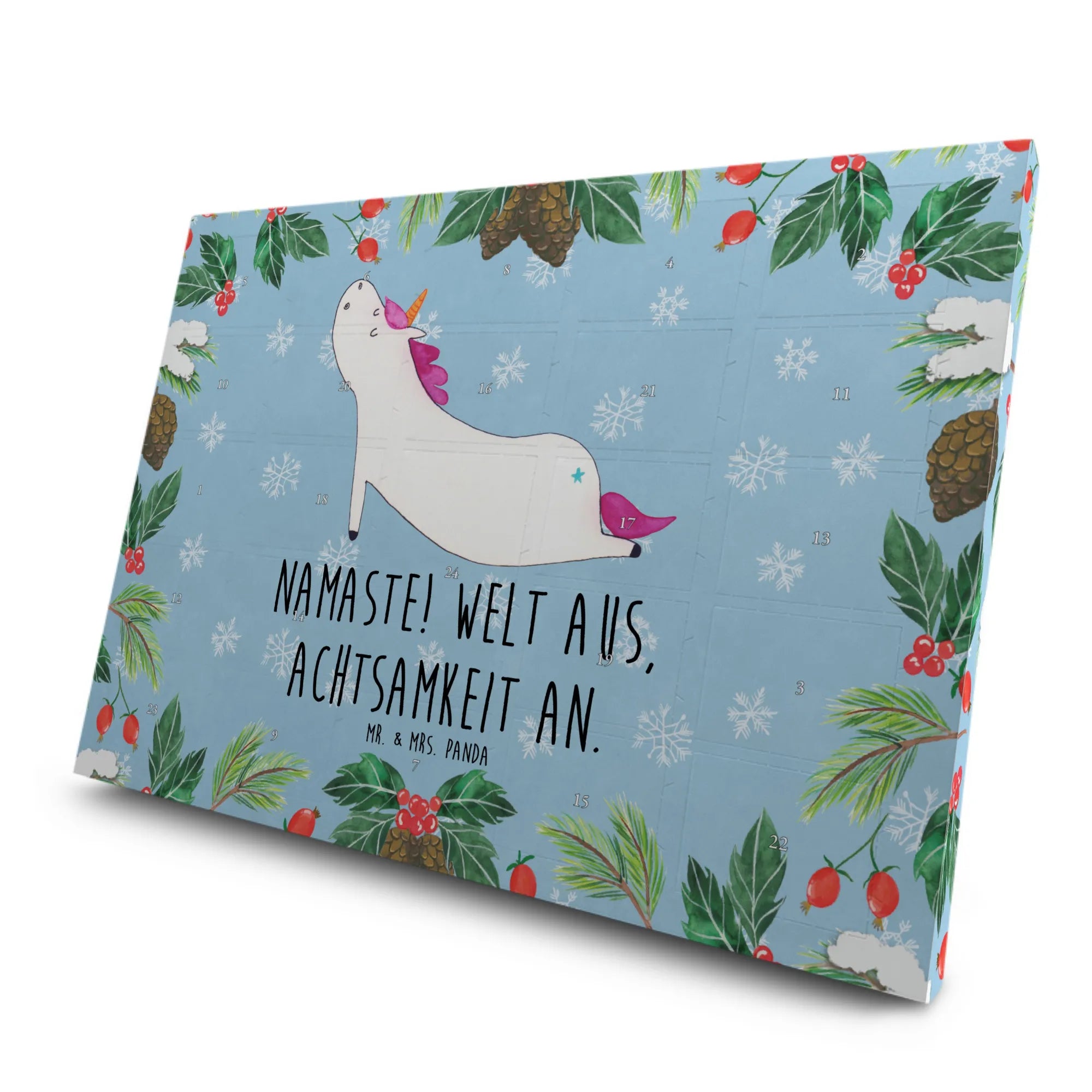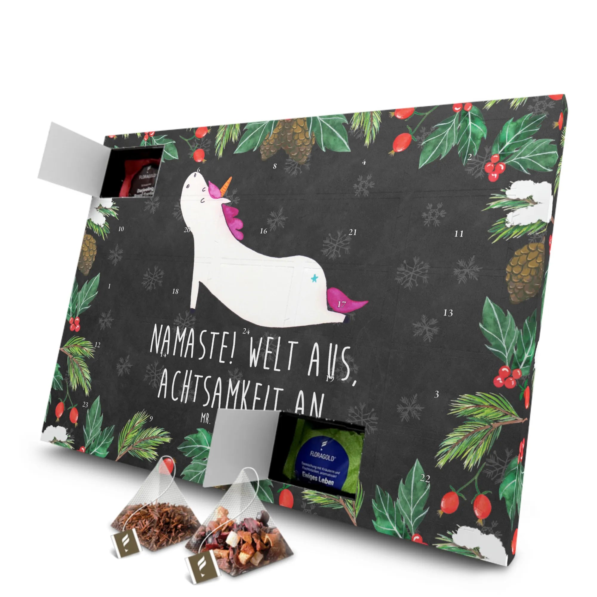 Entdecke den zauberhaften Tee Adventskalender Einhorn Yoga von Mr. & Mrs. Panda! Dieser wunderschöne Adventskalender ist nicht nur ein Blickfang, sondern auch das perfekte Geschenk für alle Einhorn-Fans, Yoga-Liebhaber und Teegenießer. Mit einem liebevoll gestalteten Motiv eines Yoga-Einhorns, das bei jedem Anblick für Entspannung sorgt, bringst du Freude in die Vorweihnachtszeit.