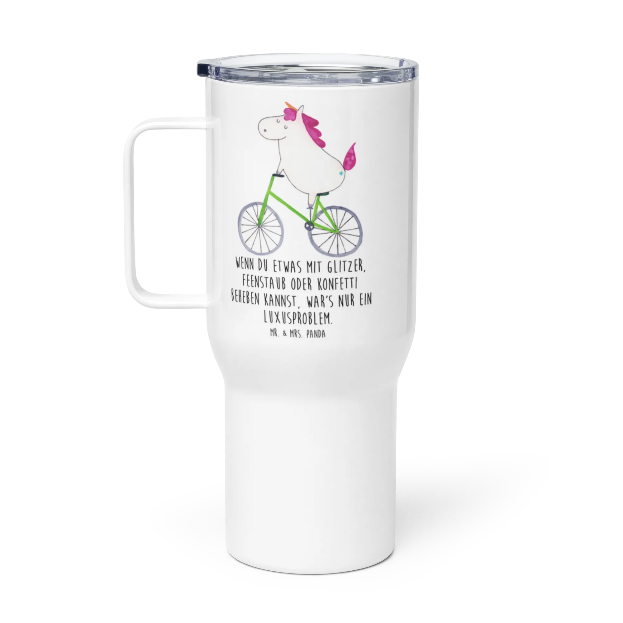 XXL Thermobecher Einhorn Radfahrer - mit Spruch