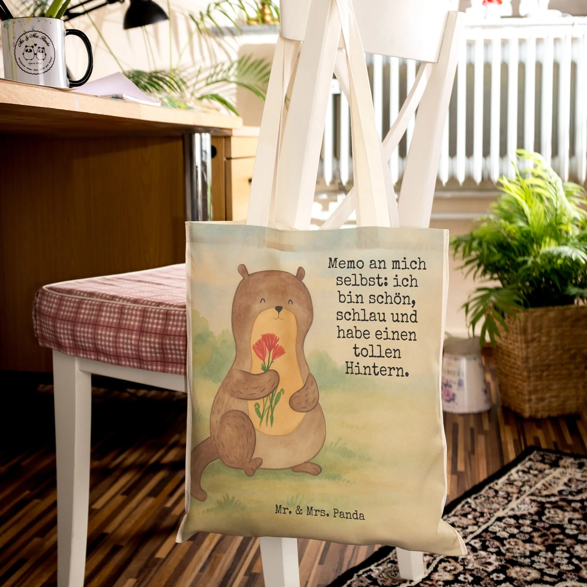Stell dir vor, ein kleiner, niedlicher Otter sitzt da und hält einen bunten Blumenstrauß in seinen kleinen Pfötchen. Dieses Motiv von Mr. & Mrs. Panda ist nicht nur ein Ausdruck reiner Freude, sondern auch eine Erinnerung daran, wie schön, schlau und einzigartig jeder von uns ist. Der Spruch 'Memo an mich selbst: ich bin schön, schlau und habe einen tollen Hintern' ist eine charmante Selbstbestärkung, die uns daran erinnert, unseren eigenen Wert zu erkennen und zu feiern. Ein Lächeln breitet sich auf deinem Gesicht aus, als du den Otter betrachtest, dessen Unschuld und Reinheit dir eine einfache, aber kraftvolle Botschaft vermittelt. Das Motiv spricht für die Fantasie und Kreativität, die Mr. & Mrs. Panda in ihre Designs einfließen lassen, und macht es zu einem perfekten Geschenk für dich selbst oder jemanden, der dir am Herzen liegt.