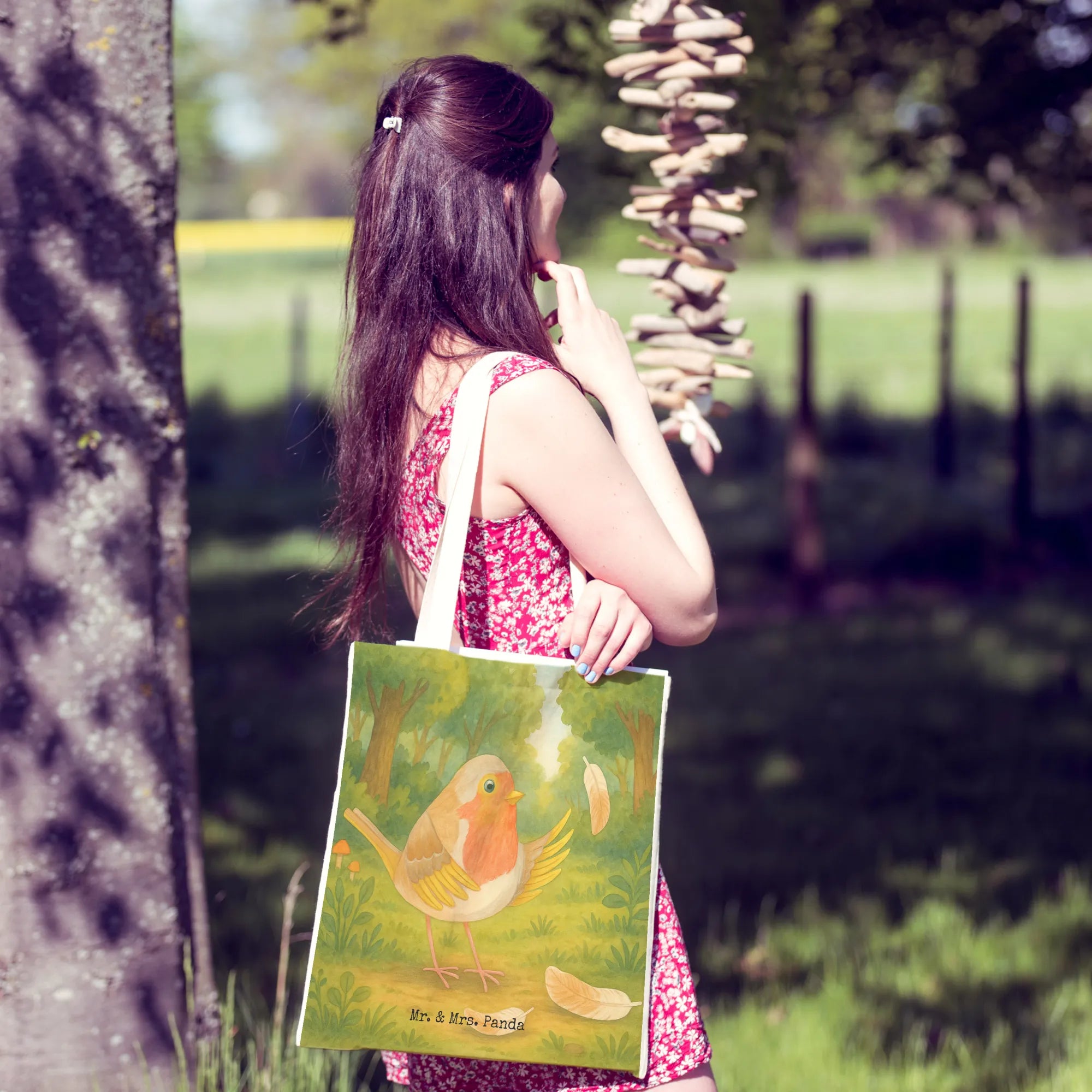Einkaufstasche Rotkehlchen Federn Design - mit Spruch