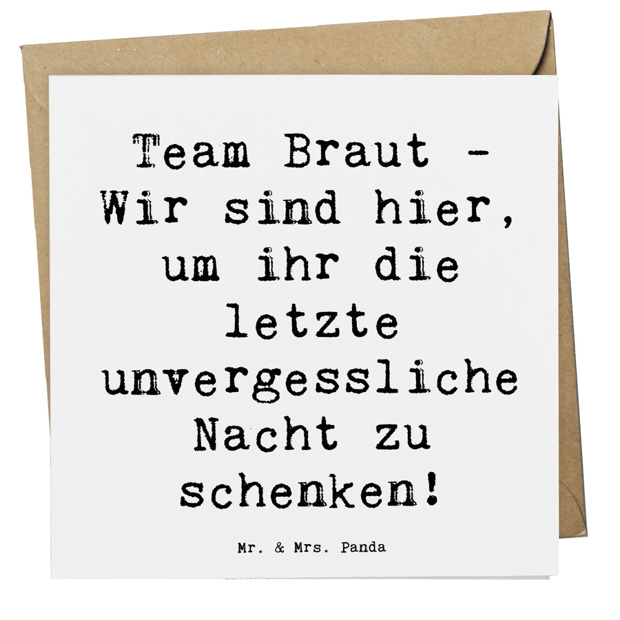 Die Deluxe Karte zum Junggesellinnenabschied aus der Hochzeitskollektion von Mr. & Mrs. Panda ist das perfekte Geschenk für alle, die einen der aufregendsten Momente im Leben der Braut feiern möchten. Mit einem wunderschönen Design und dem liebevollen Spruch "Team Braut - Wir sind hier, um ihr die letzte unvergessliche Nacht zu schenken!" wird diese Karte zum absoluten Highlight jeder Feier.